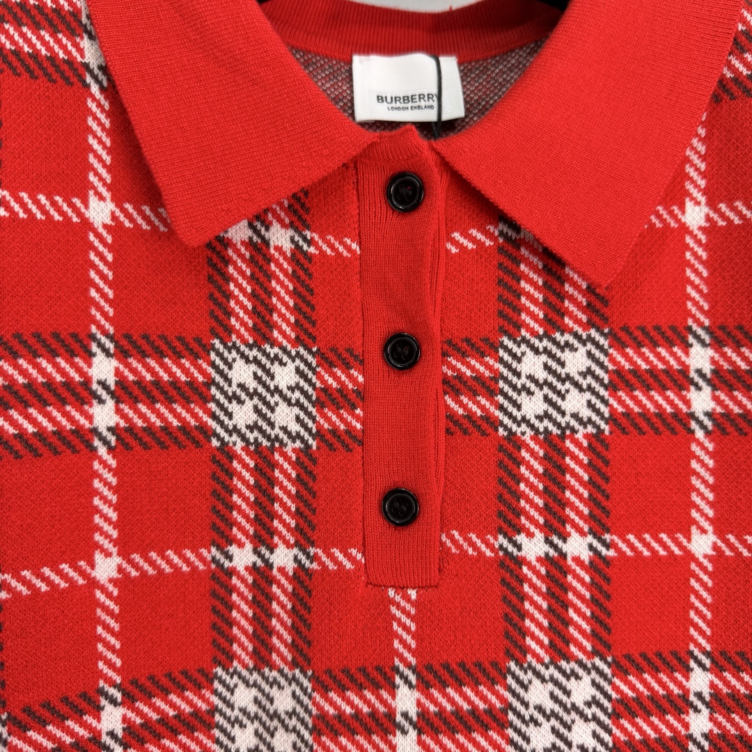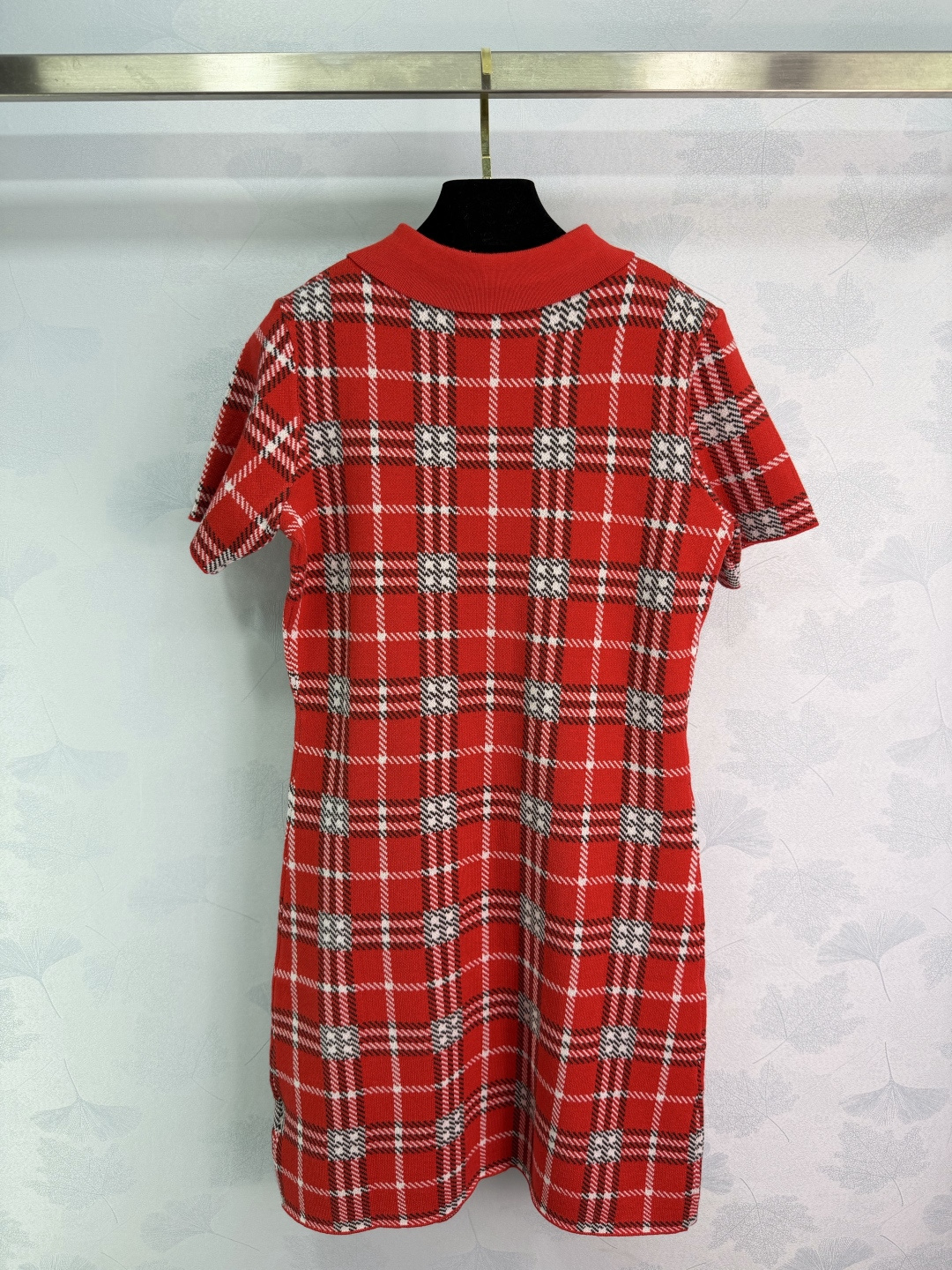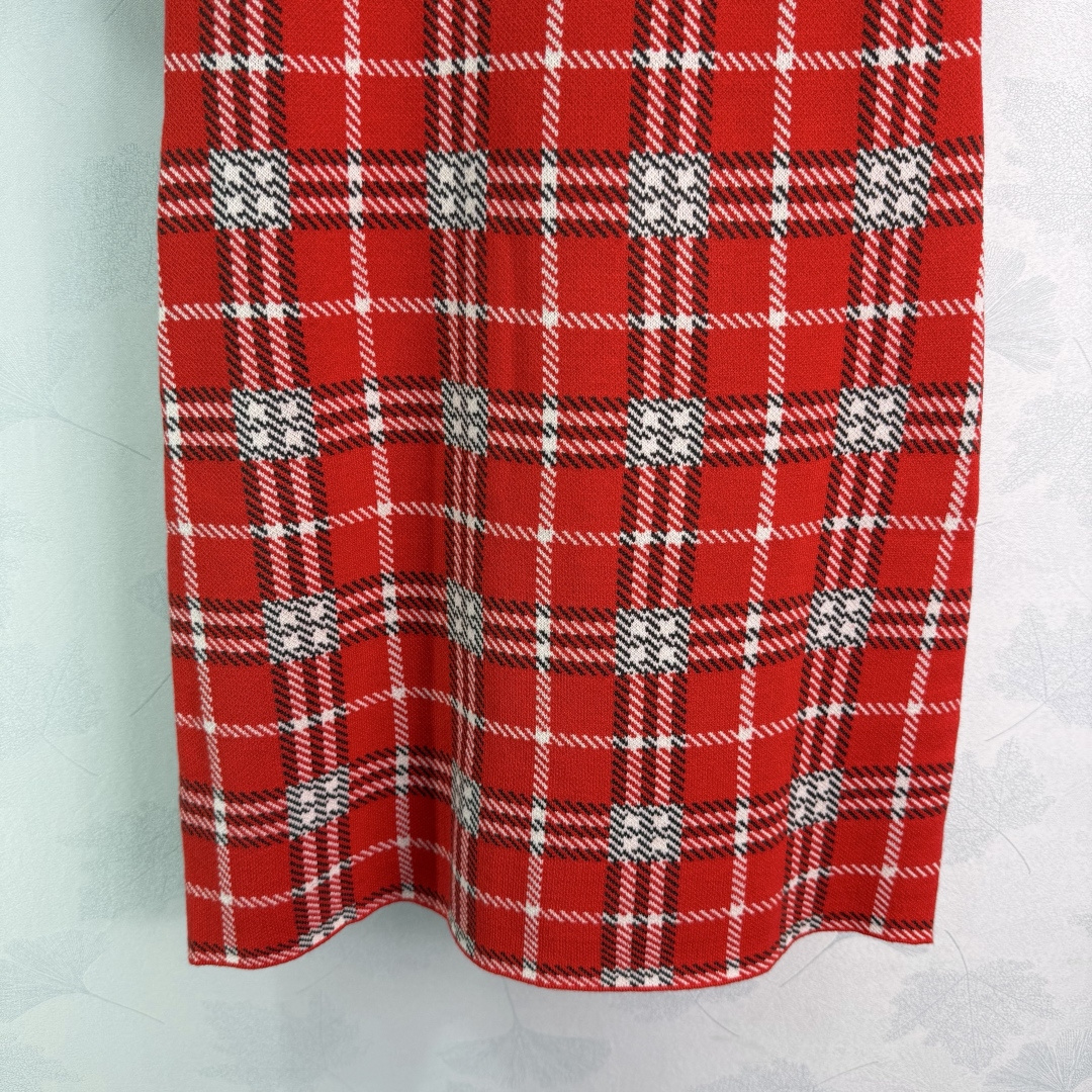Details: early spring new red plaid knit dress, in classic British style, made of wool blend for warmth, with crayon red plaid, a polo collar, button closure, and a slim fit, available in one color.