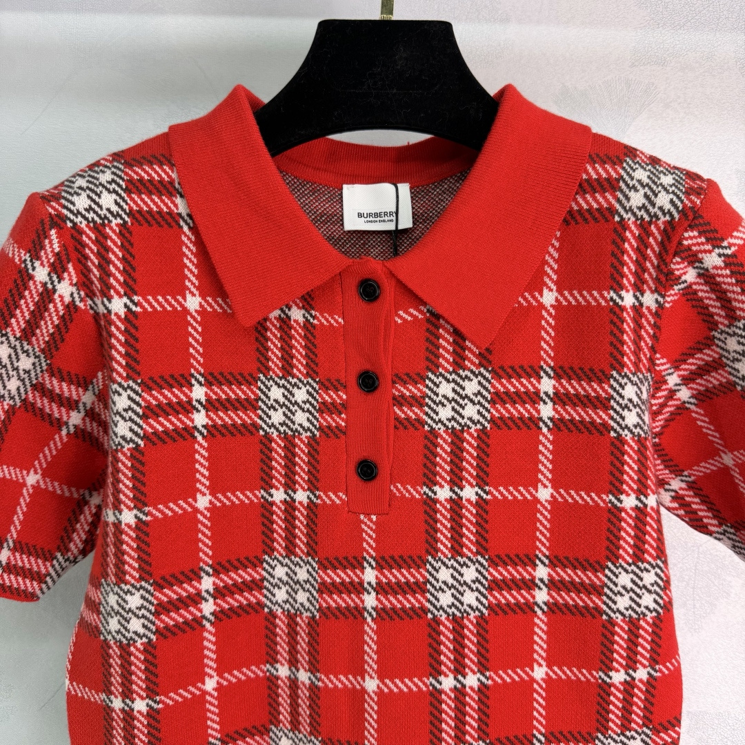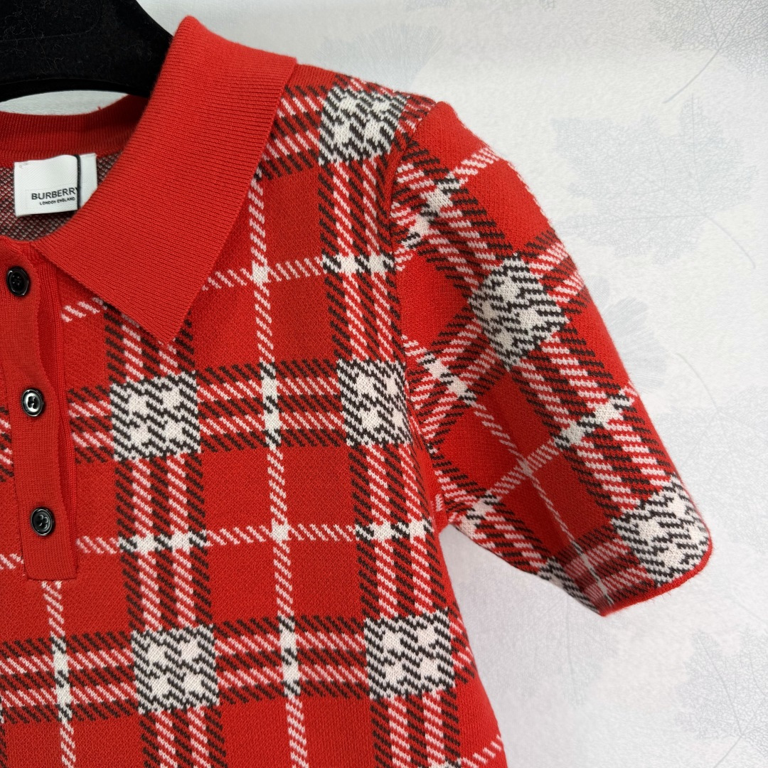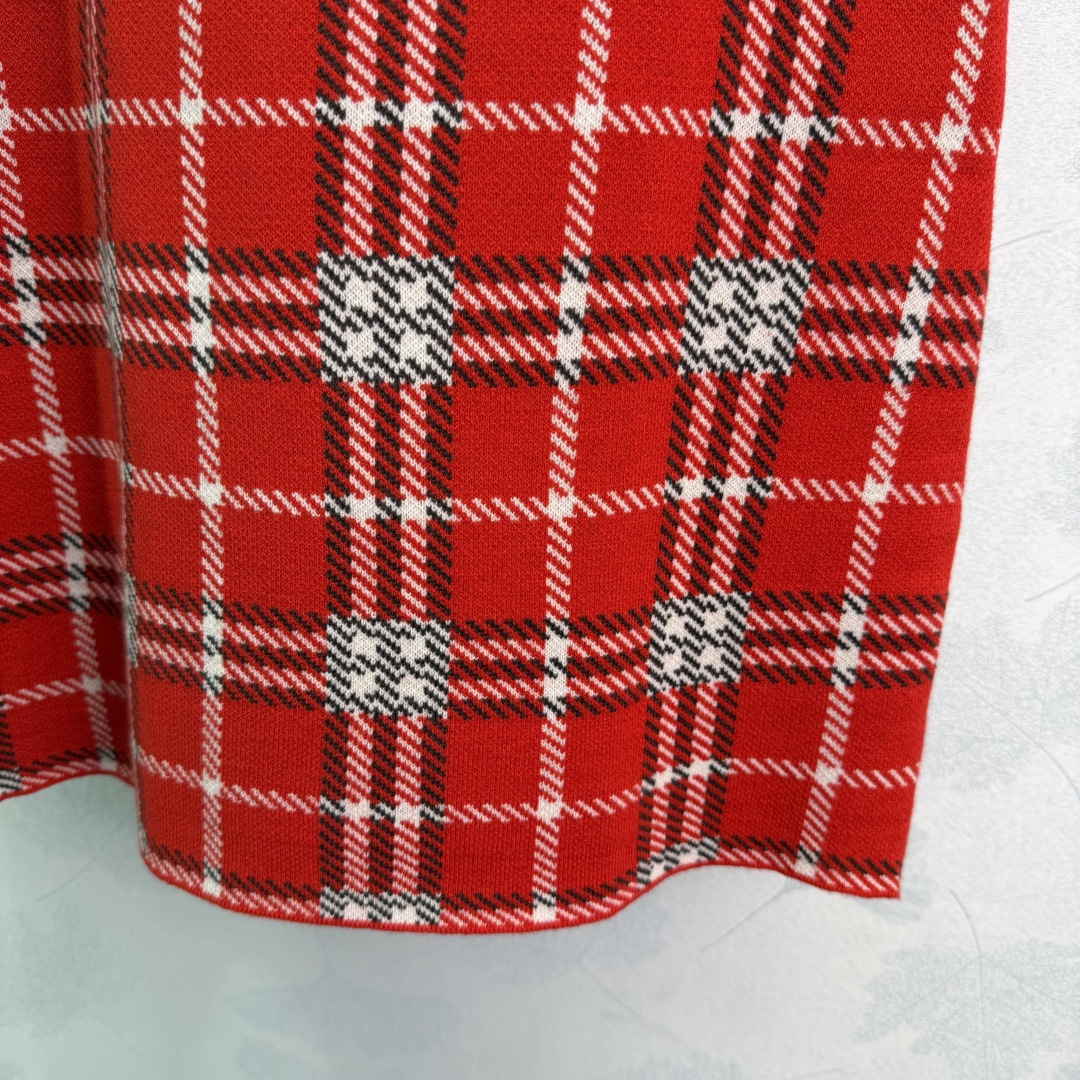 Details: early spring new red plaid knit dress, in classic British style, made of wool blend for warmth, with crayon red plaid, a polo collar, button closure, and a slim fit, available in one color.