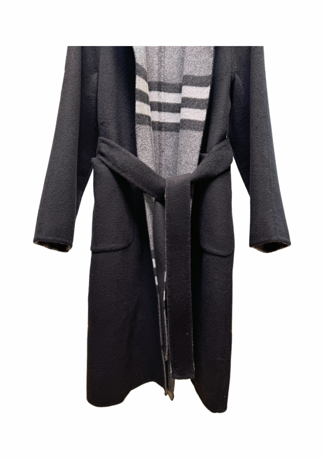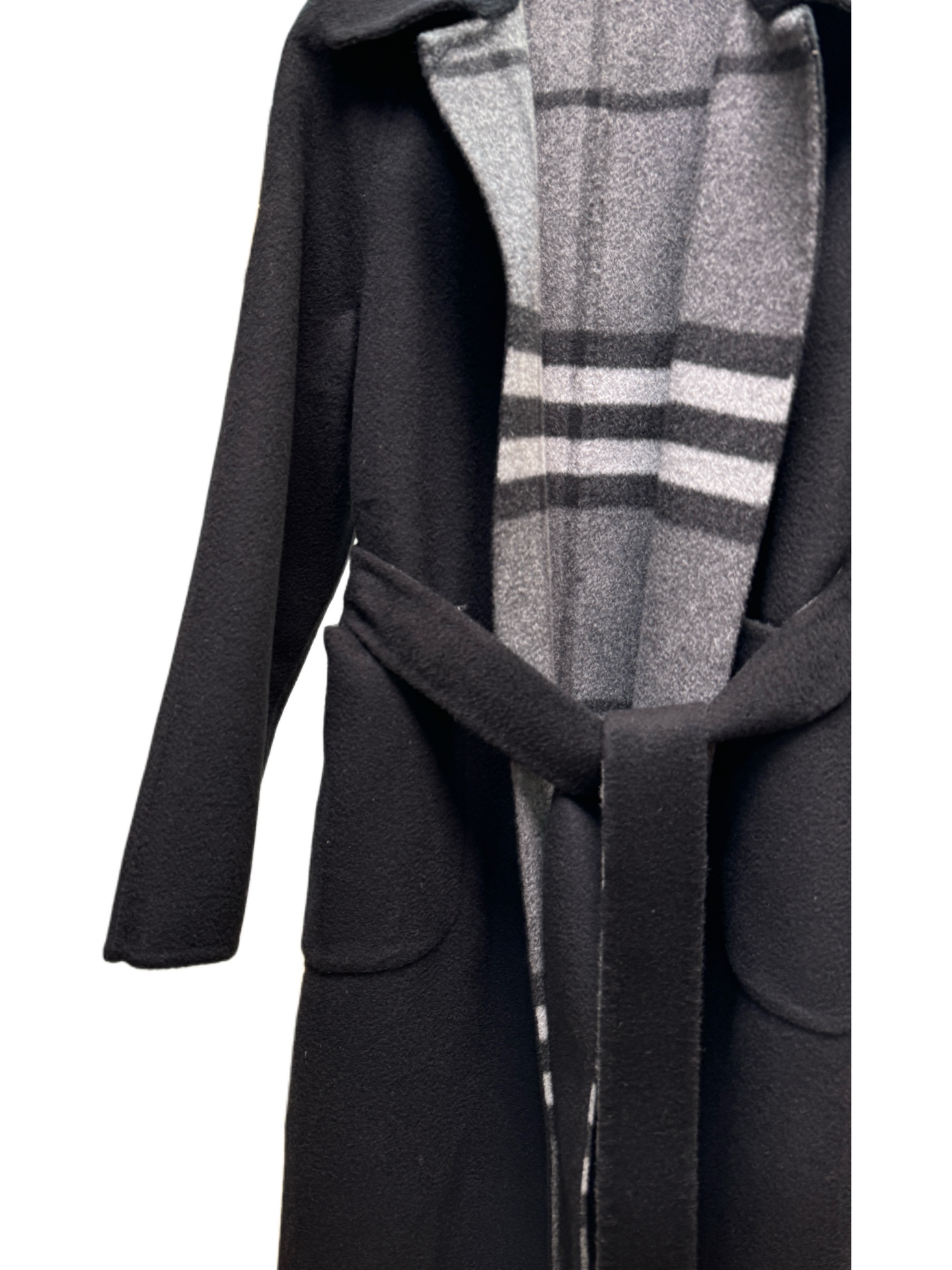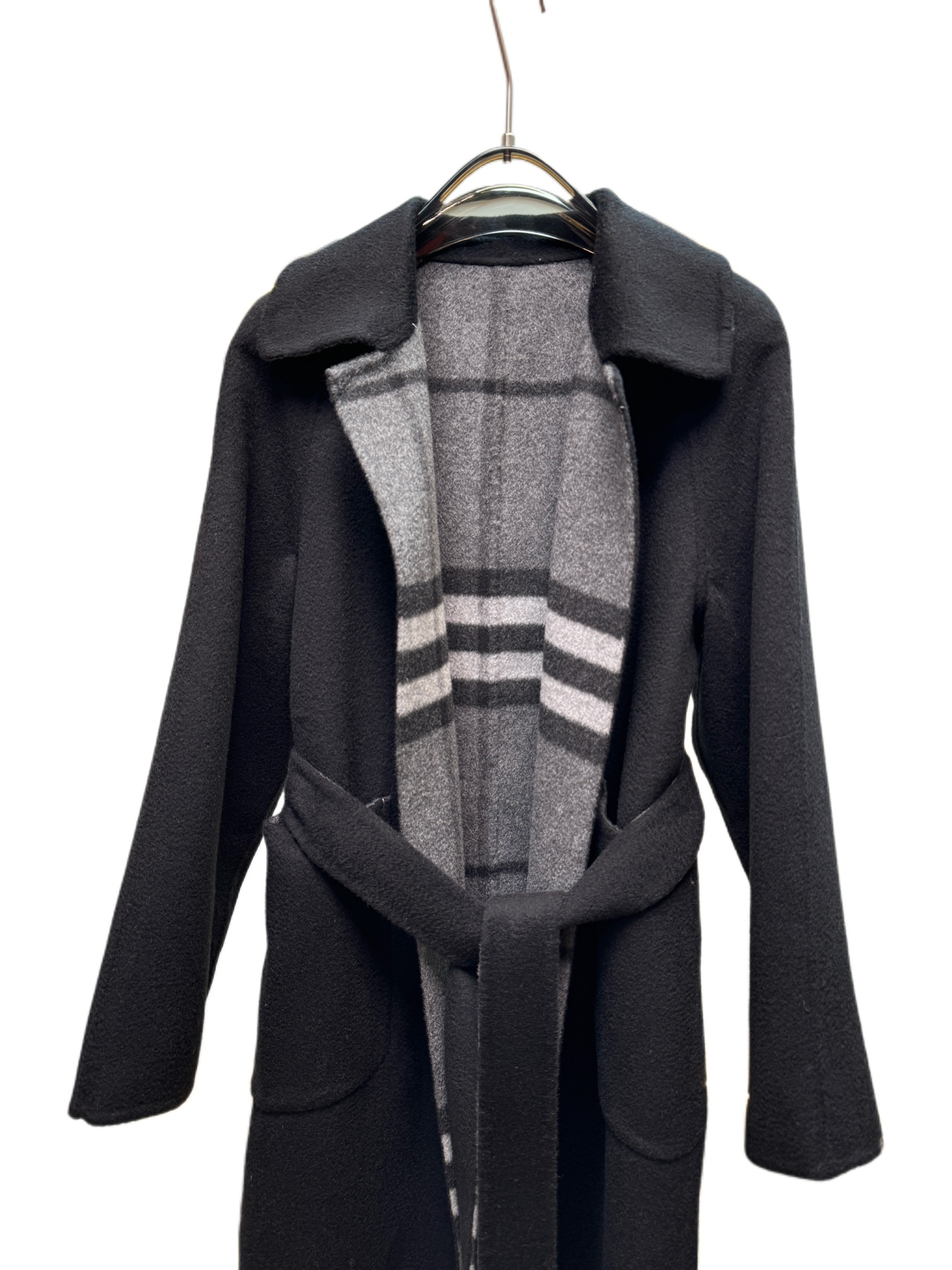 Details: Long suit-collared coat in black, sizes from S to L, also available in camel. High-end customization with fine workmanship