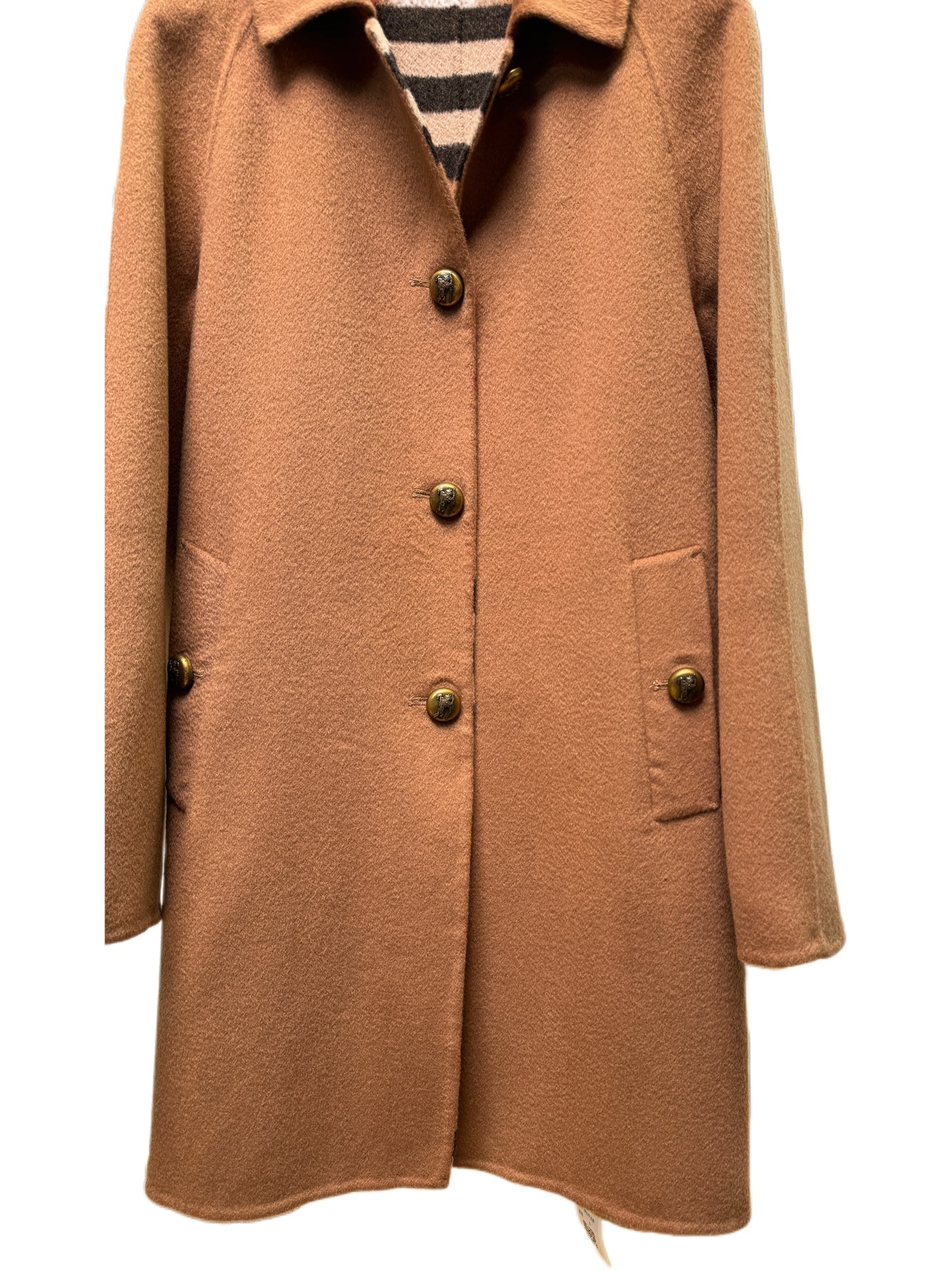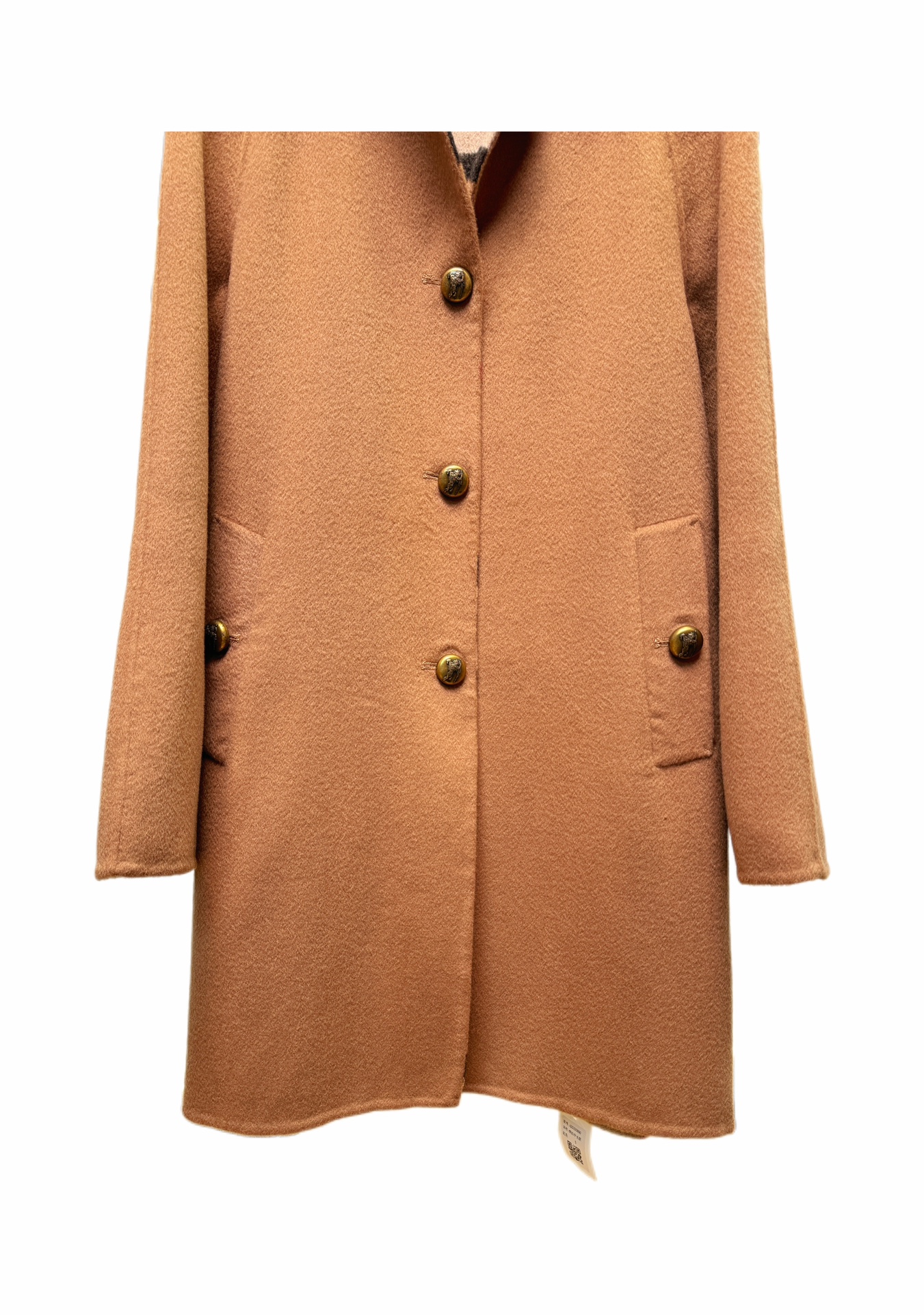 Details: Mid-length single-breasted coat available in camel or black, sizes from S to L. High-end customization with fine workmanship
