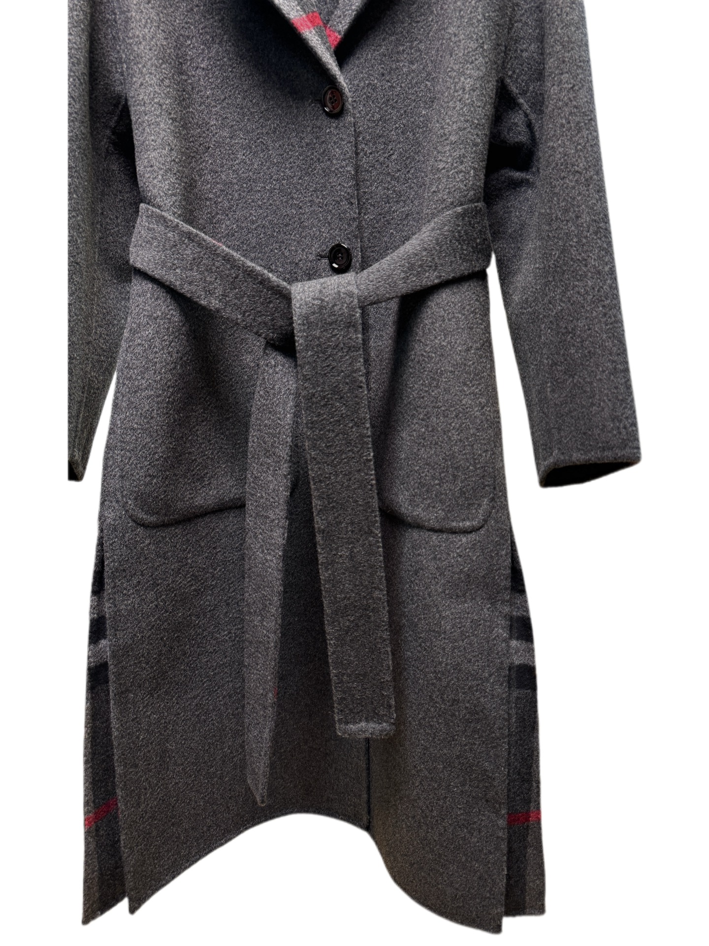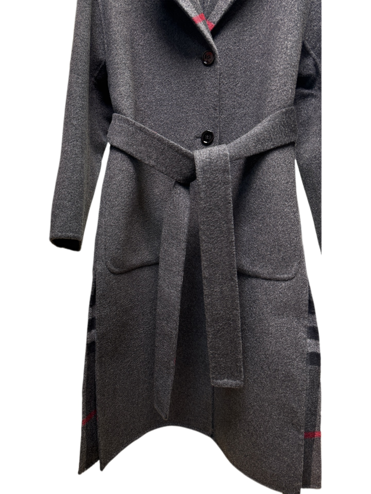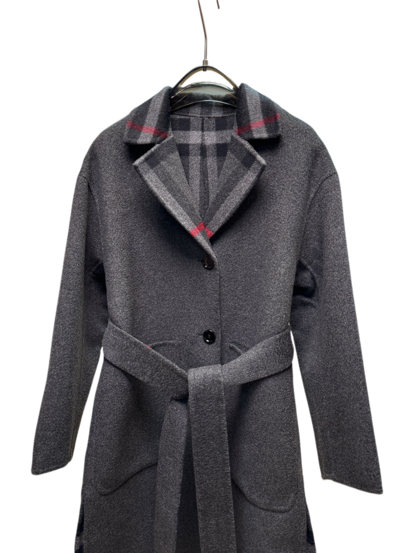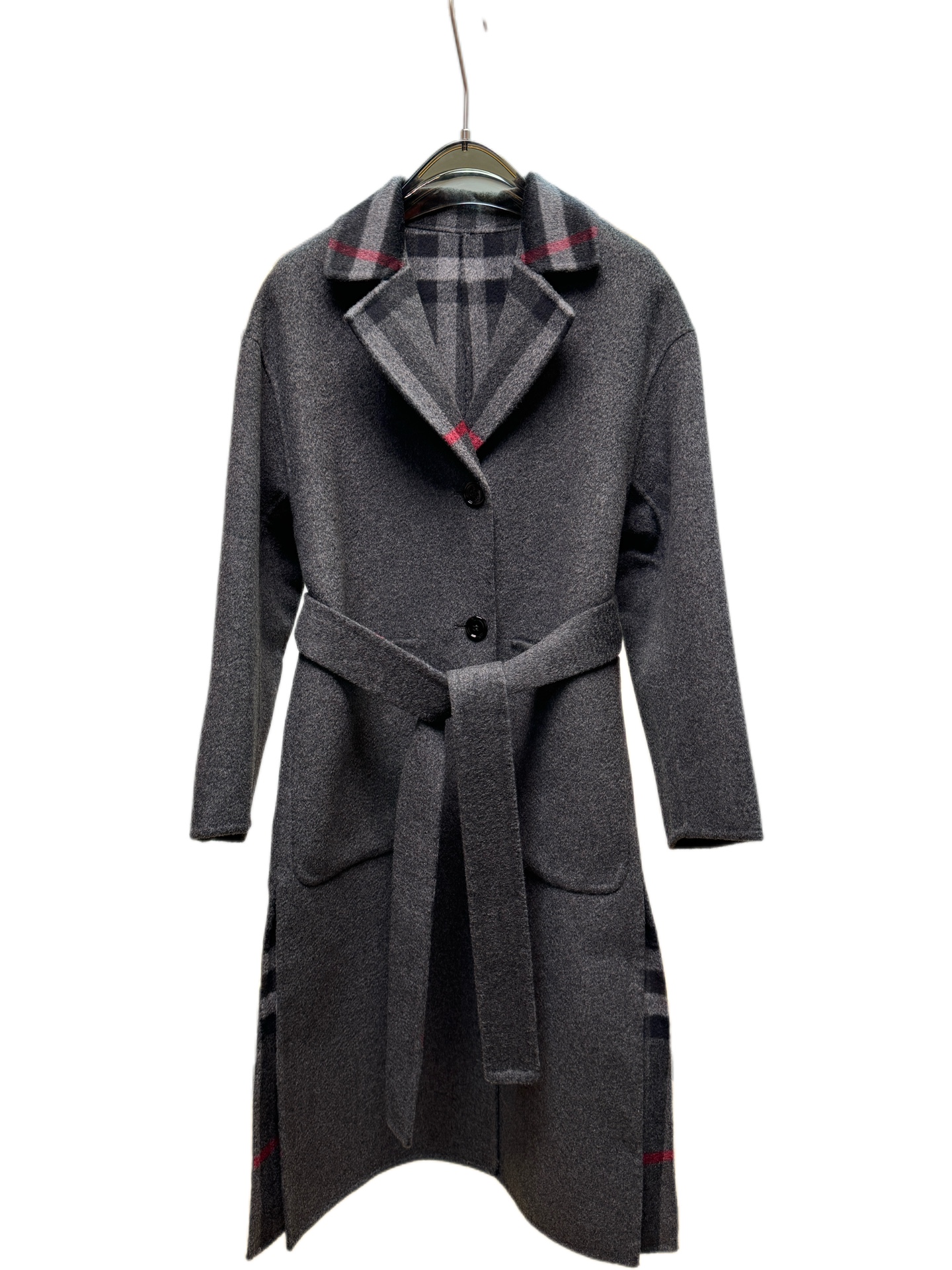 Details: Long suit-collared and laced coat in dark grey or camel, sizes S - L. High-end customization, fine workmanship