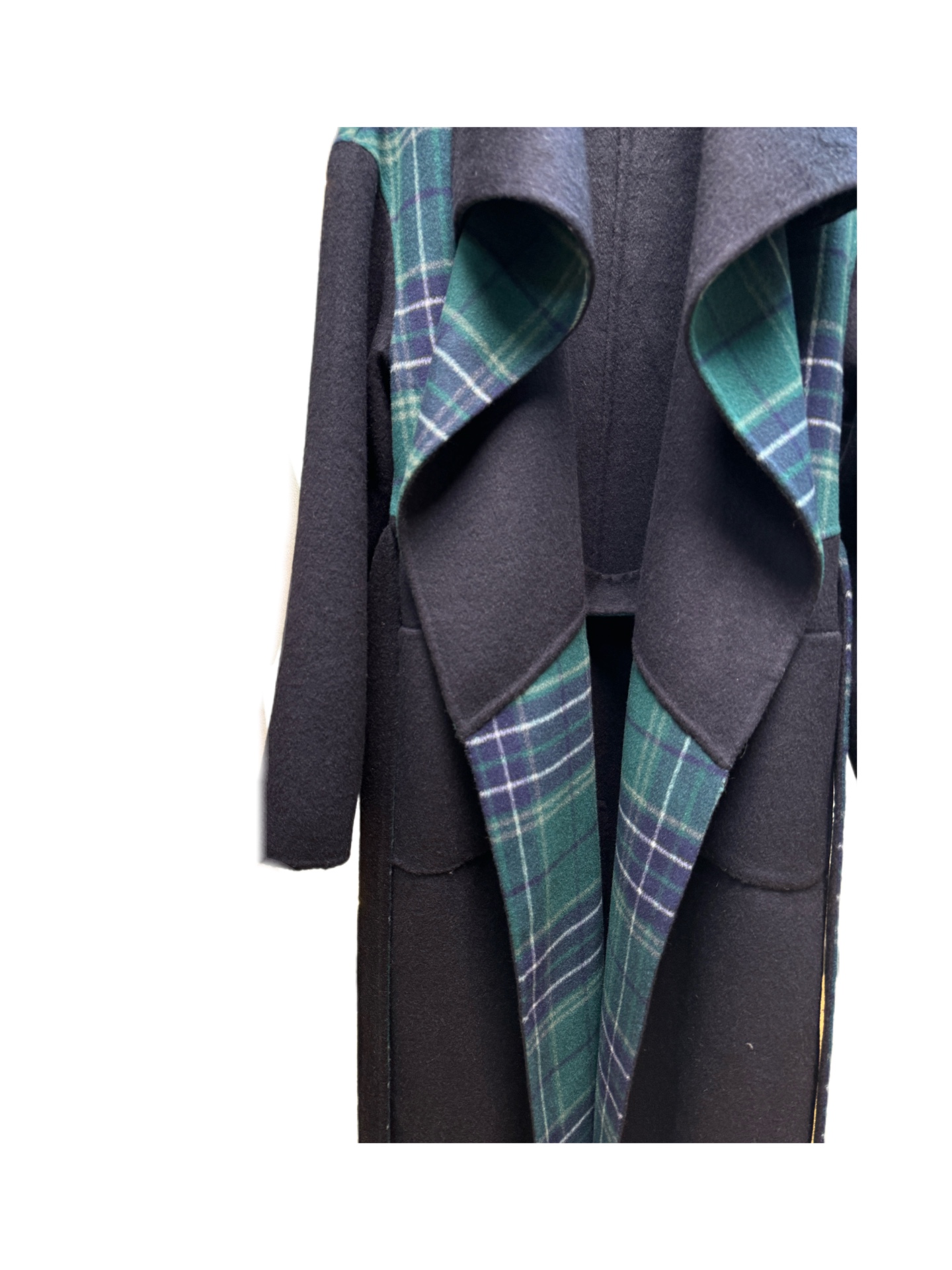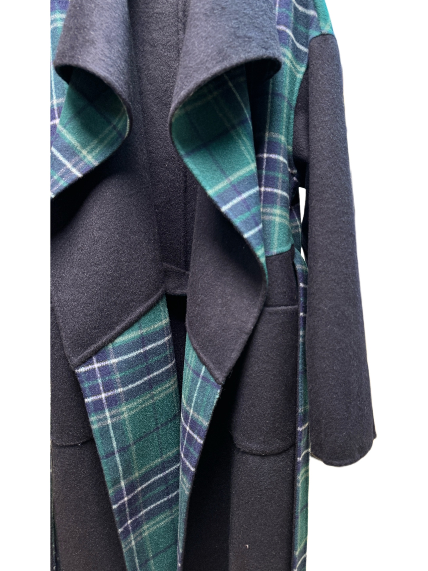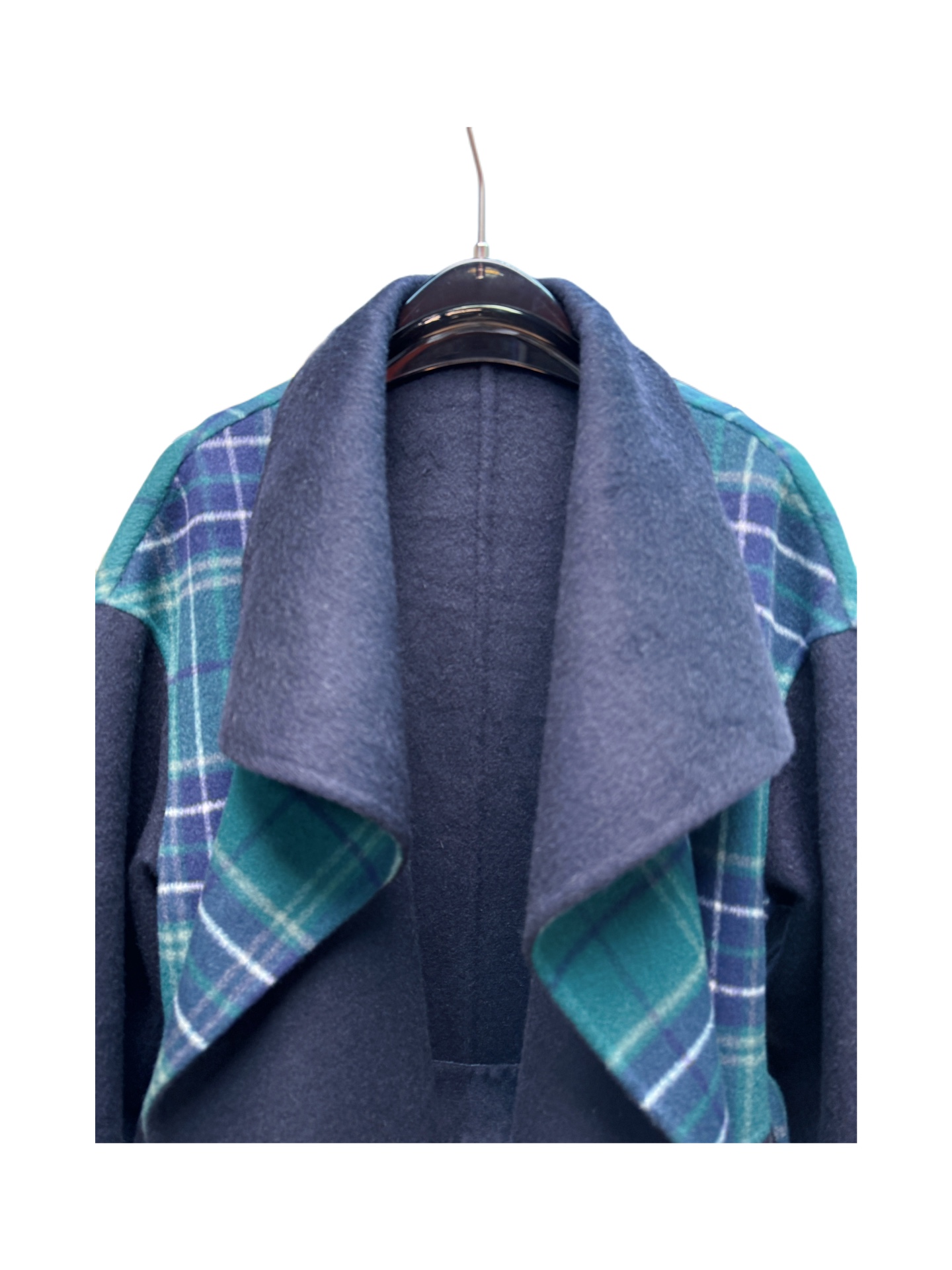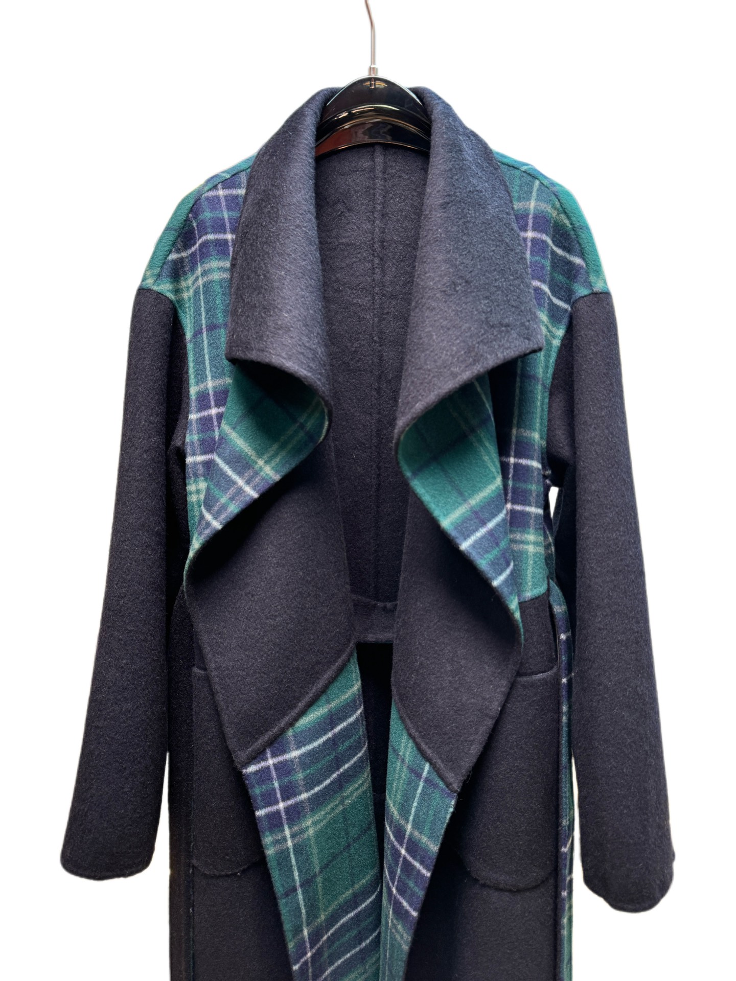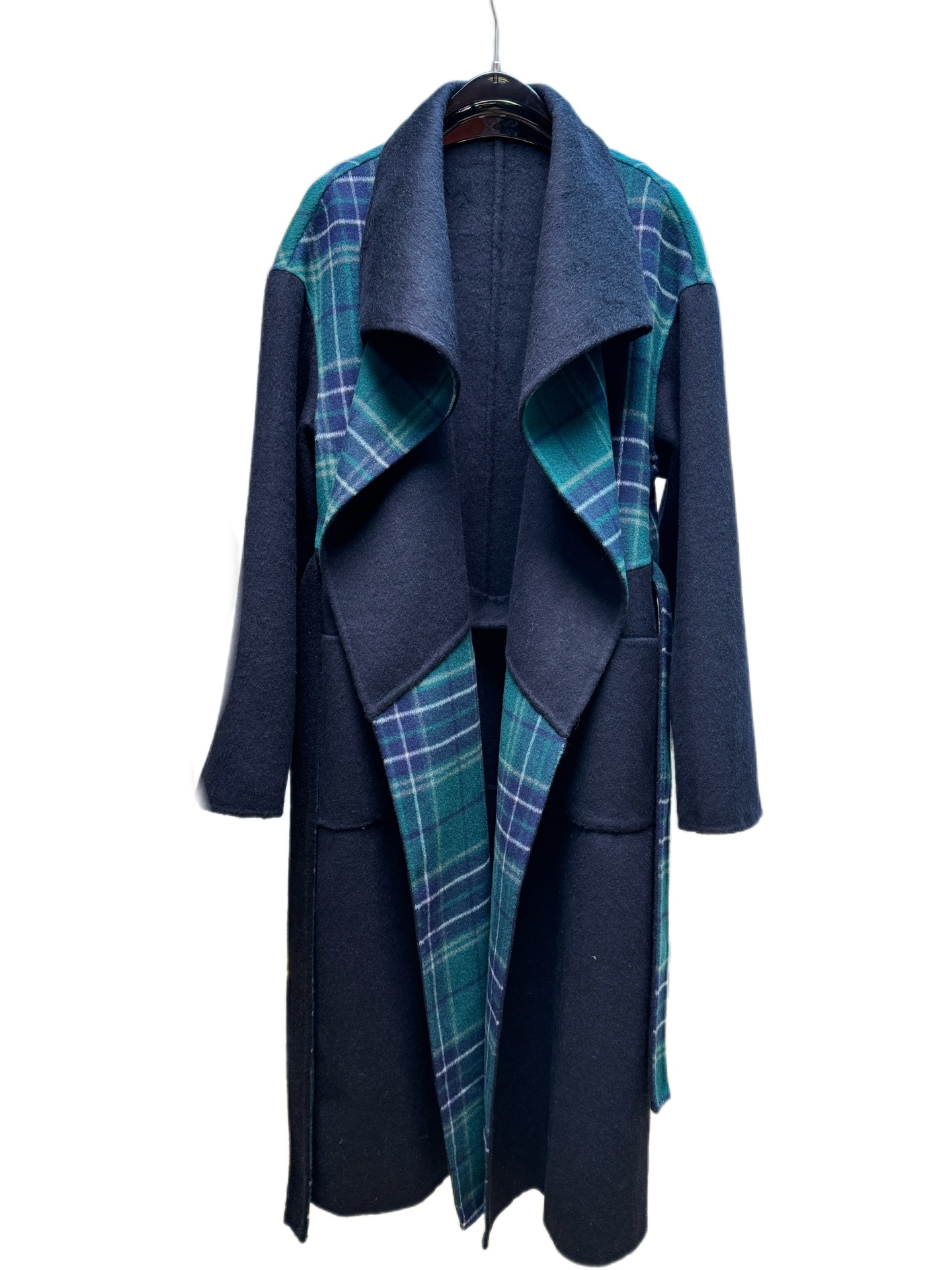 Details: Navy blue oversized collar long coat. Available in sizes S, M, L. Exquisite craftsmanship, high - end customization