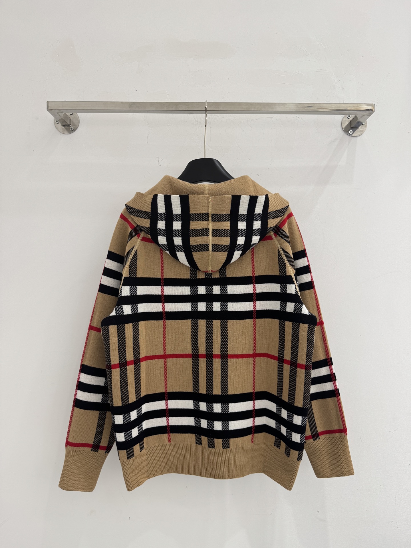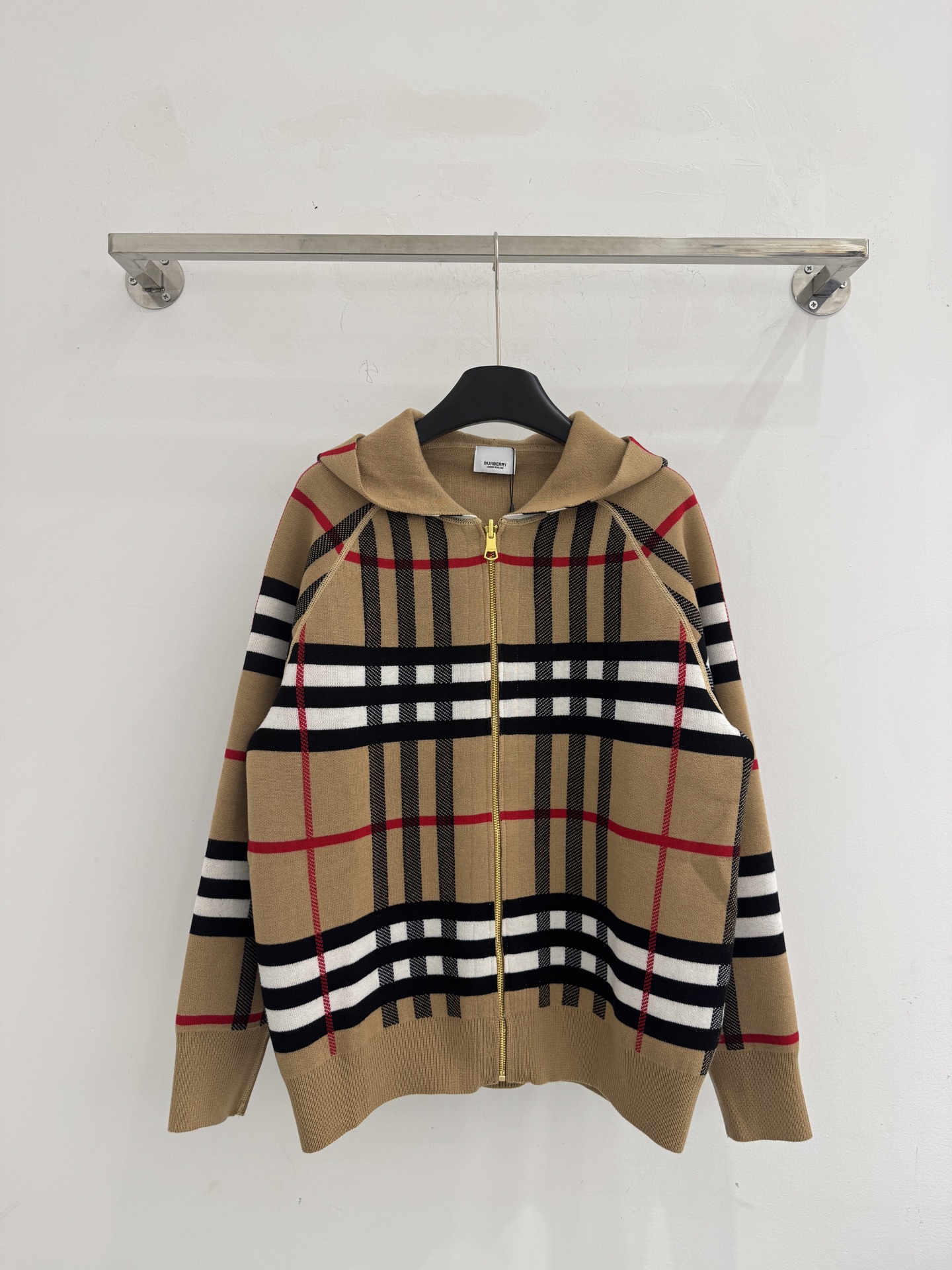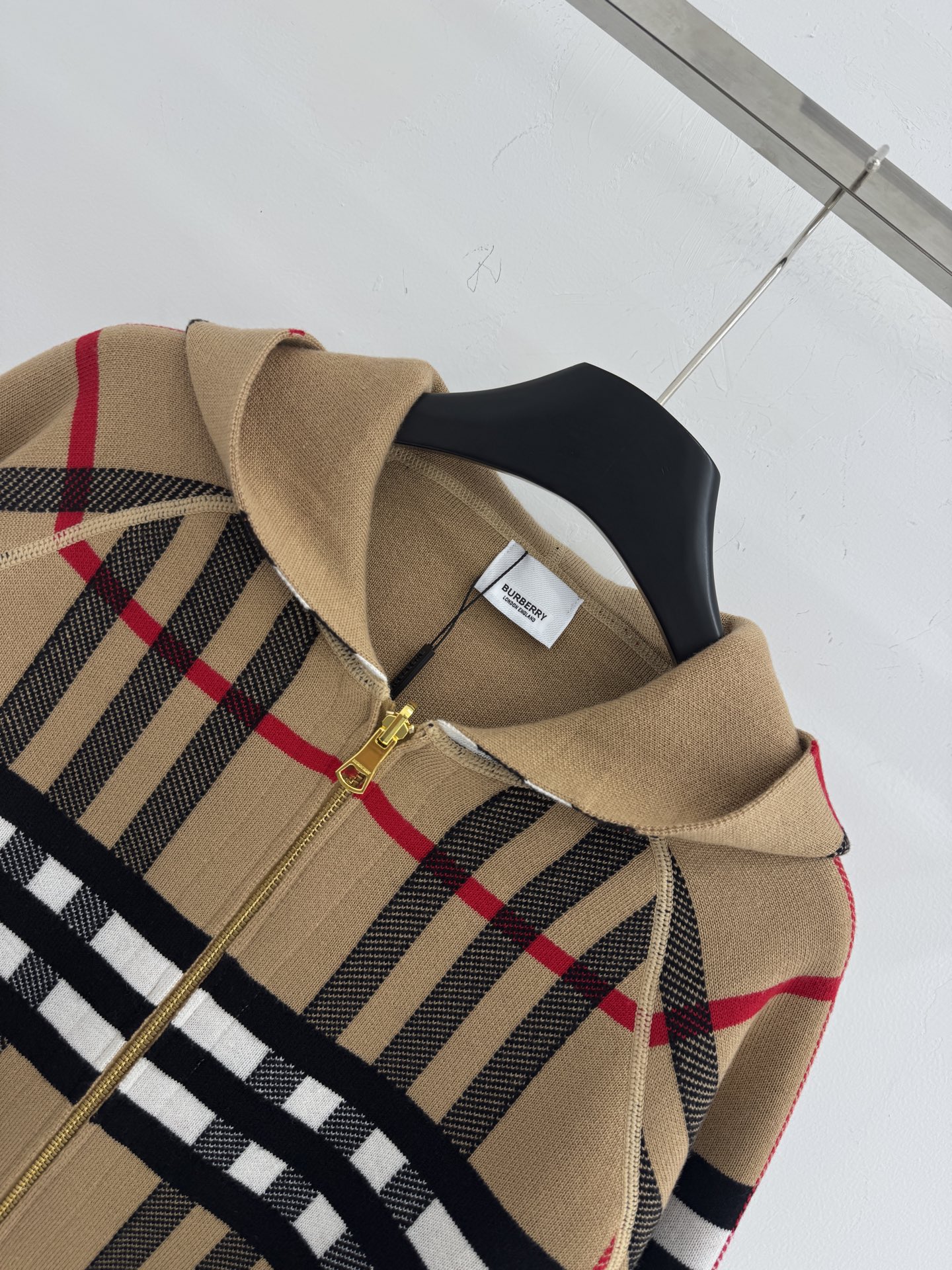 Details: Autumn-Winter Knit Zip-Up Sweater, reversible with checker and logo, available in S, M, L. High-end Custom, Fine Workmanship