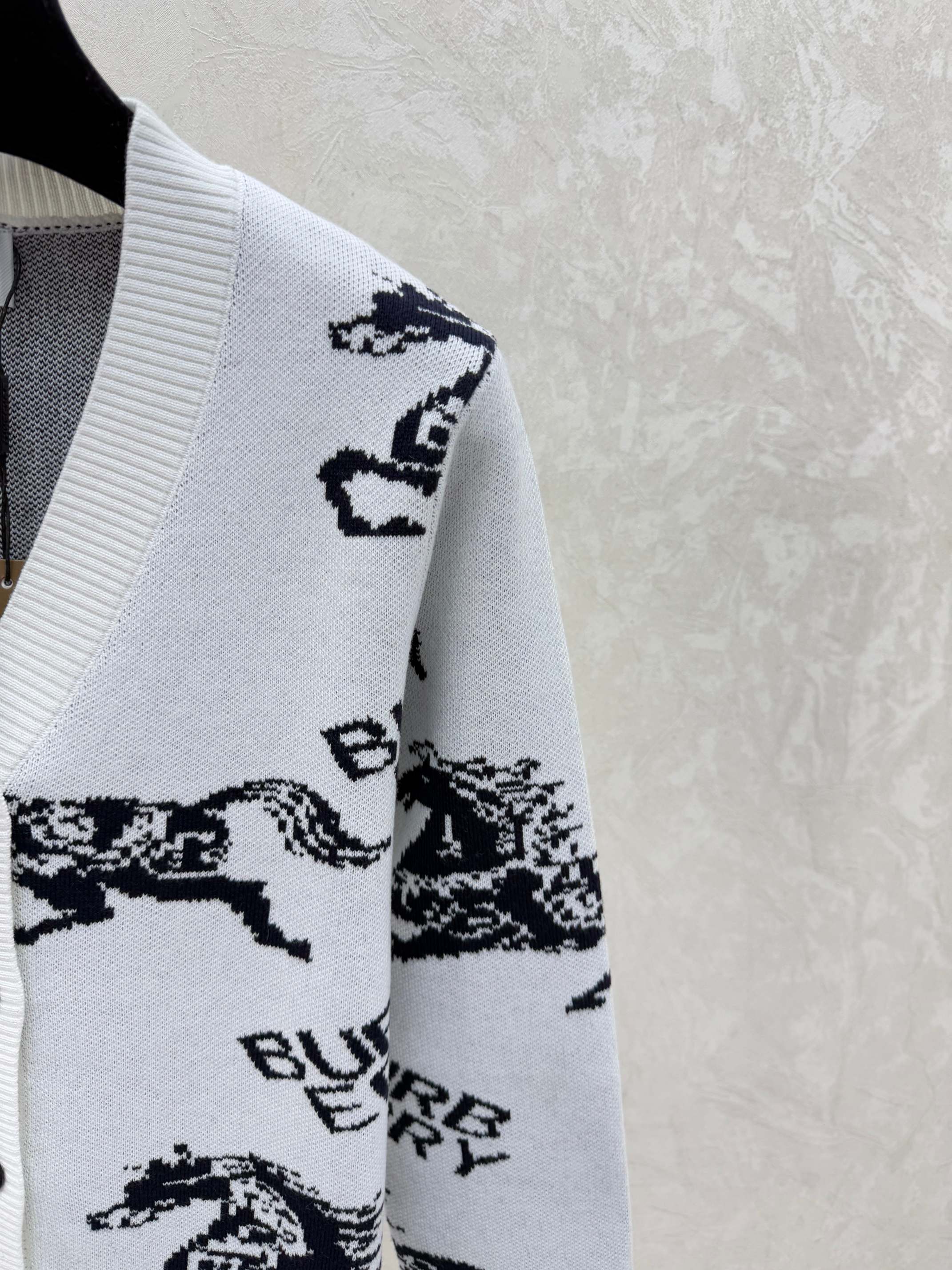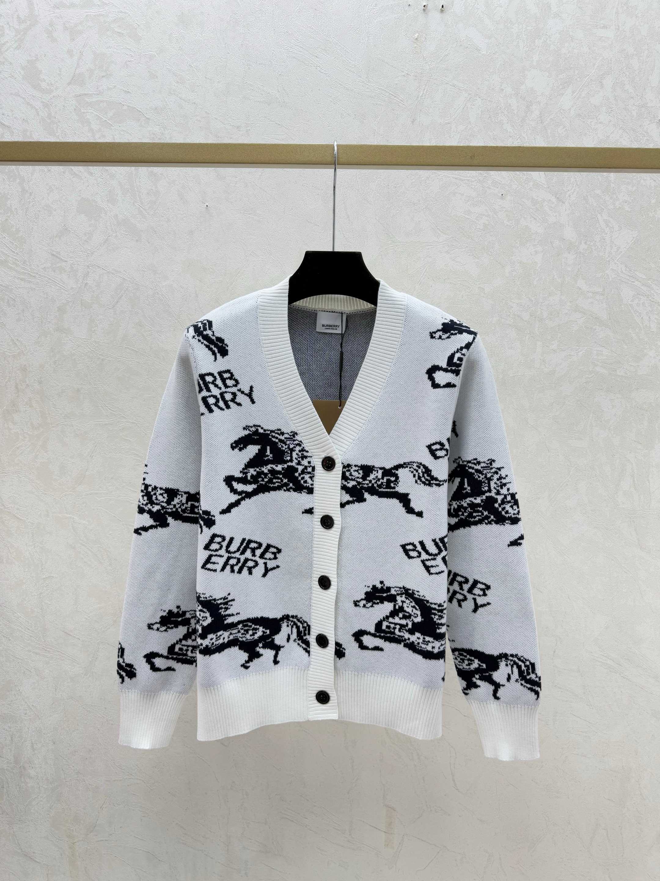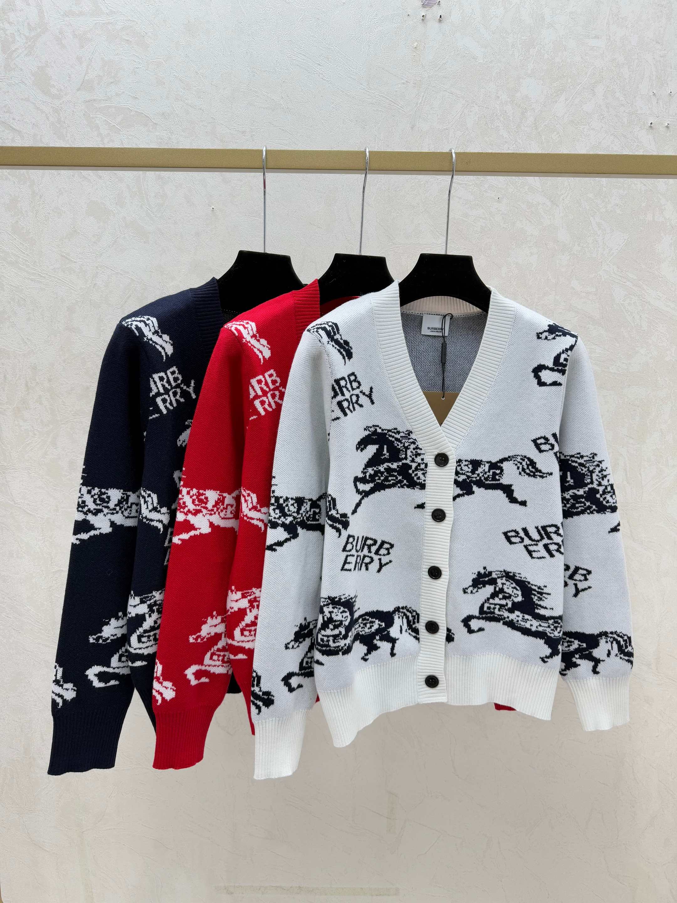 Details: Early autumn Color-blocked knitted long-sleeved V-neck cardigan, available in white/red/blue, sizes 36/38/40. High-end customization, fine workmanship