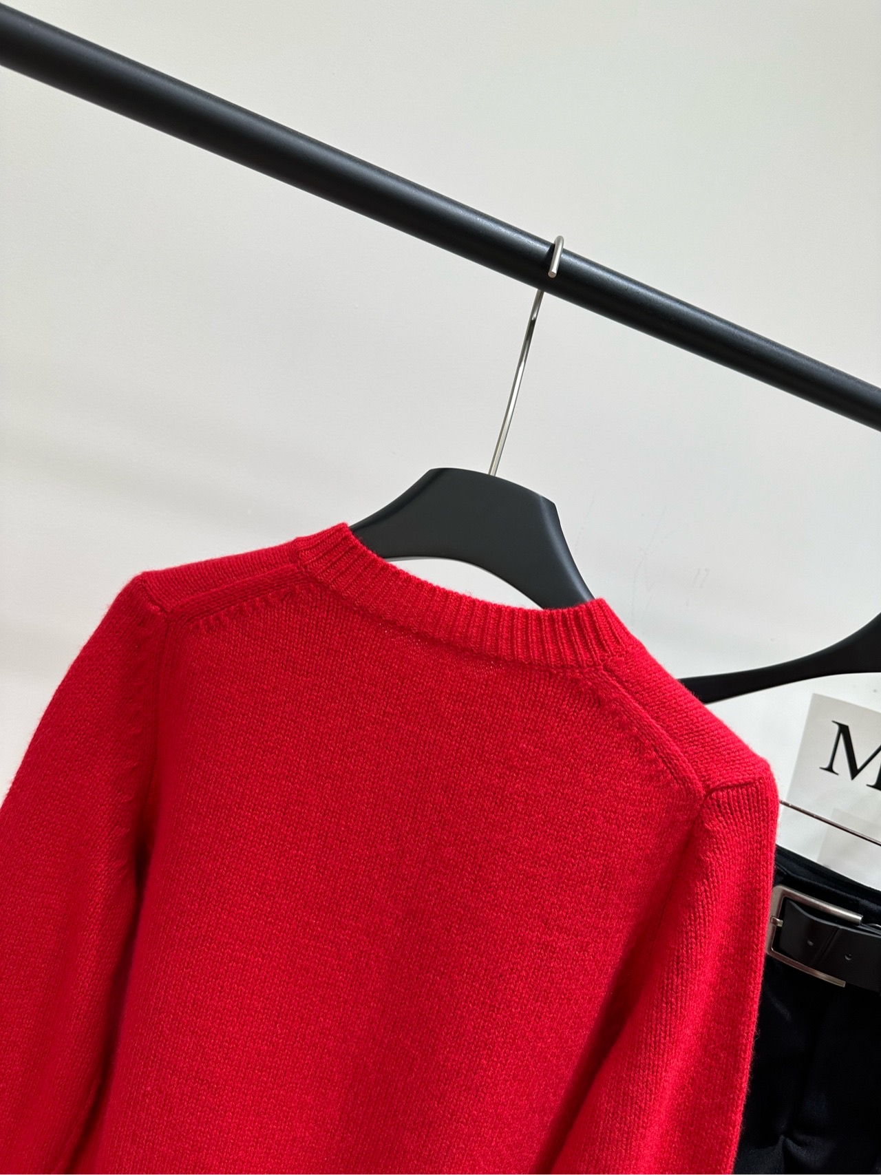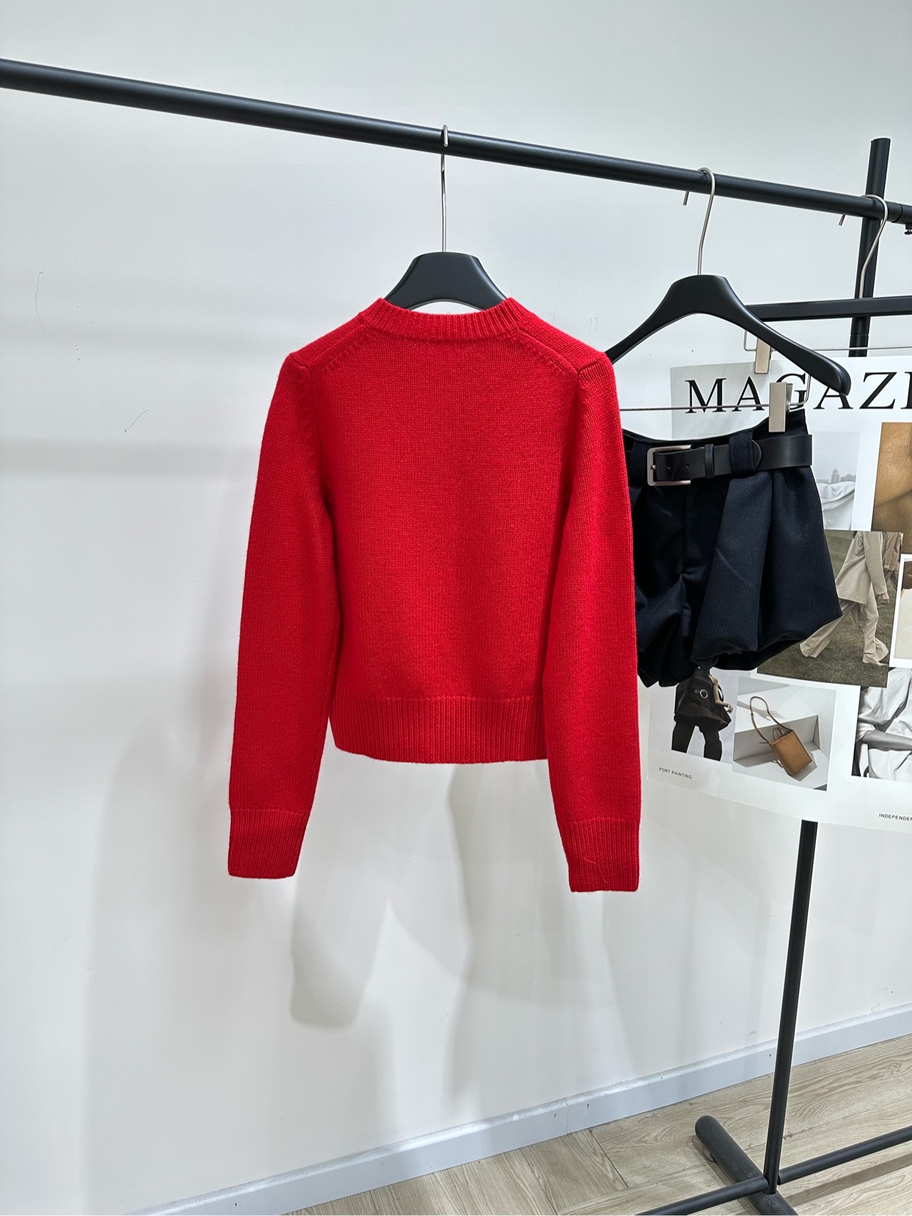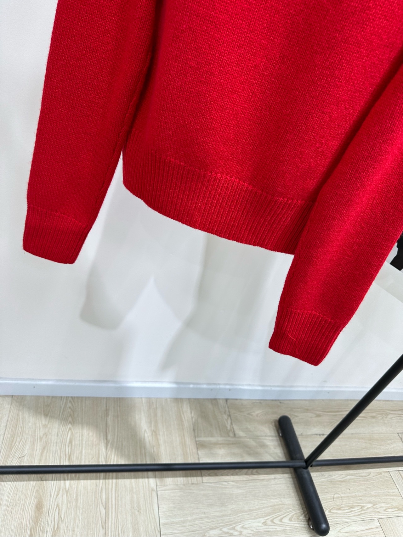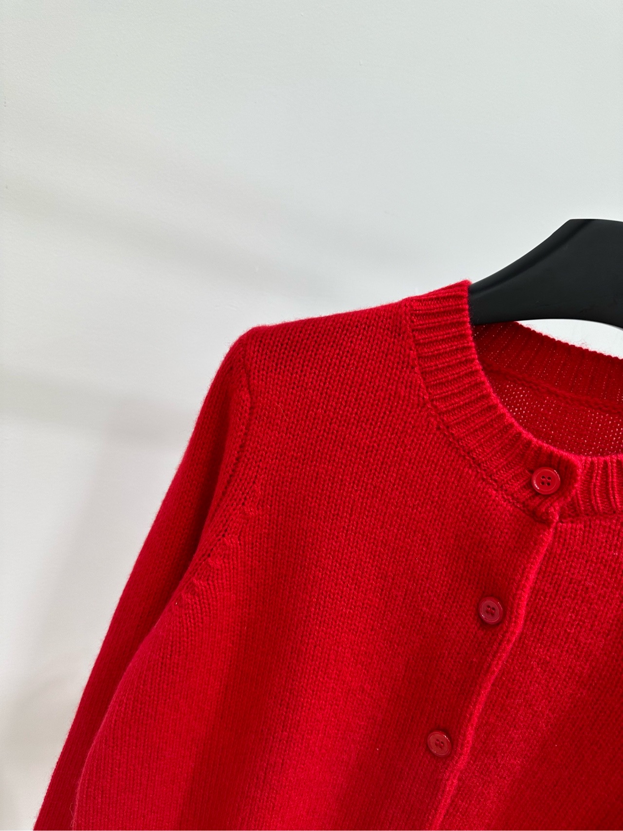 Details: Red wool - cashmere blend open cardigan with horse logo, suitable for festivals