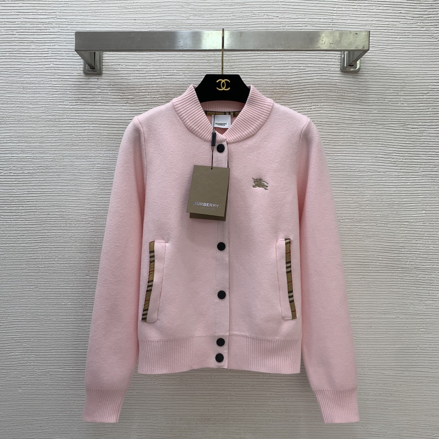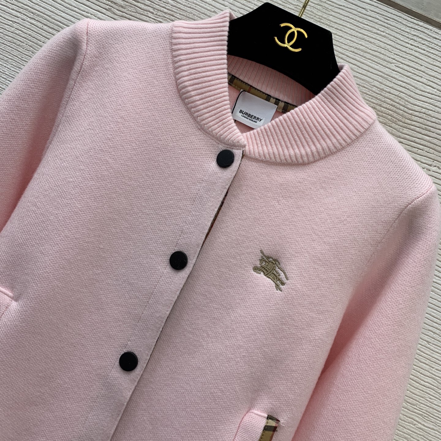 Details: New high-end custom classic plaid knitted jacket with knight embroidery, in multiple colors, size M.