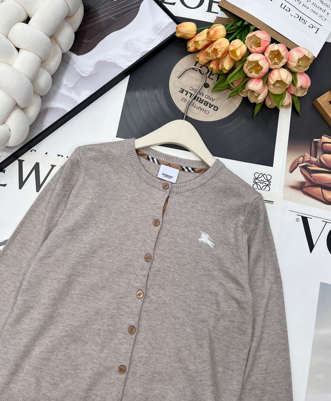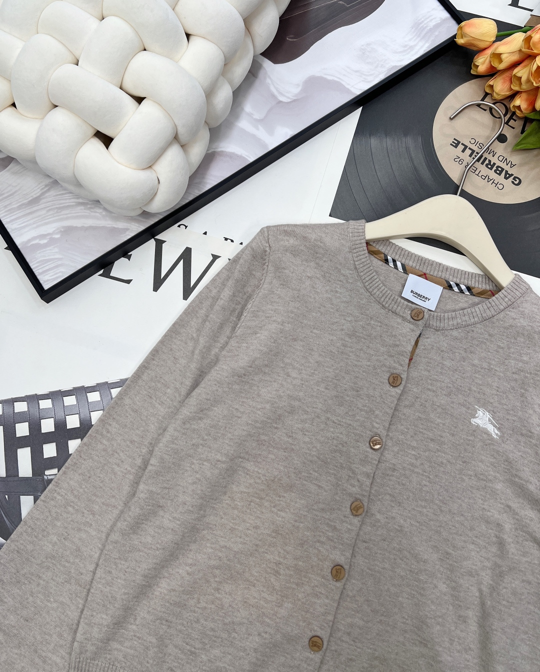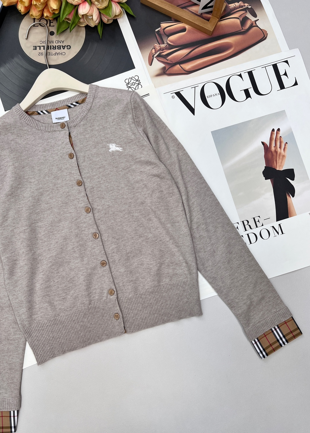 Details: Checkered round-neck contrast knit cardigan with a classic British style, made of premium wool, versatile for various occasions, elegant and chic.