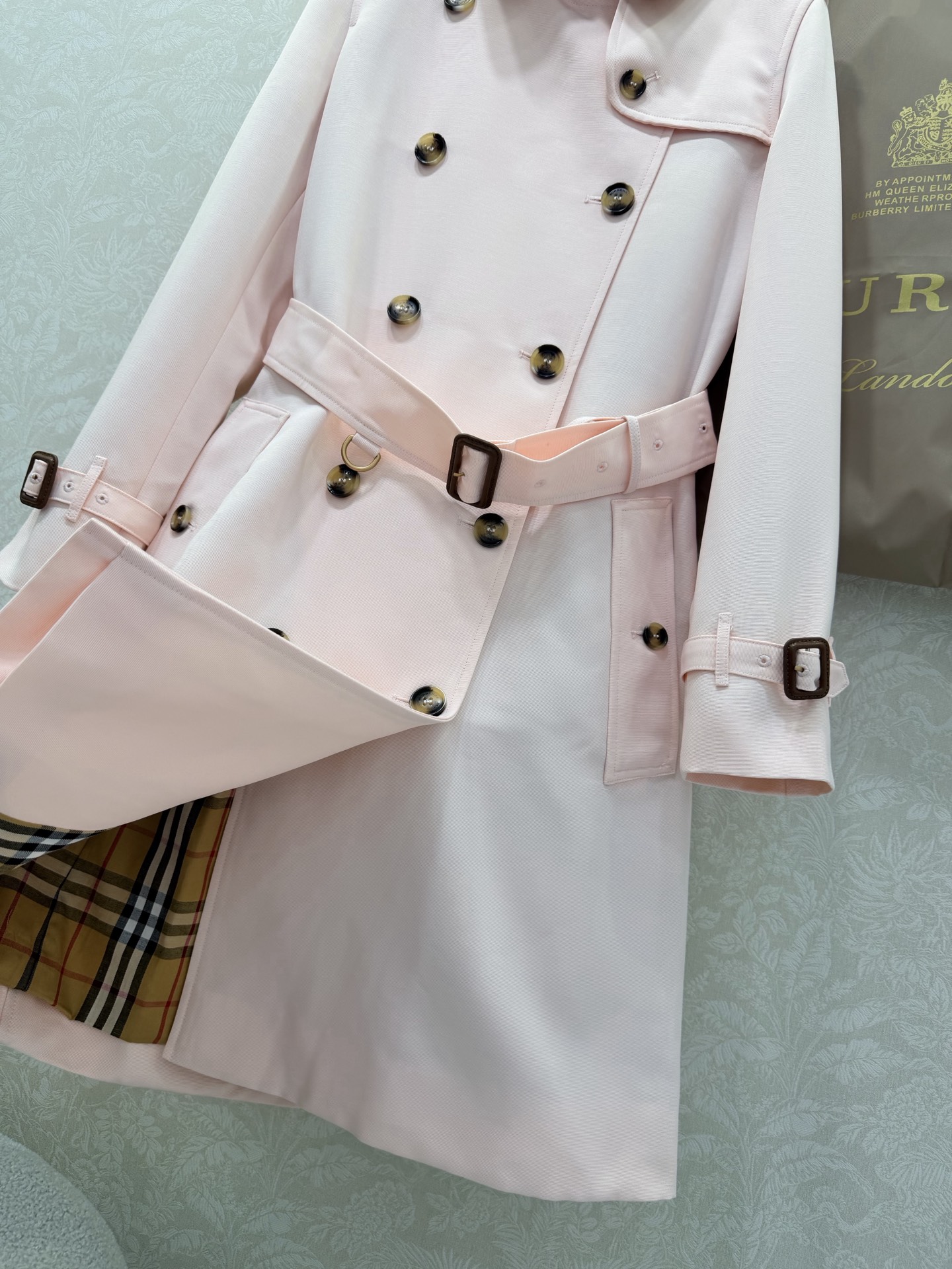 Details: New five - row deduction series, pink color, classic windbreaker, high - quality fabric, advanced customization, fine workmanship