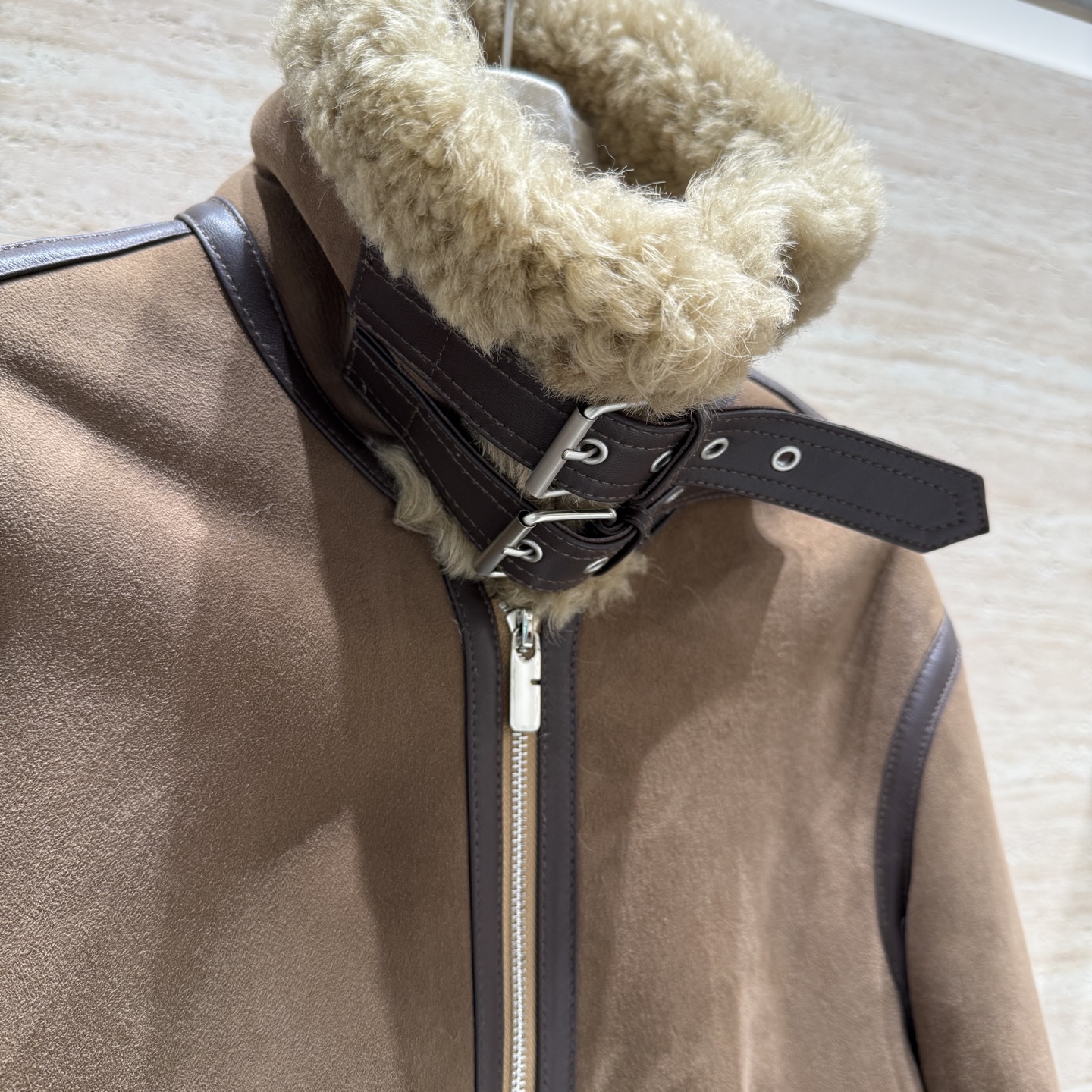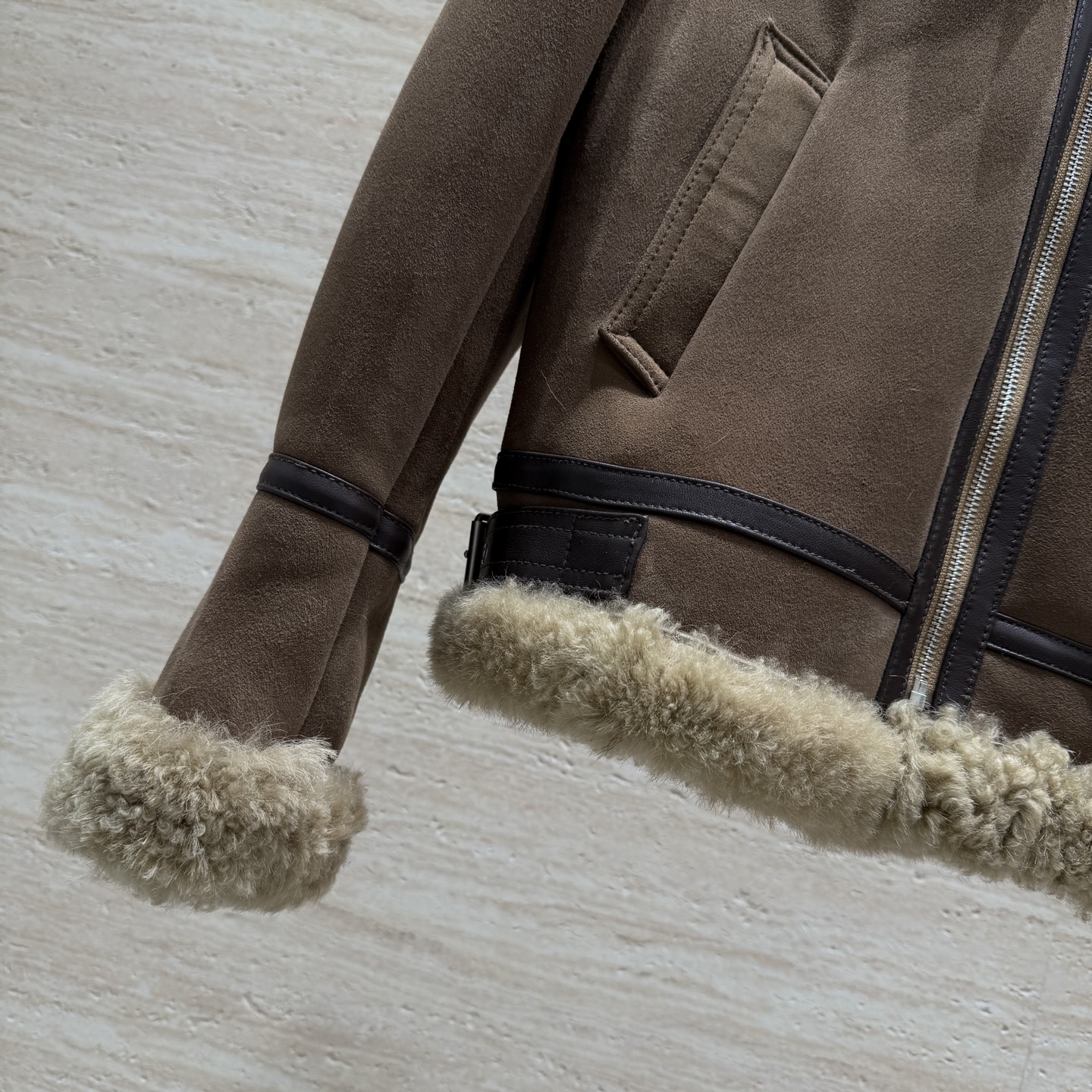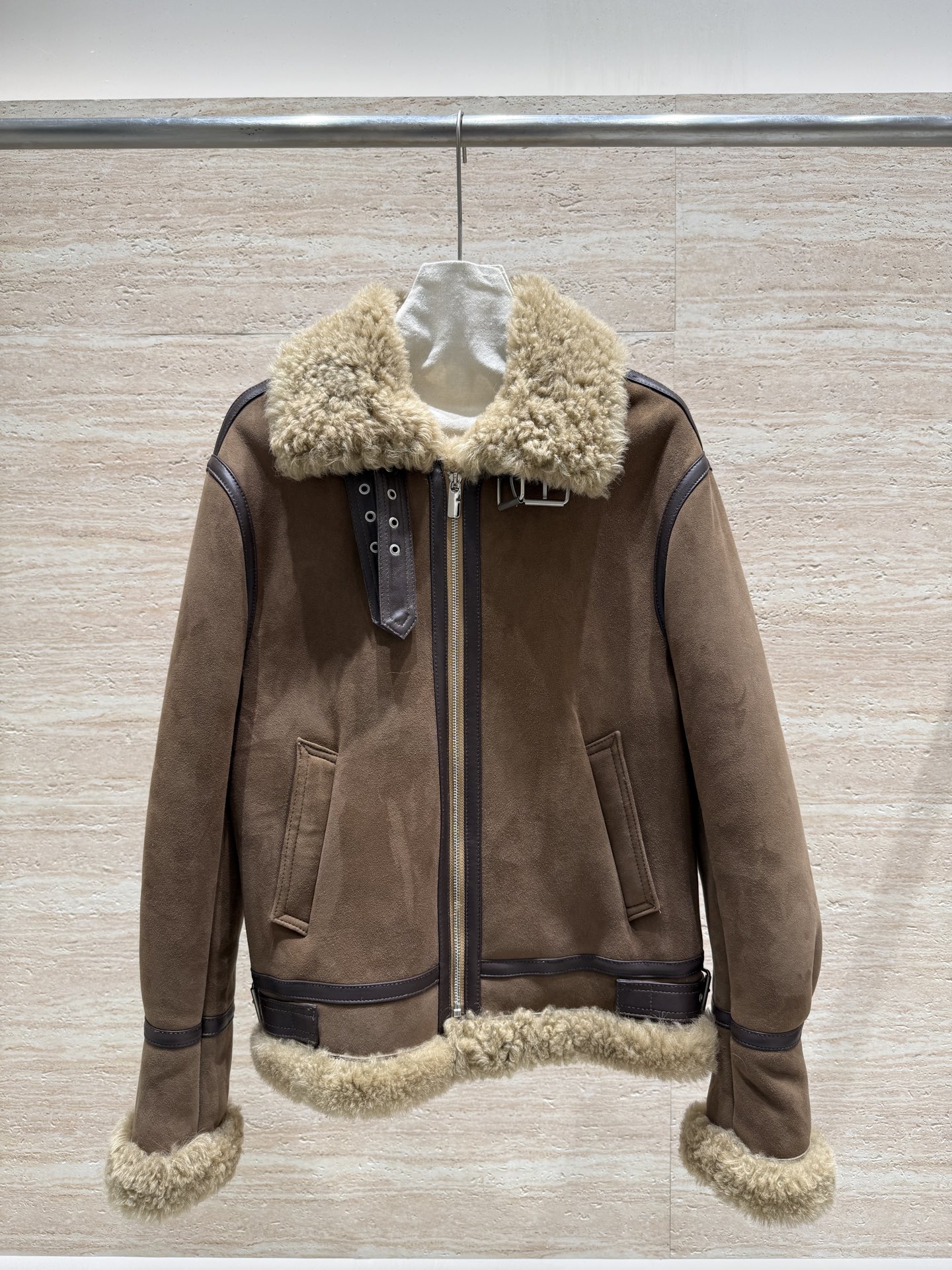 Details: New leather and fur motorcycle jacket, Spanish imported suede, convertible fur collar, unisex, size 36 - 40