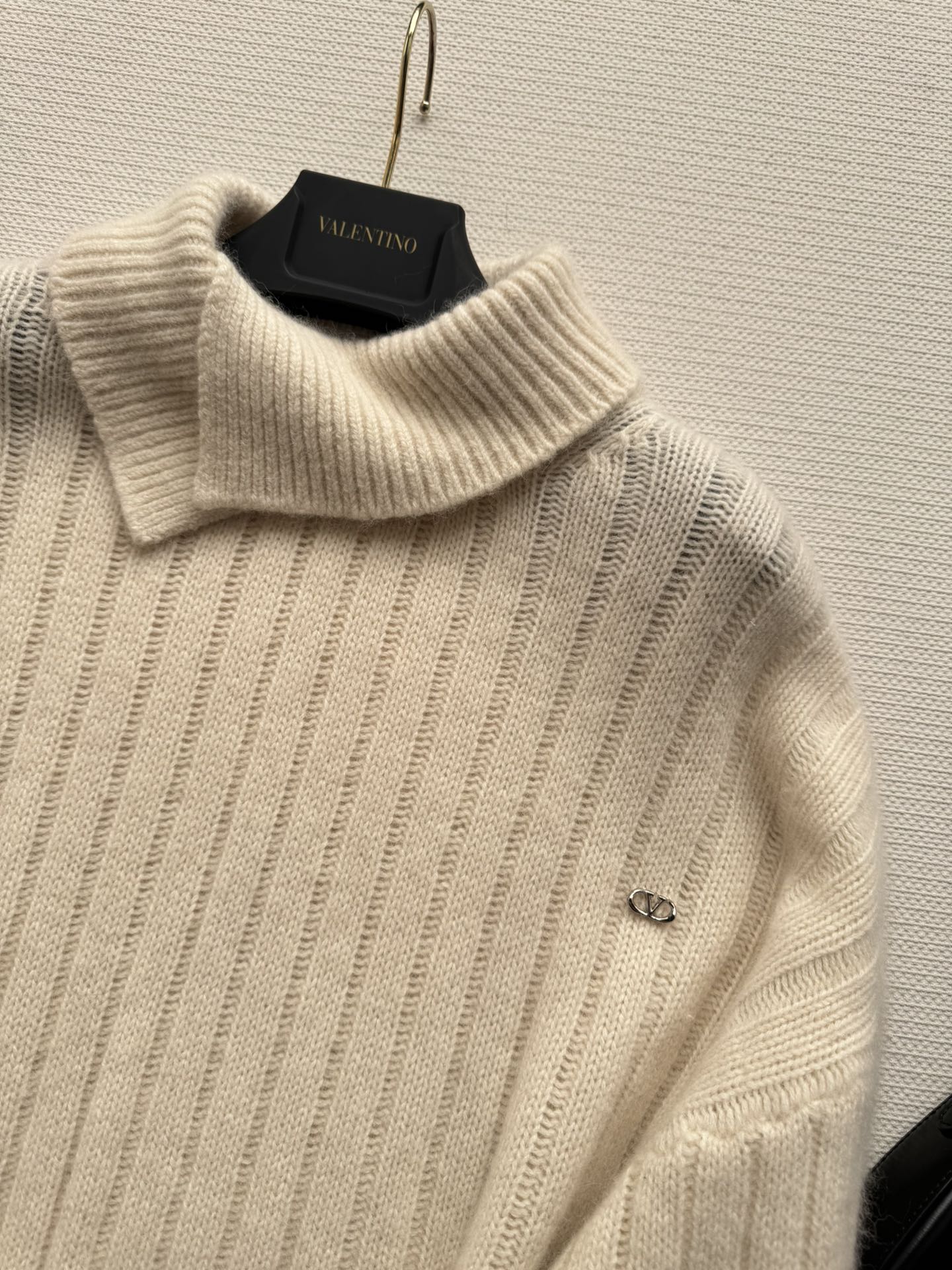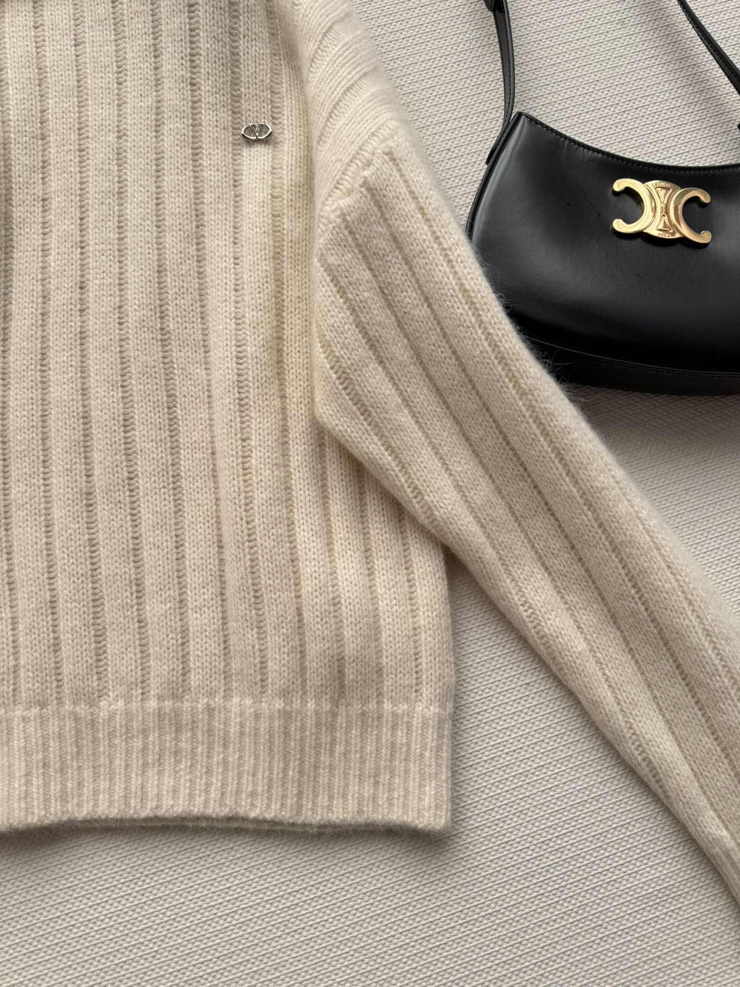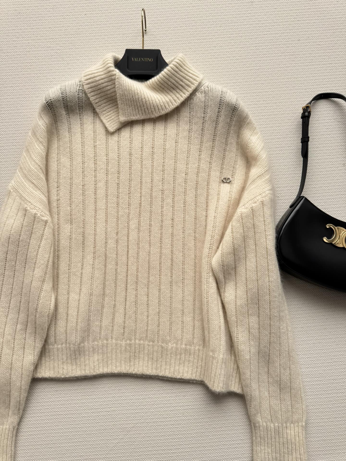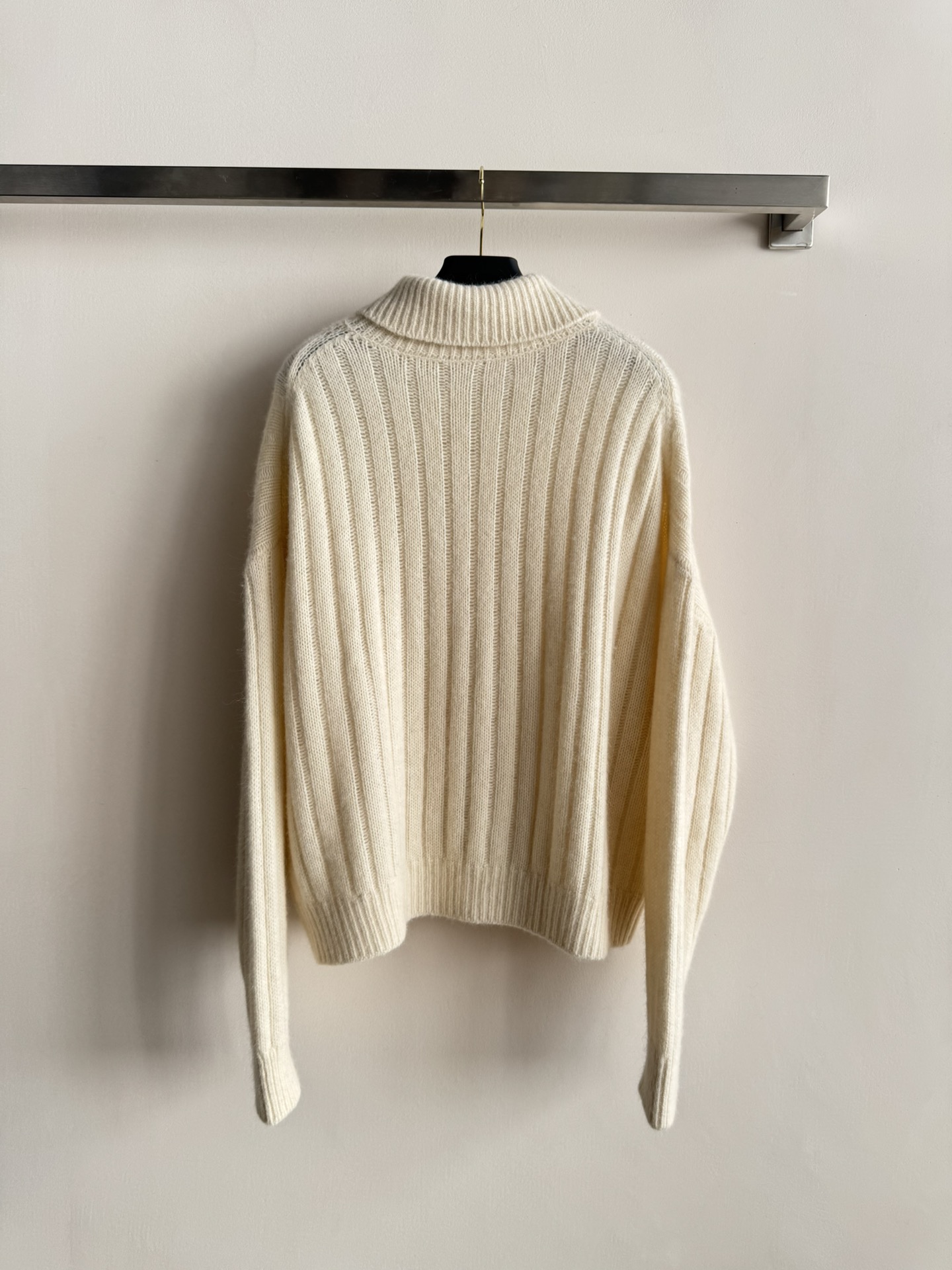 Details: Autumn-winter Cashmere Sweater with Ribbed Texture and Asymmetrical Collar, Multi-style Wear