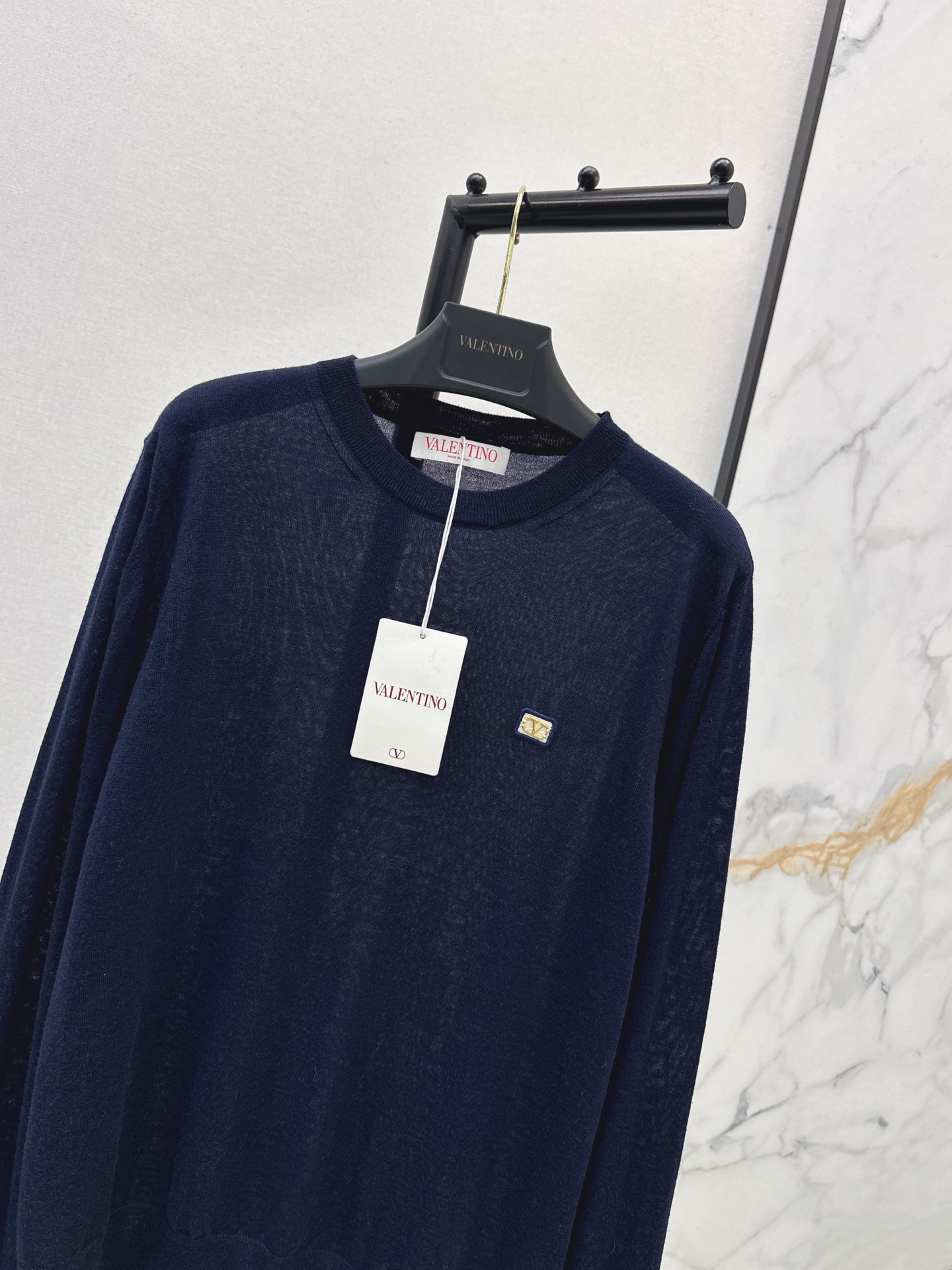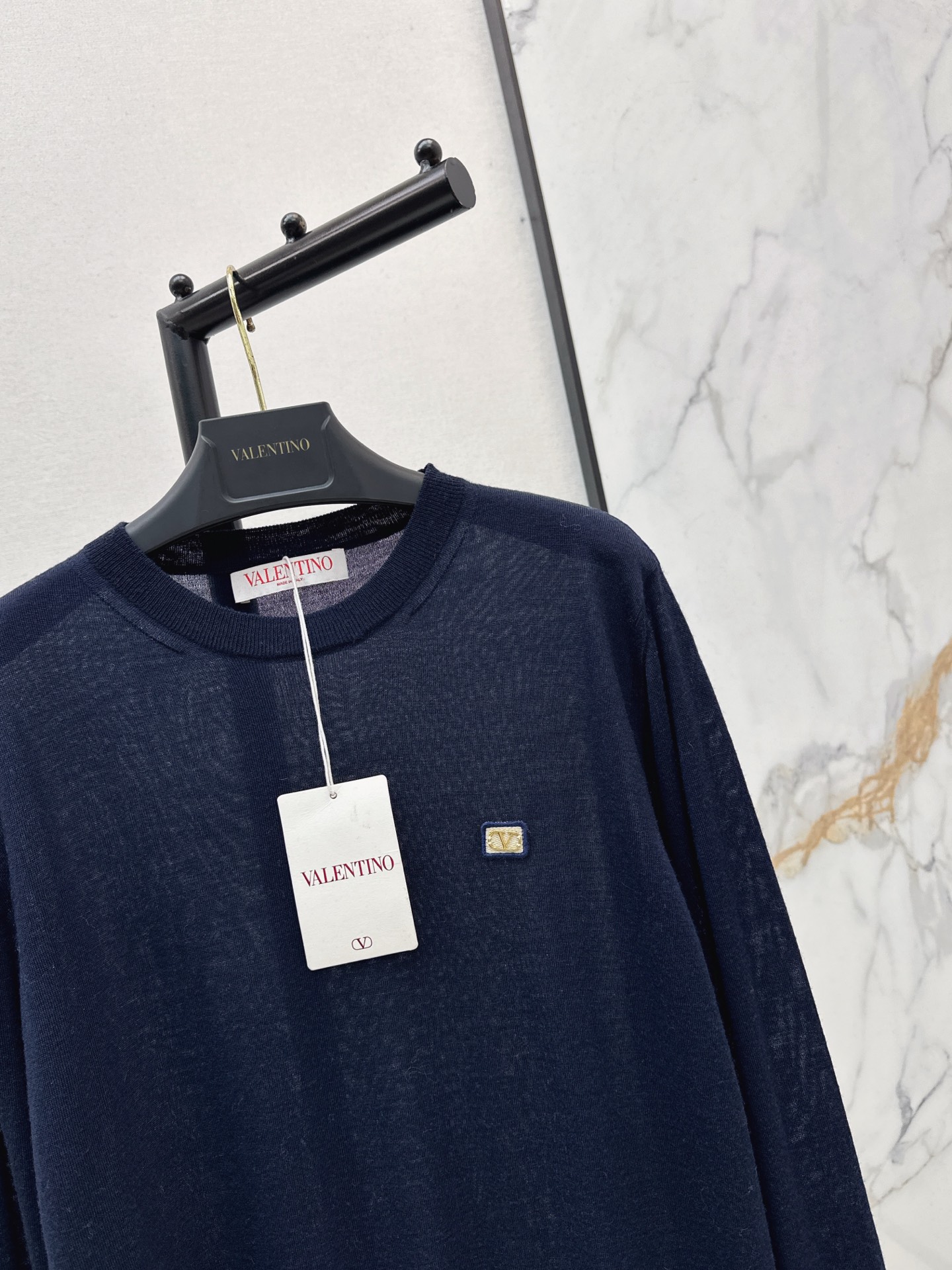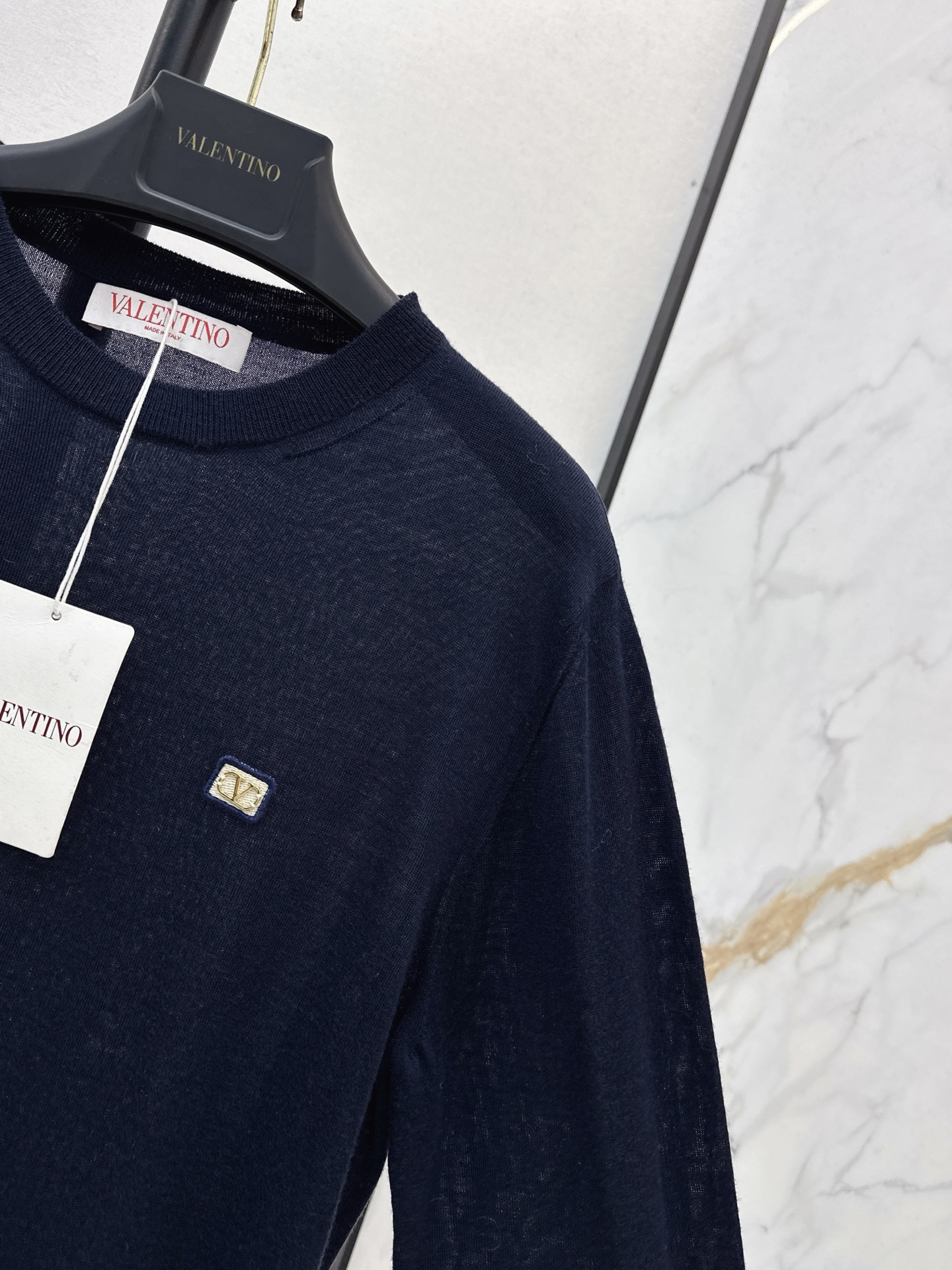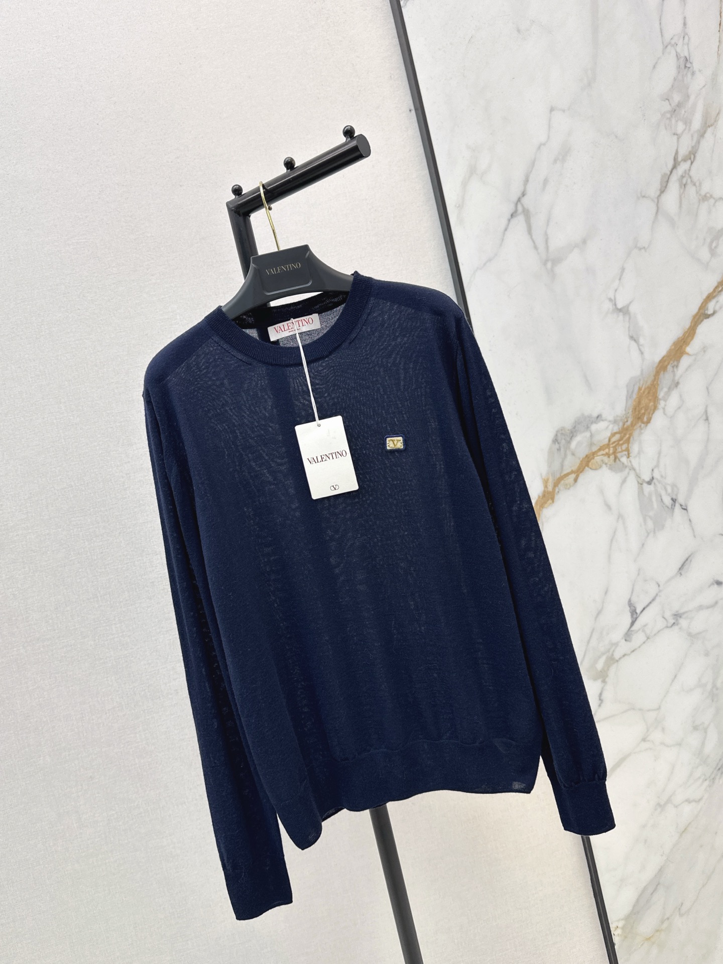 Details: Early spring classic round neck wool blend sweater, featuring a letter badge, ideal for layering, available in a single versatile color.