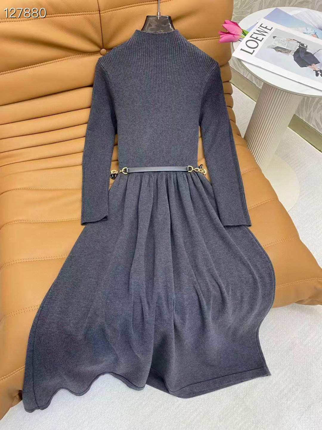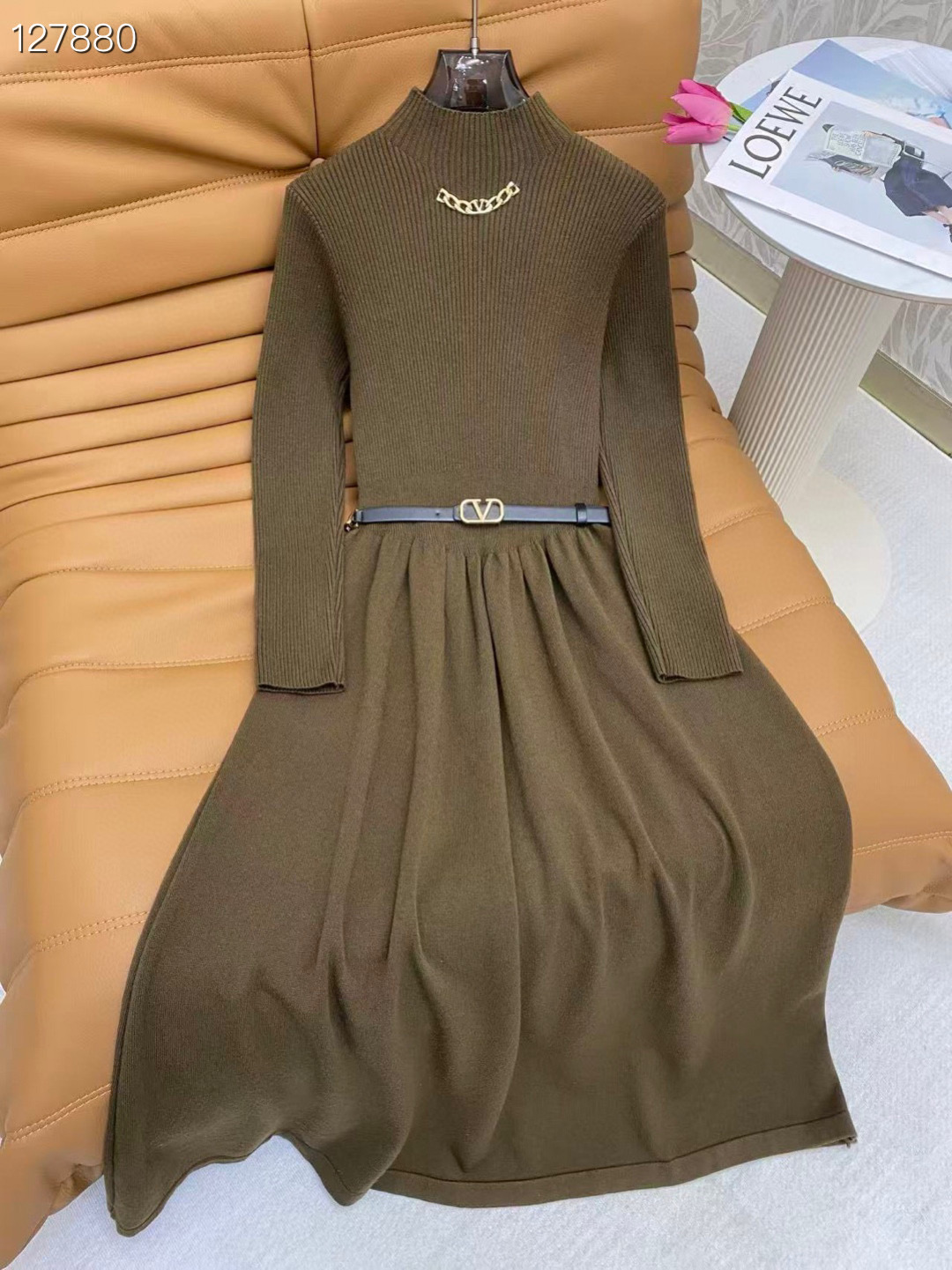 Details: Spring Wool Blend Dress, High Collar with Chain, Multiple Colors, High-end Customization, Fine Workmanship