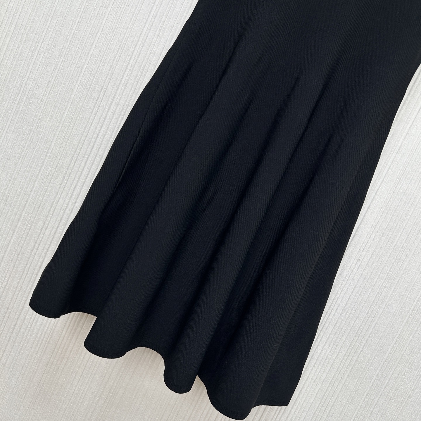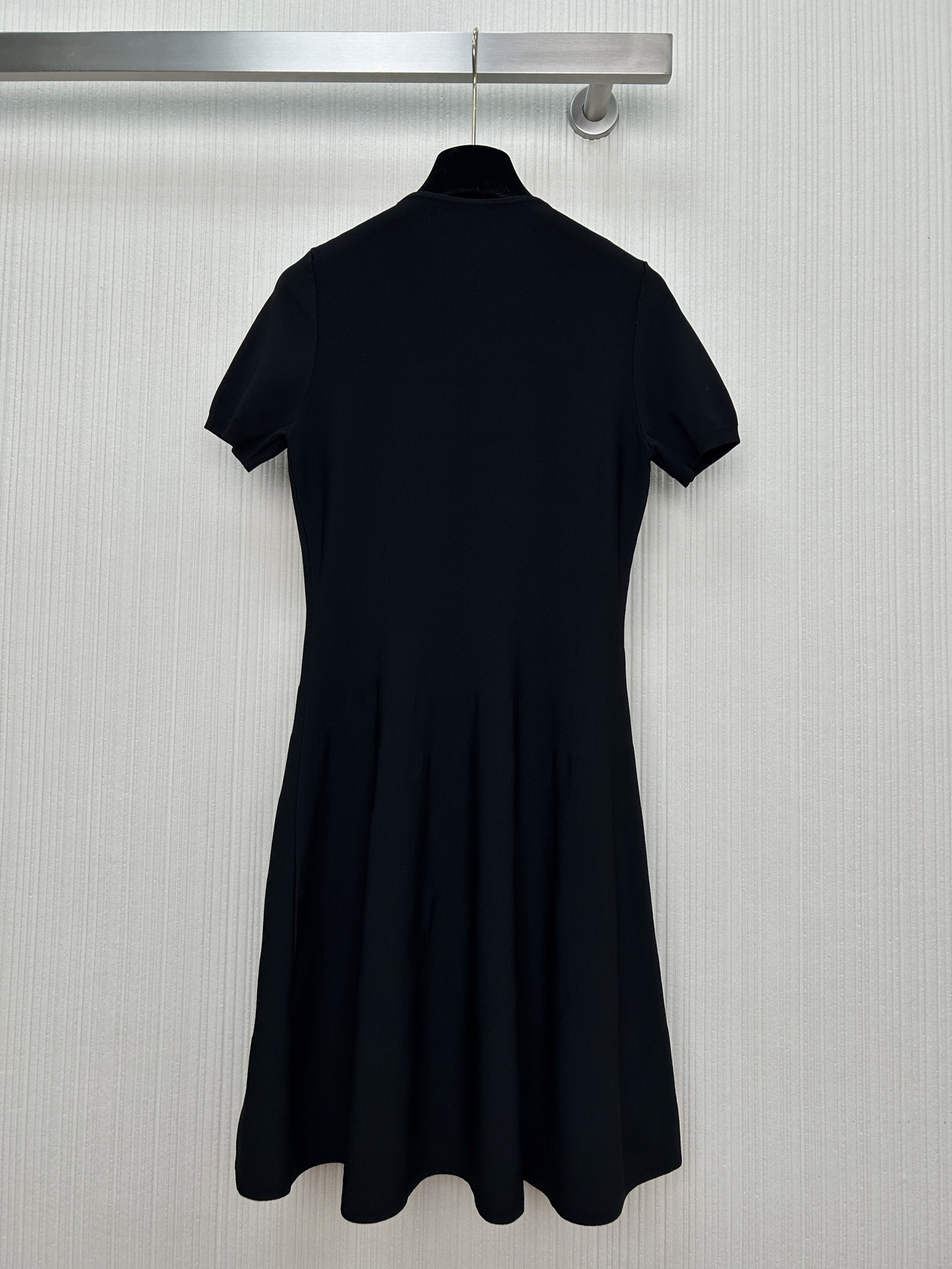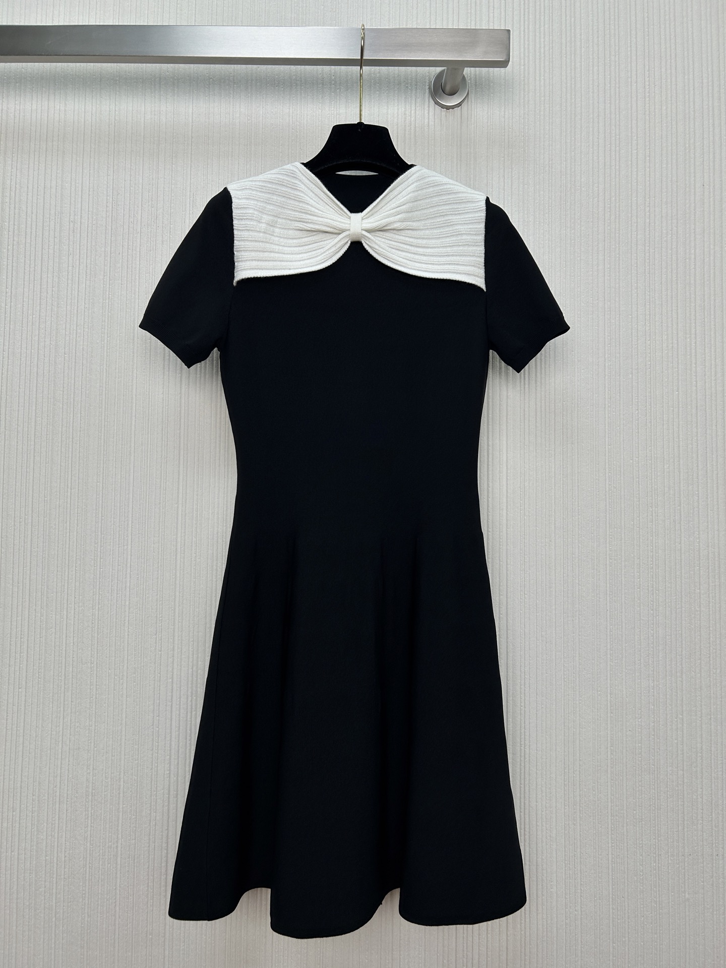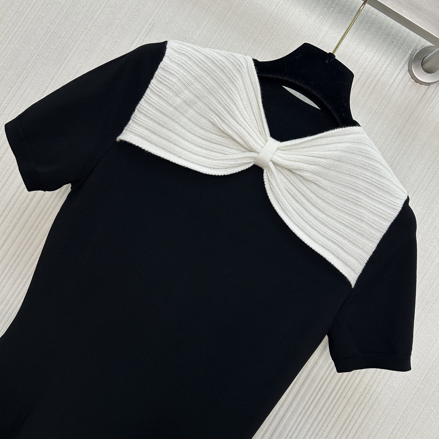 Details: Early spring bowknot knitted short-sleeved dress, imported material, elegant design, cinched waist, advanced customization, fine workmanship