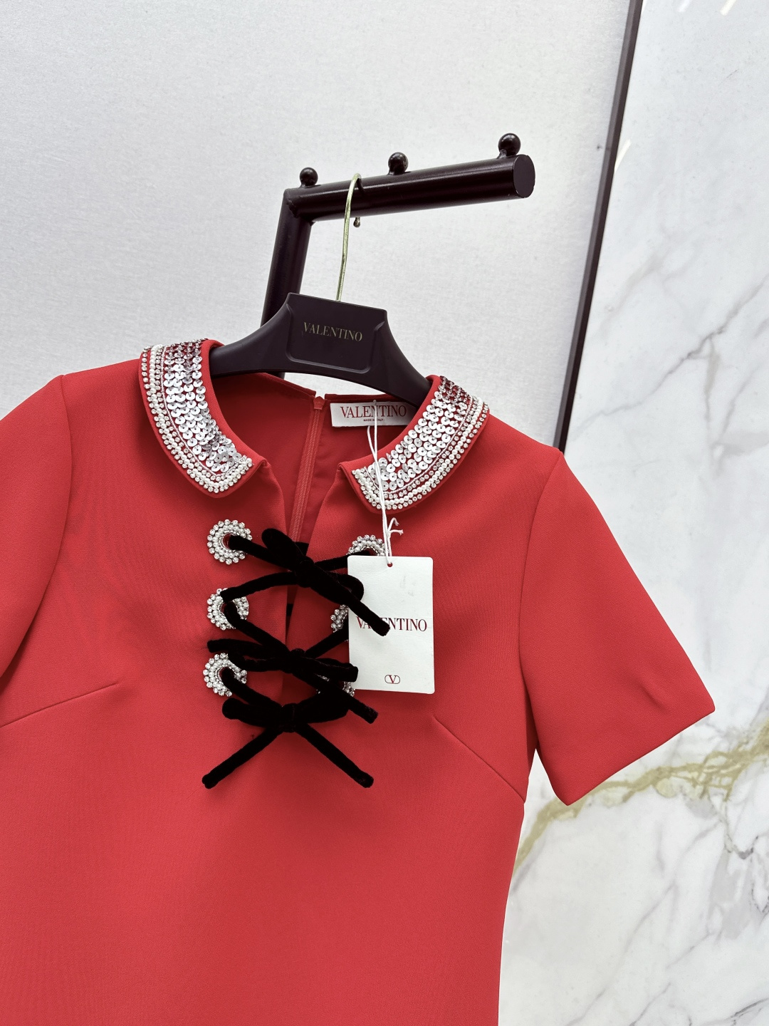 Details: New Year limited edition dress with sequins, velvet bow, short sleeves, slimming, in three colors.