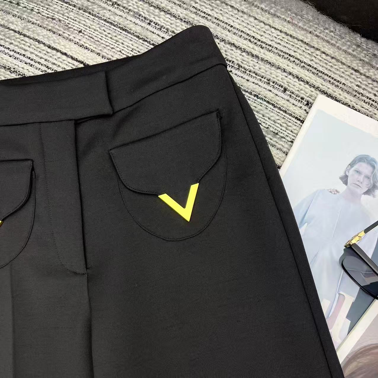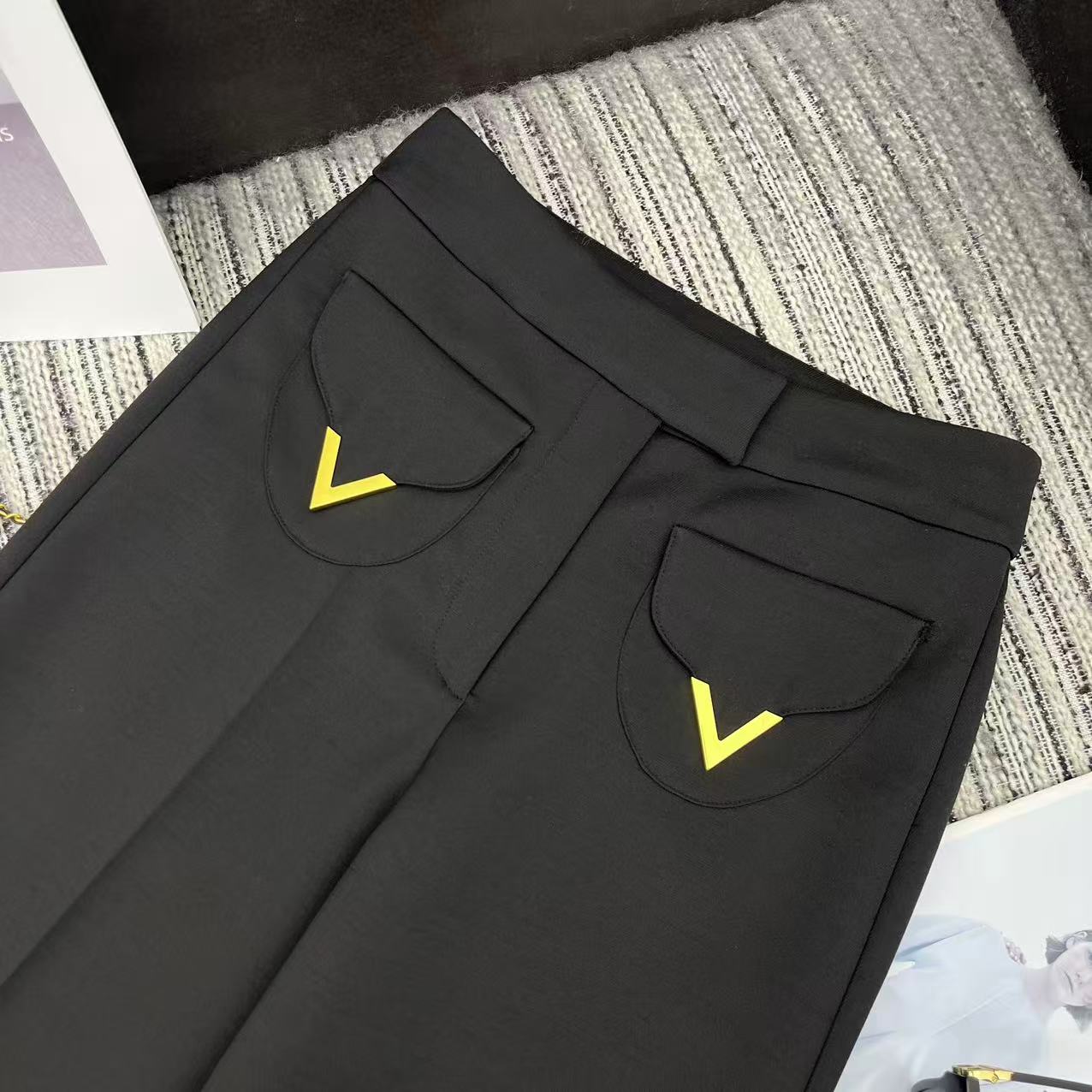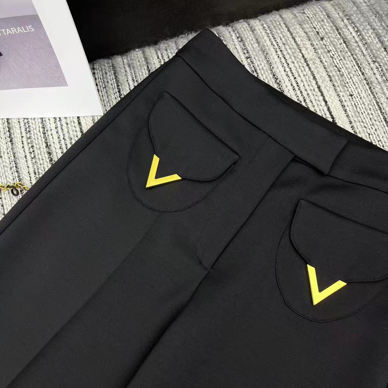 Details: Early spring series straight-leg suit pants, hem folded, metal V-button pockets, two colors available
