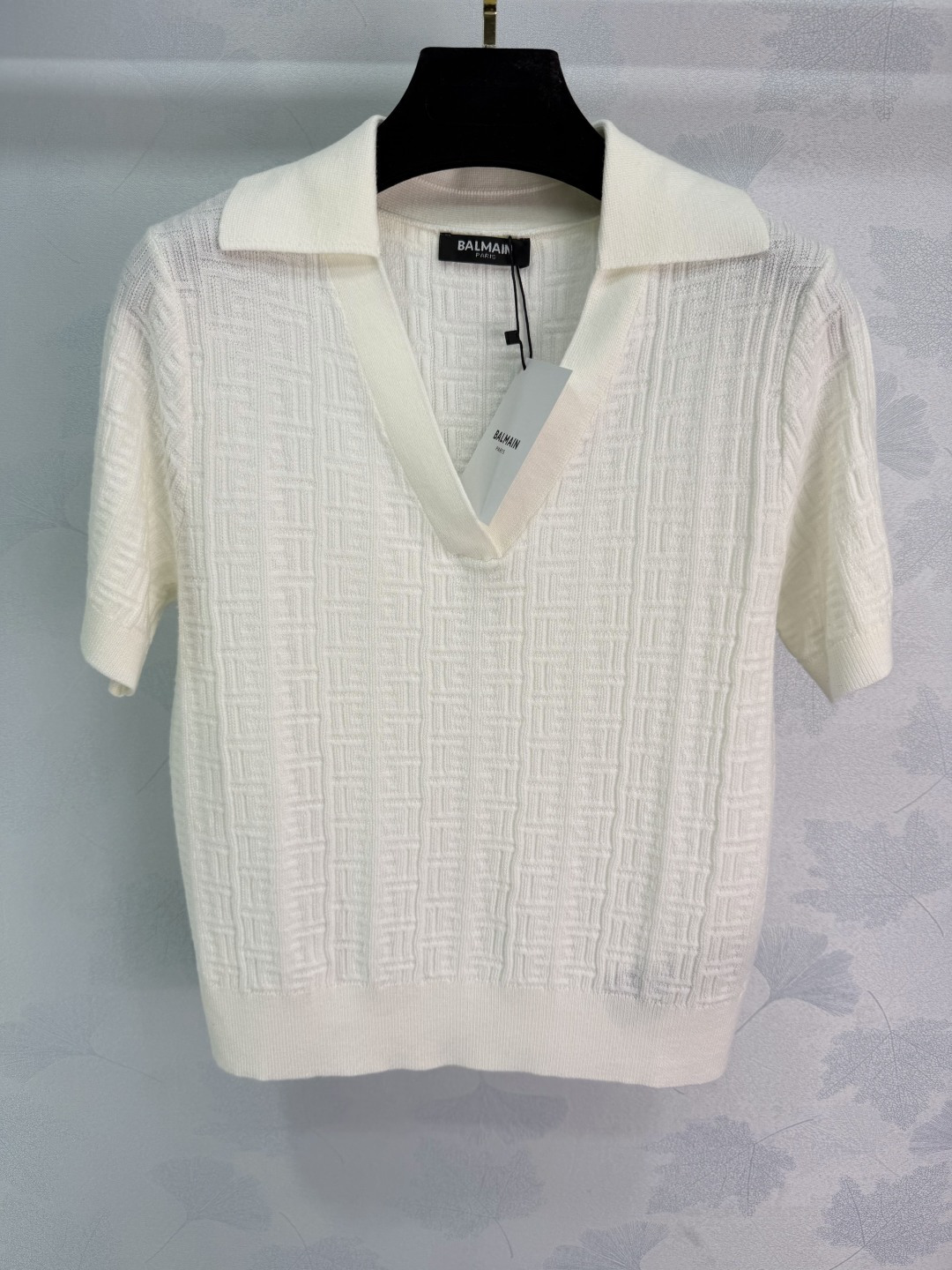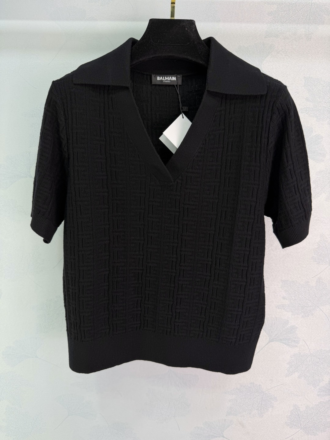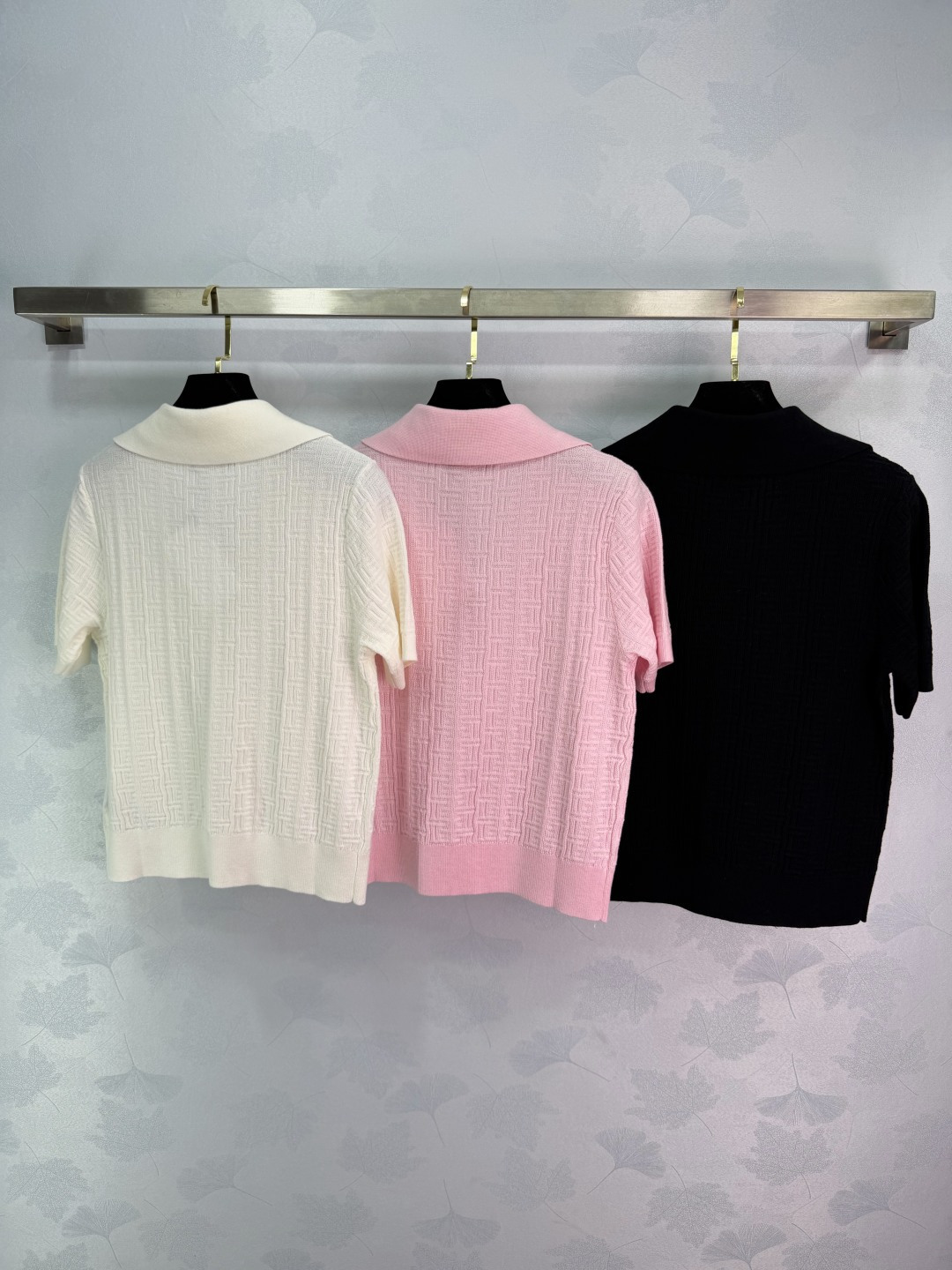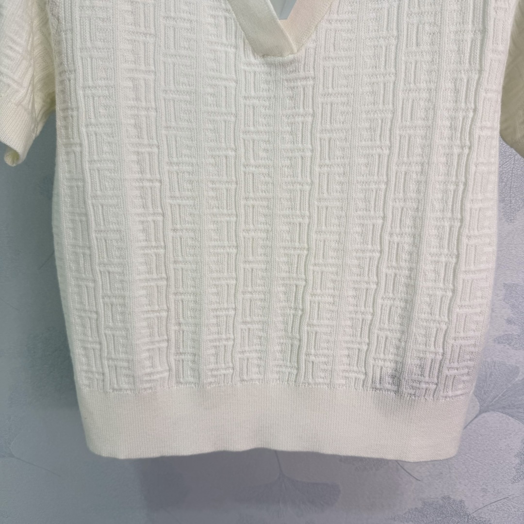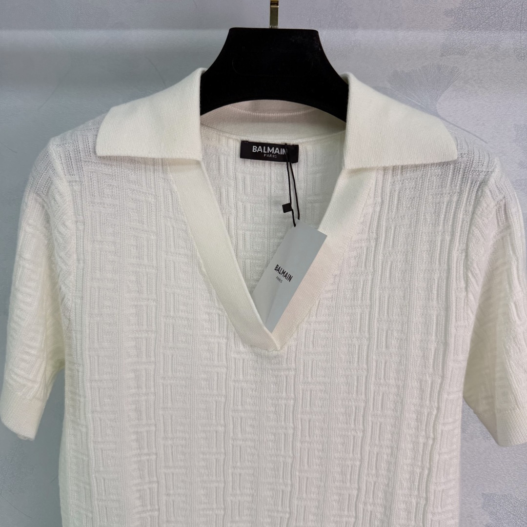 Details: Spring/Summer pink V-neck knitted shirt, Polo collar, short sleeves, 3 colors, 3 sizes. High-end custom, fine workmanship