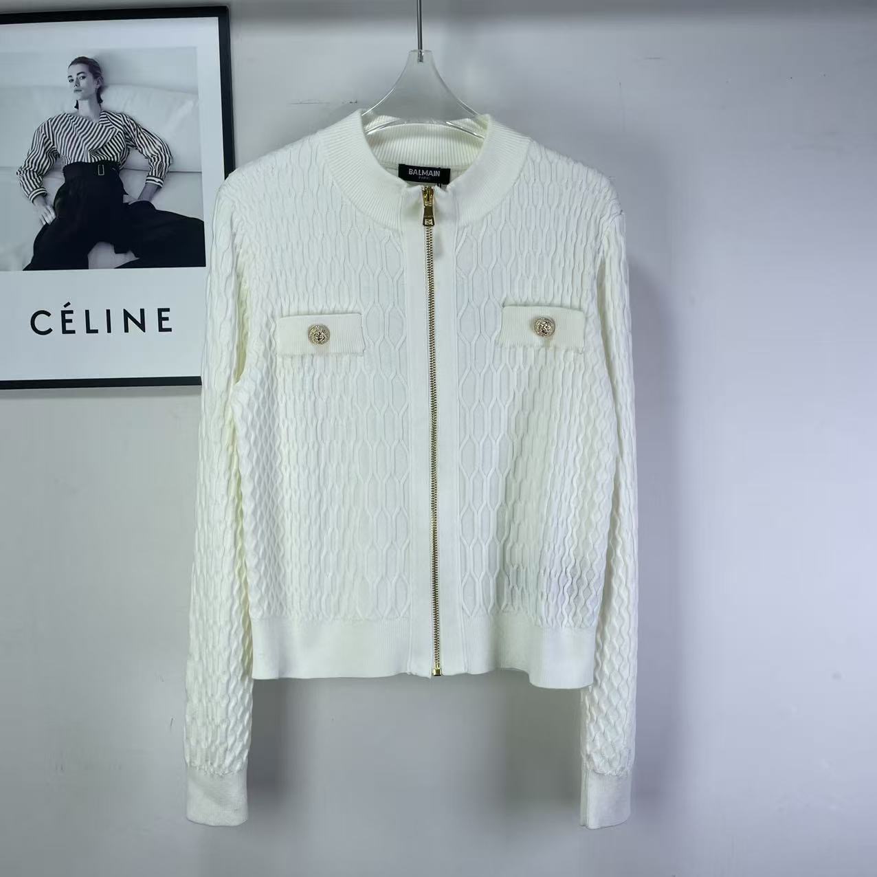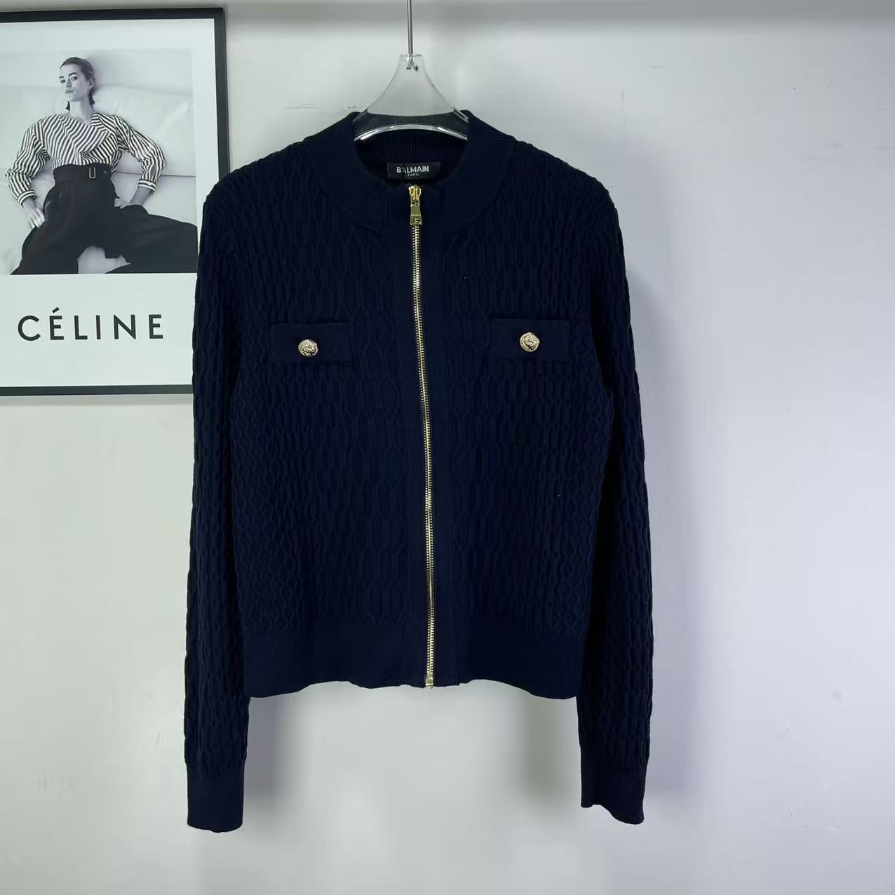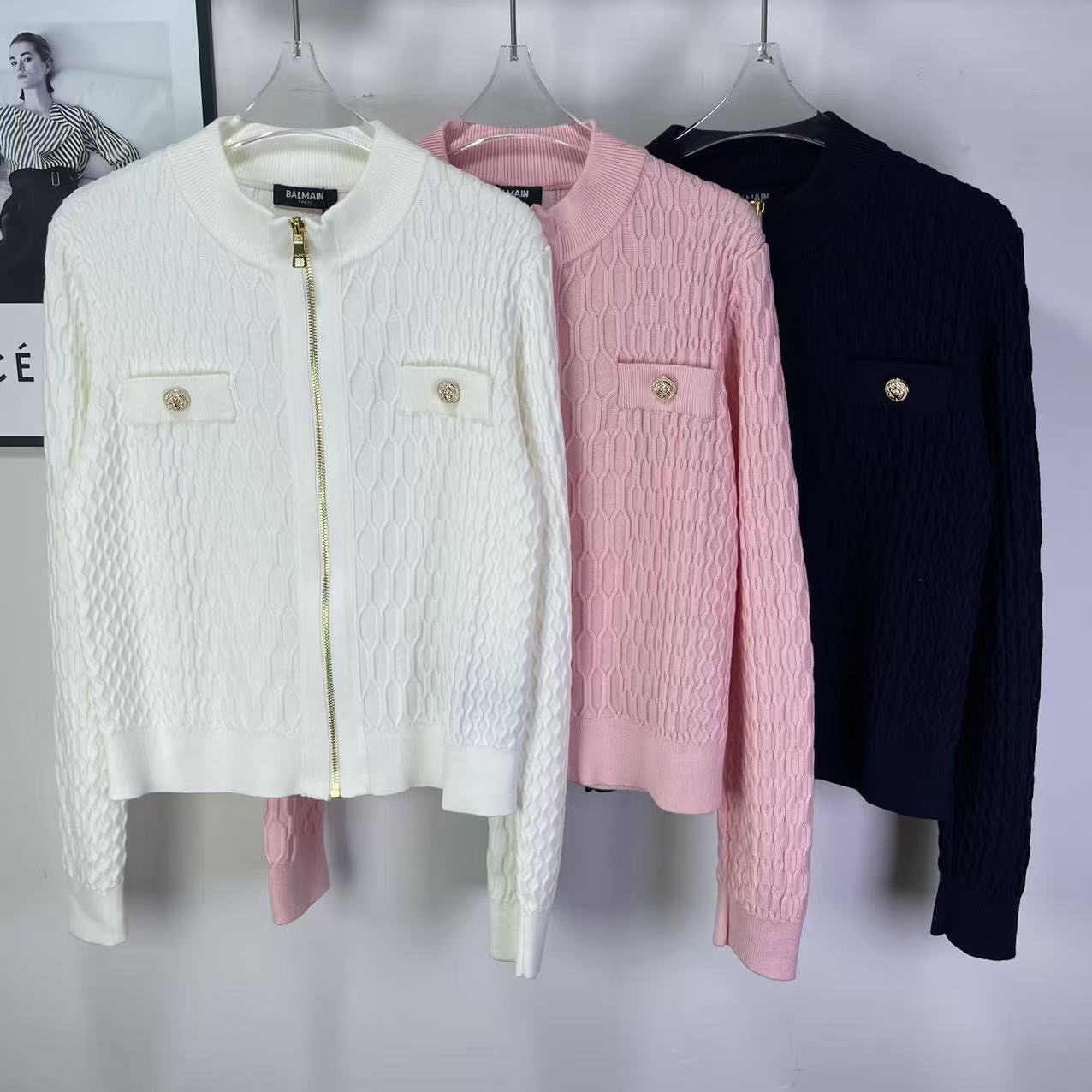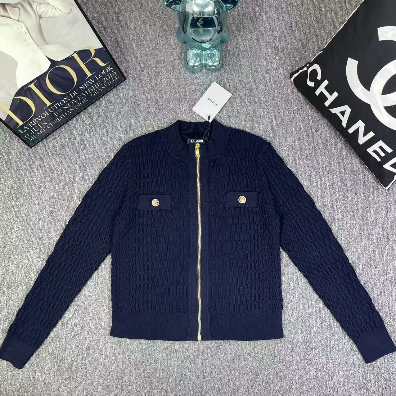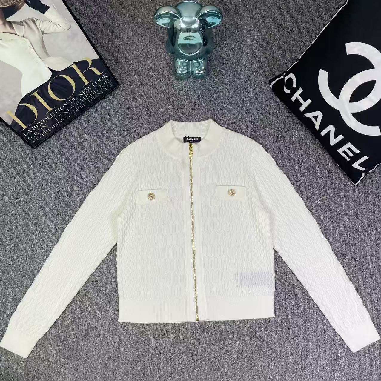 Details: New classic knitted cardigan with lion head buckle in orange, black and white.