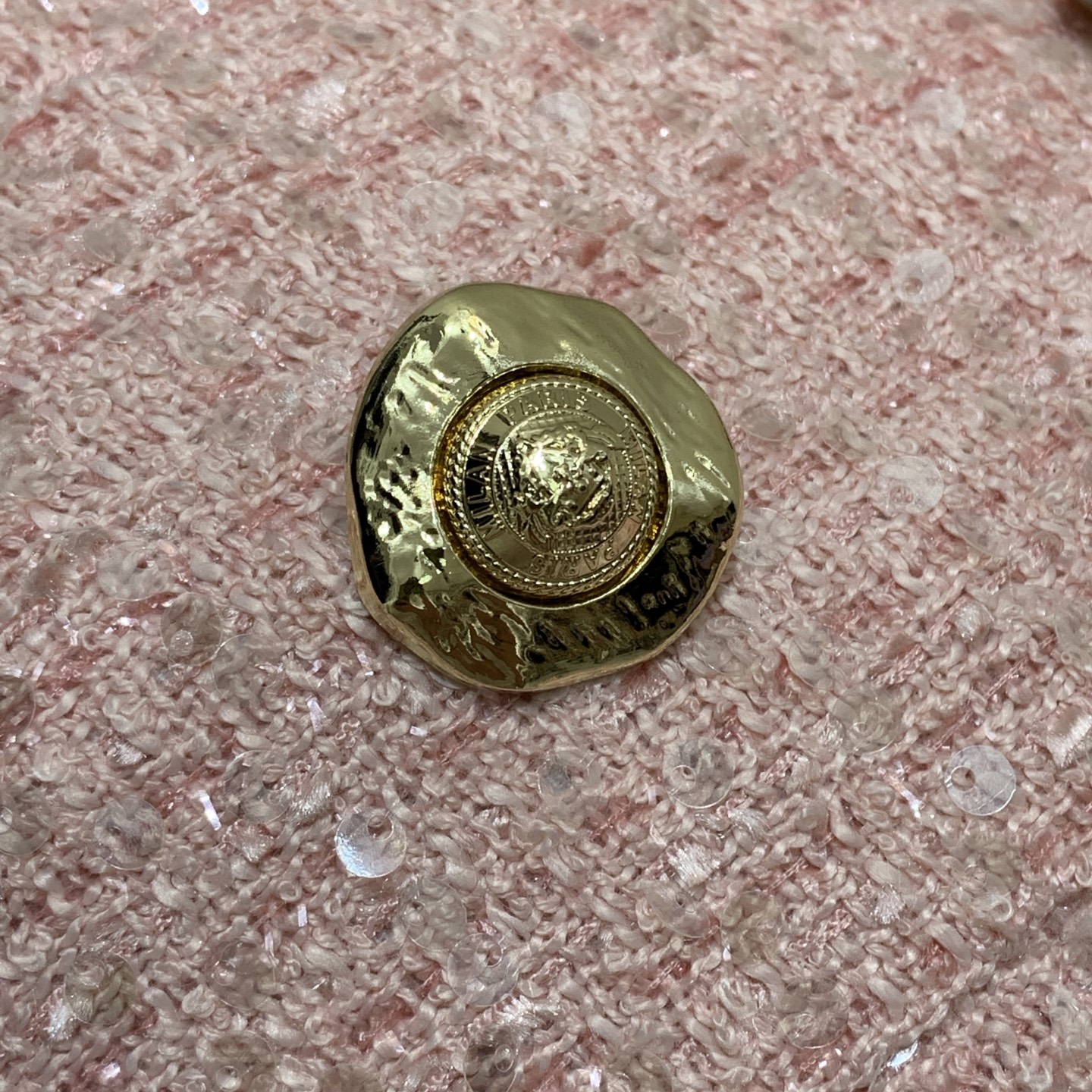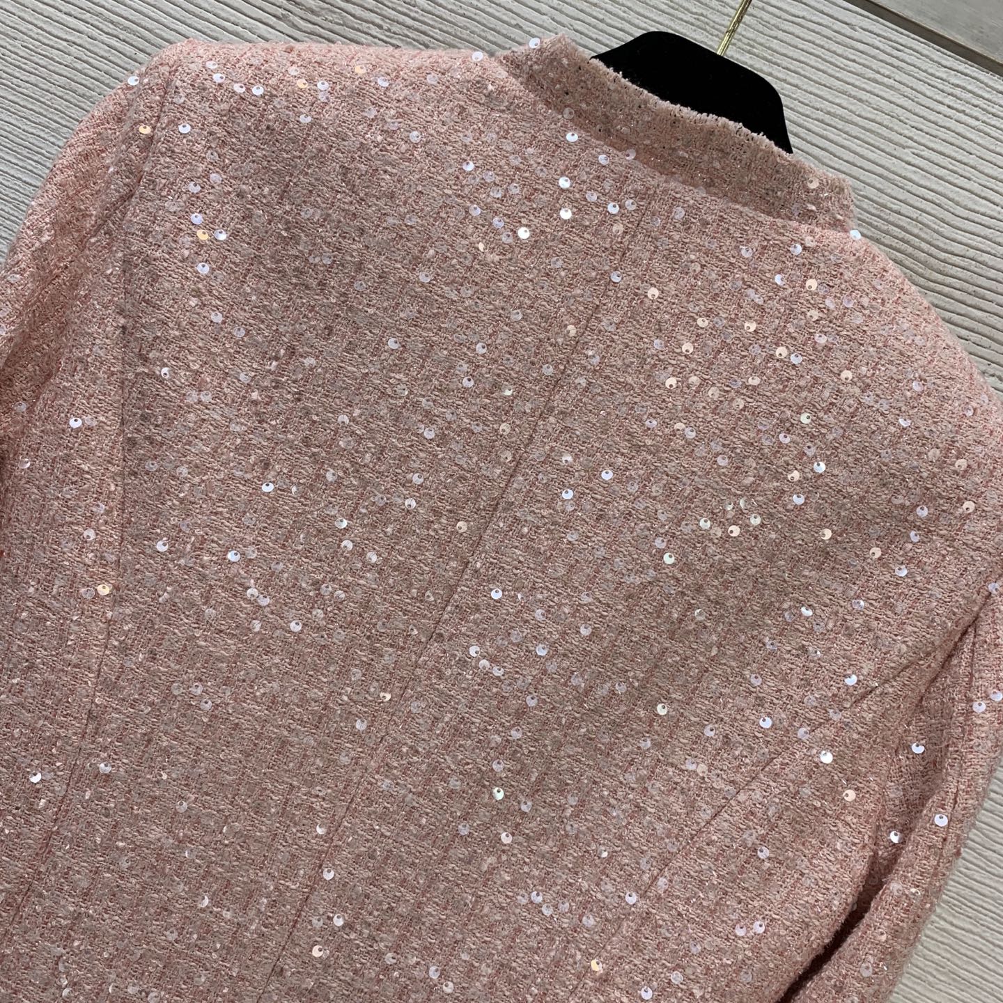 Details: Sparkly sequined, gold double-breasted, slim short-sleeve pink/black coat. High-end customization, fine workmanship