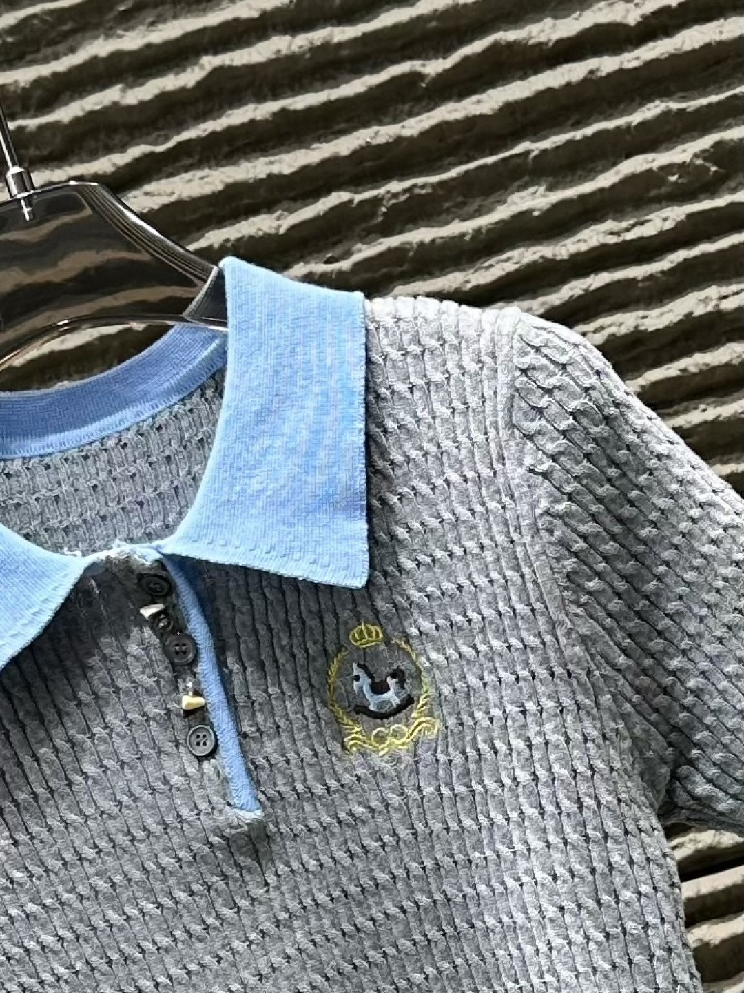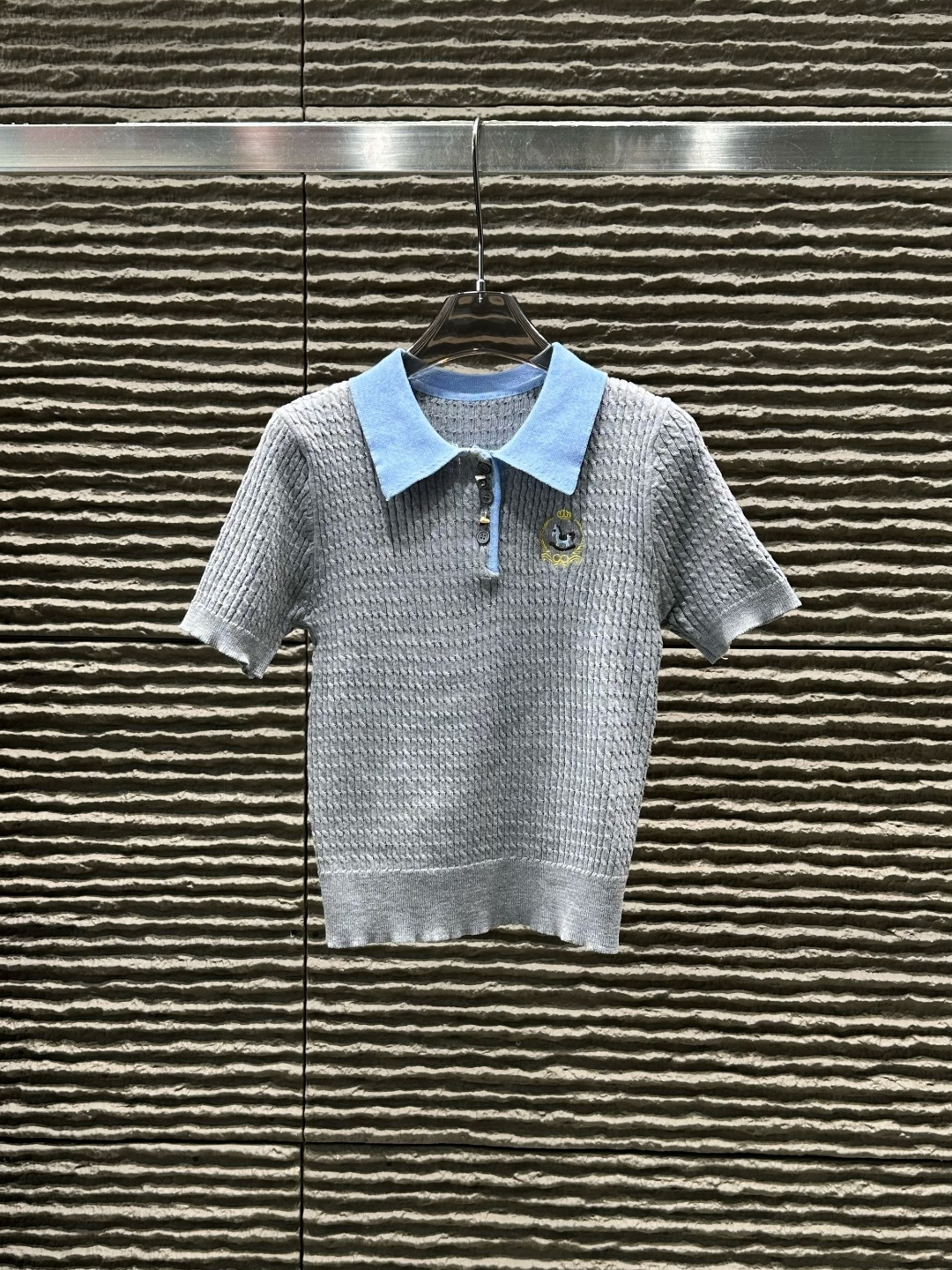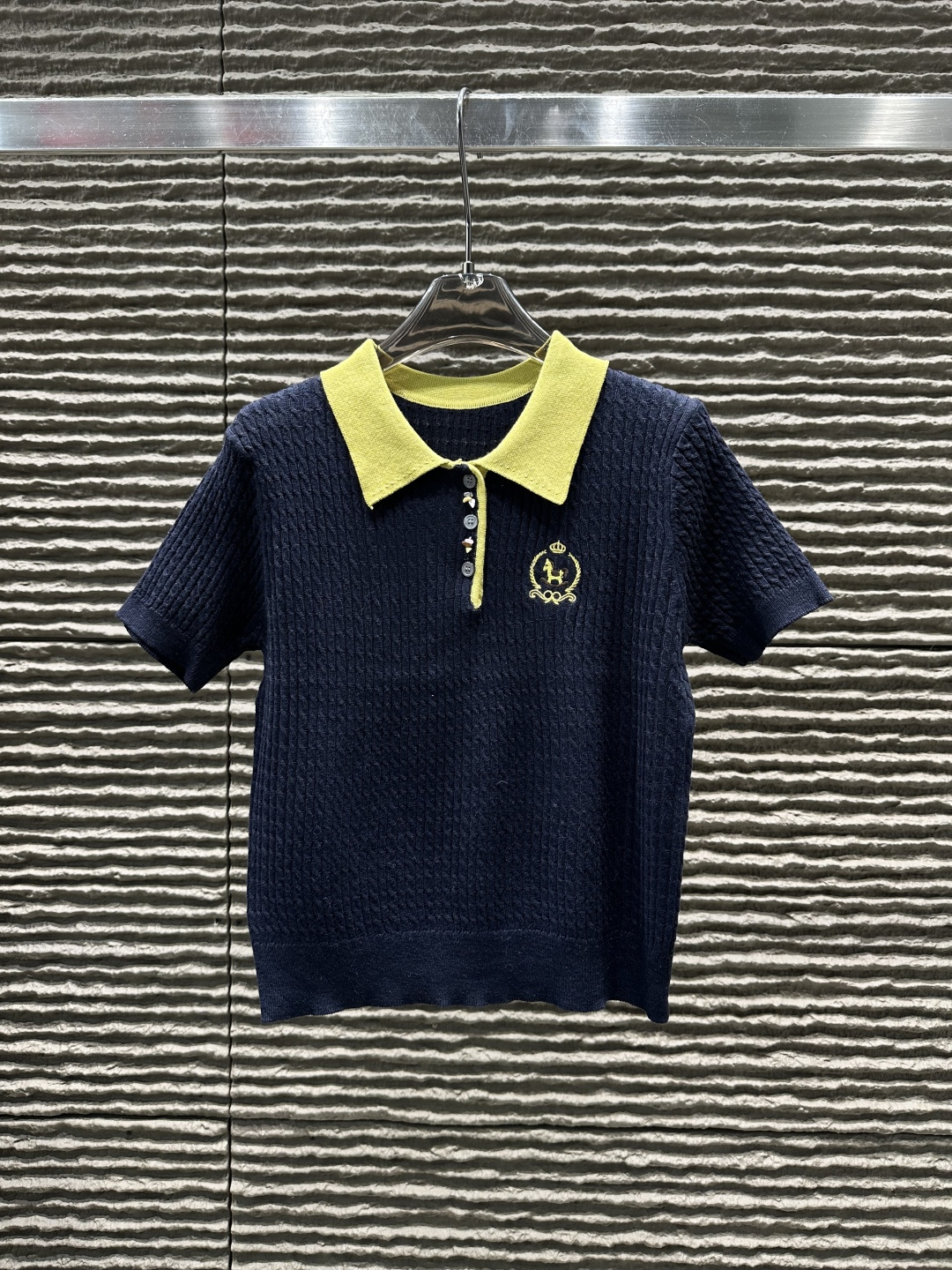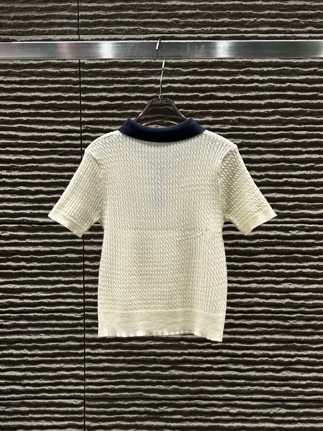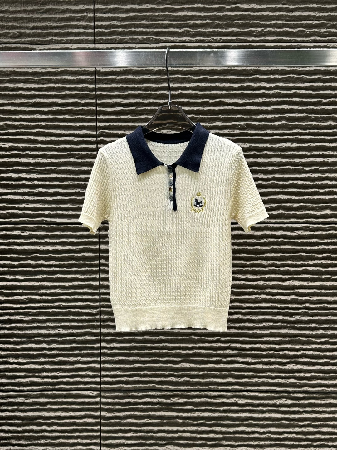 Details: New Contrast-Color Collared Knitted Short-Sleeved Top, High-end Customization, Fine Workmanship