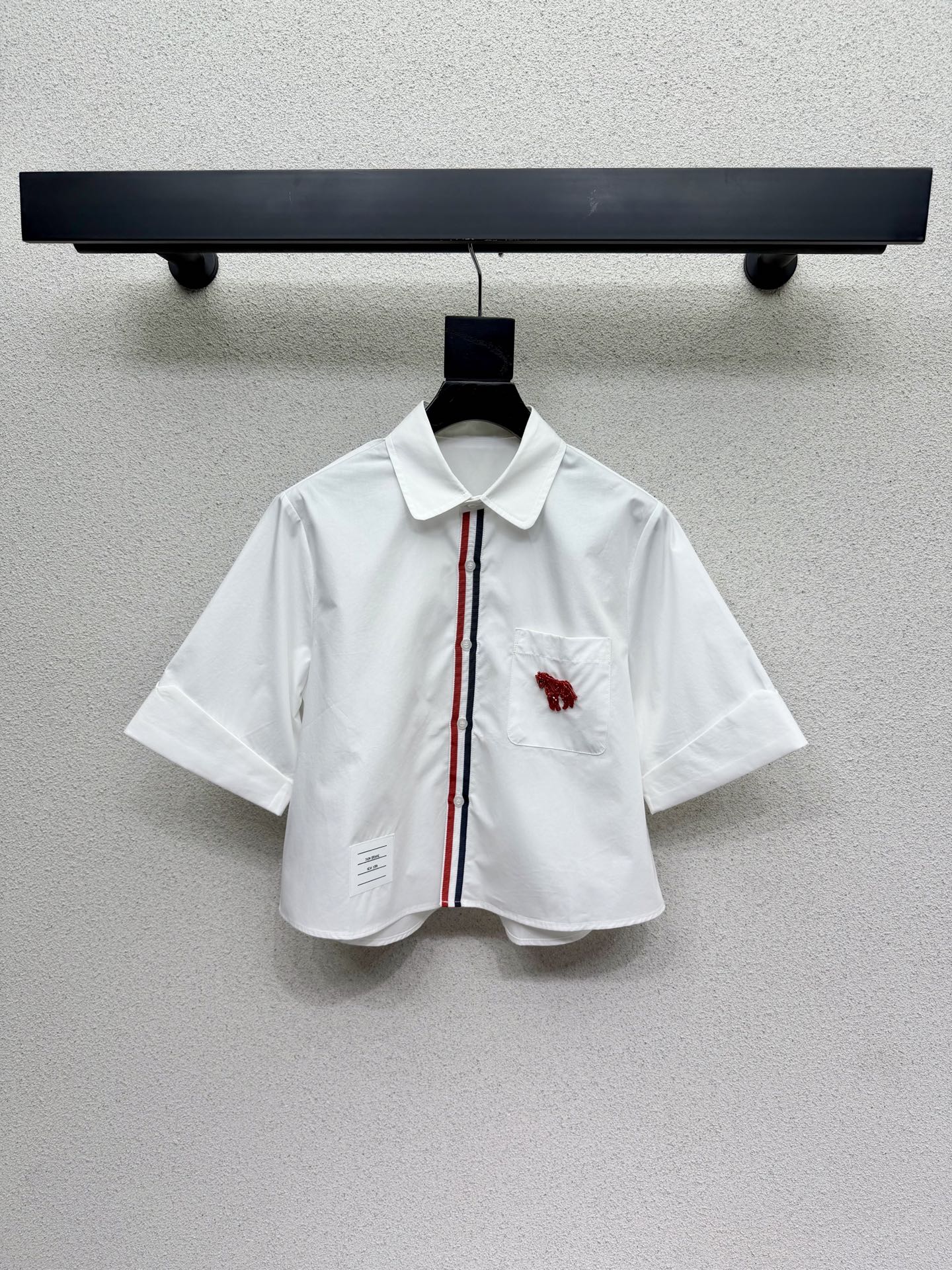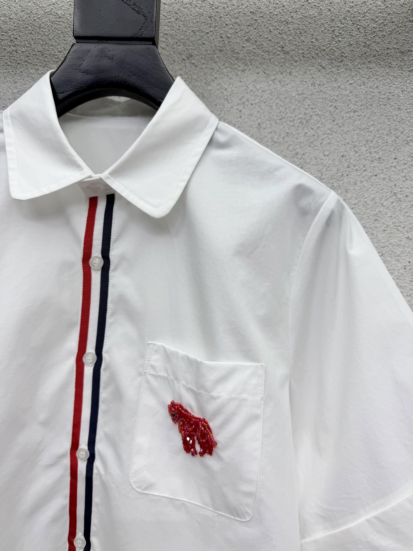 Details: Beaded short-sleeved shirt, smooth fabric, classic style, high-quality, sizes S, M, L