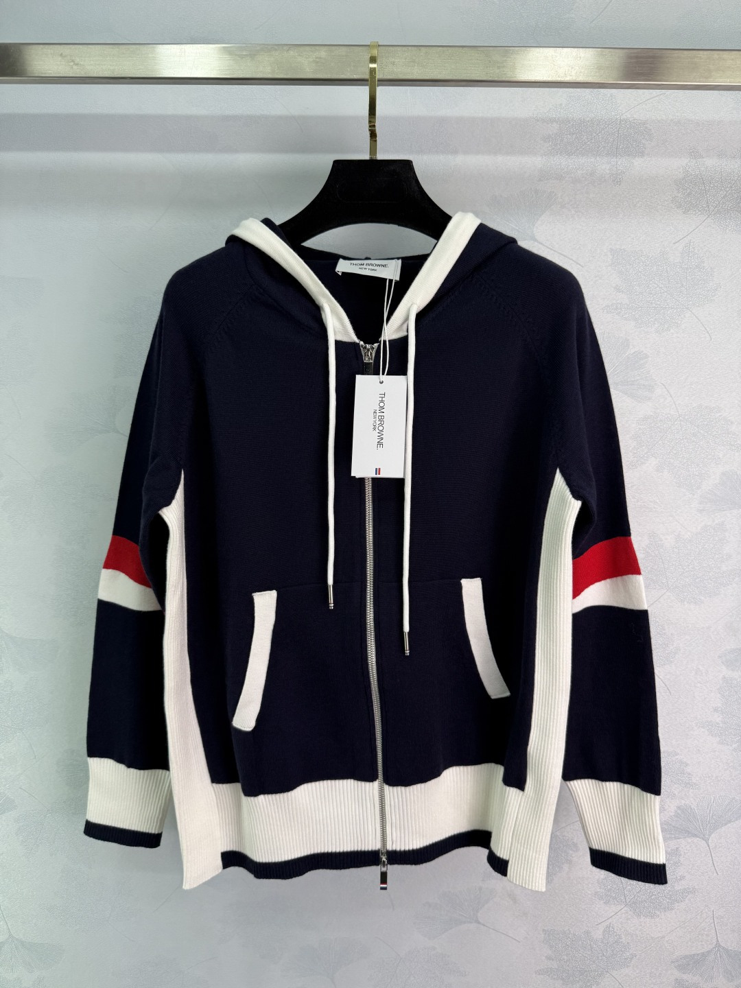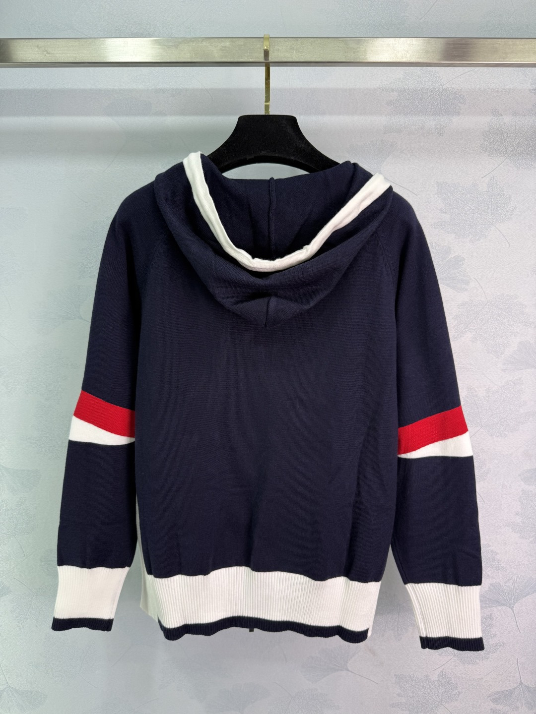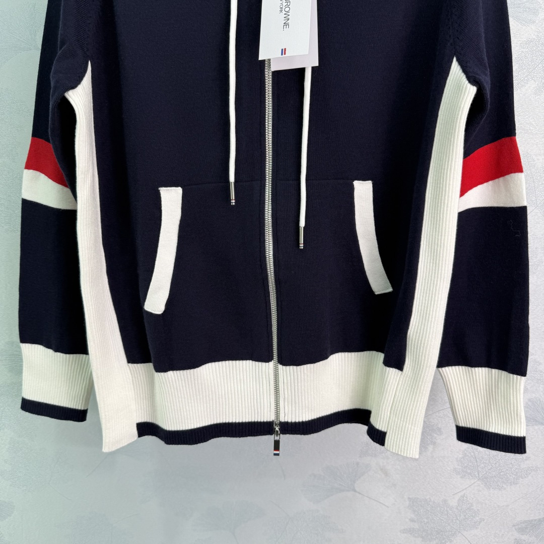 Details: Early autumn color-blocked hooded coat, silver zipper, soft and breathable.