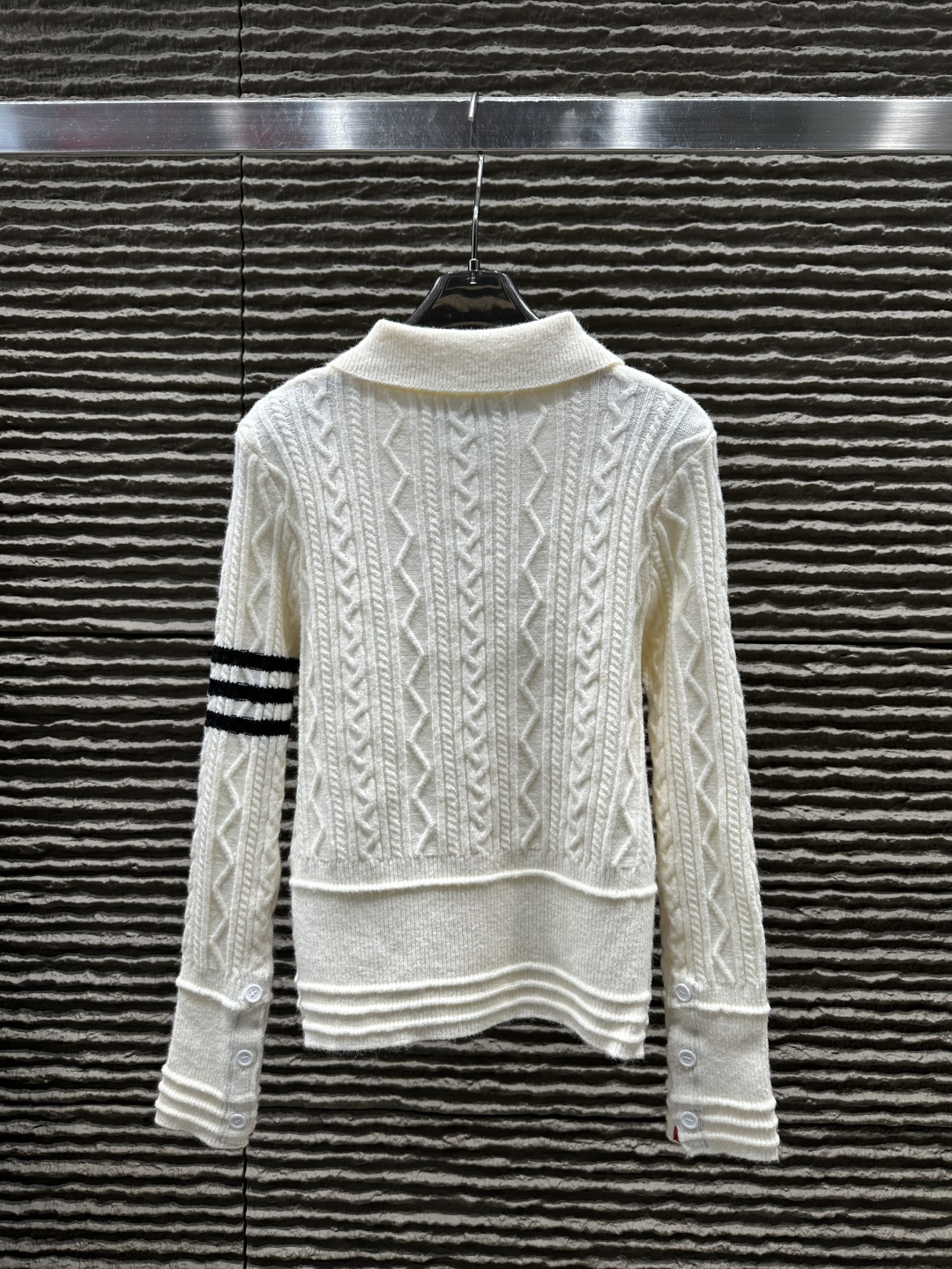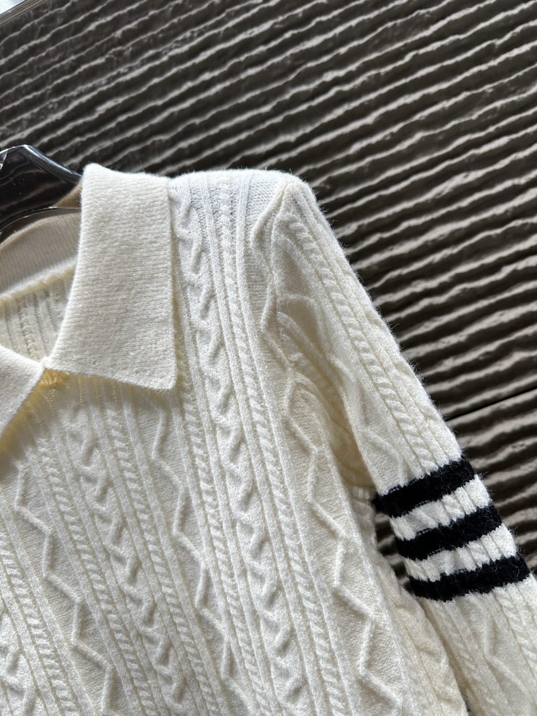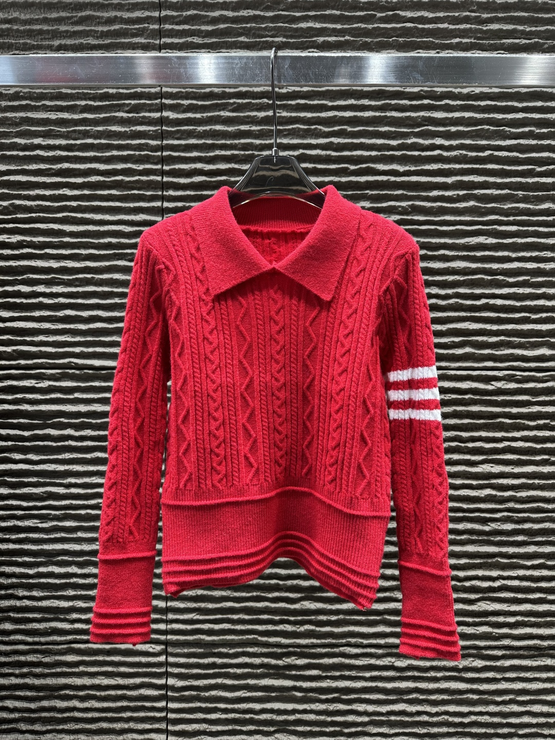 Details: New knitted long - sleeve tops featuring twisted collars. High - end customization with fine workmanship