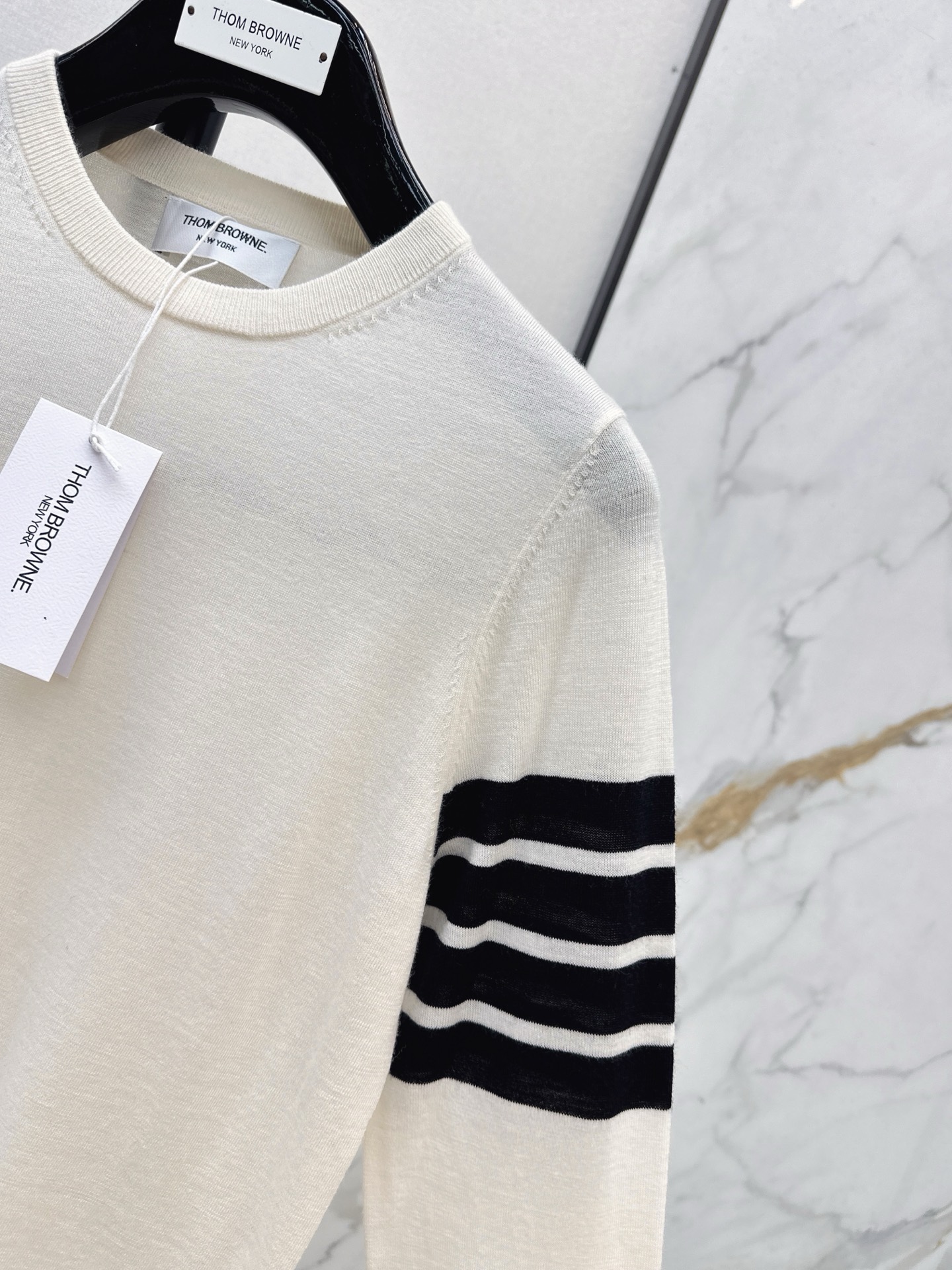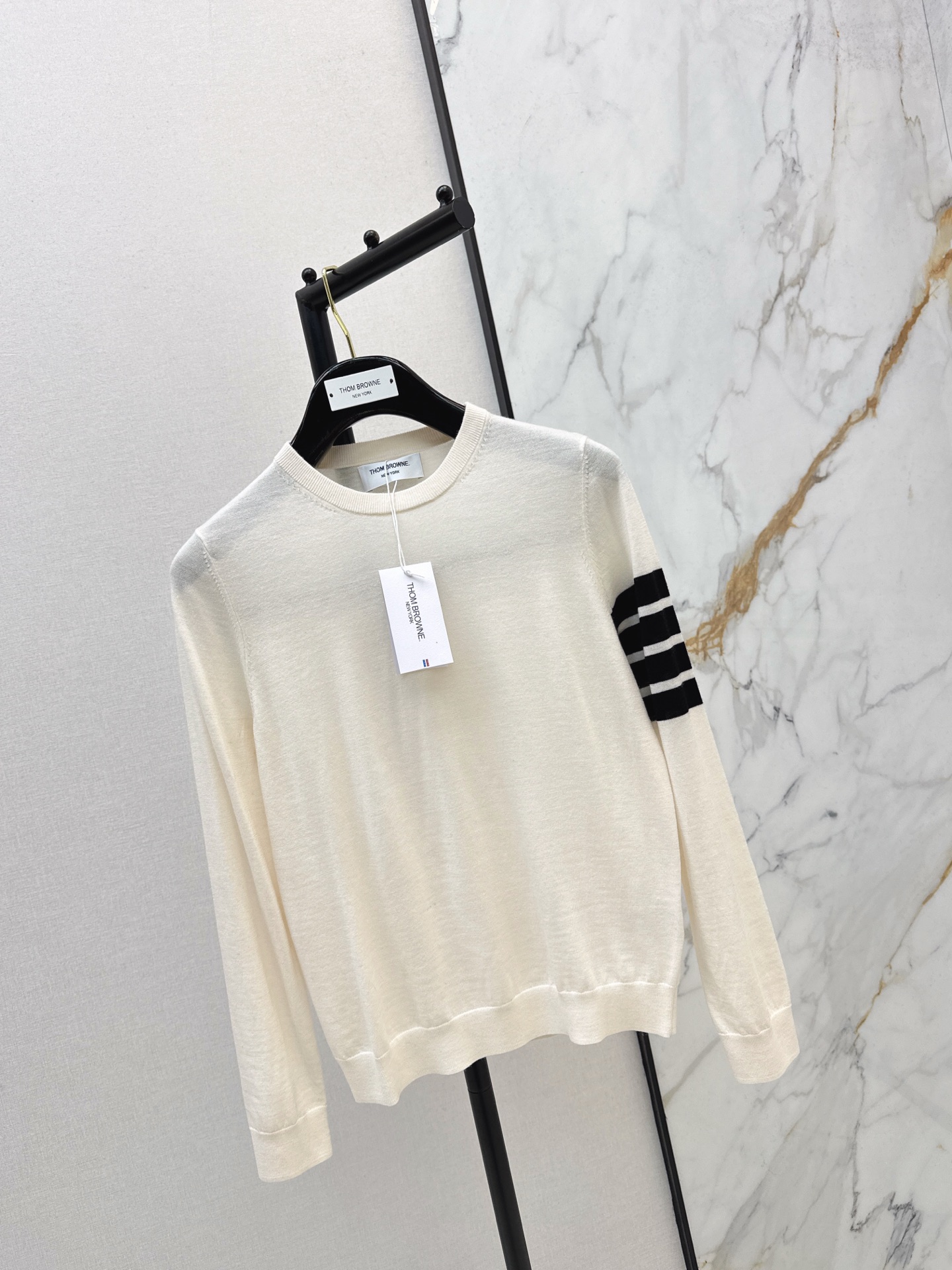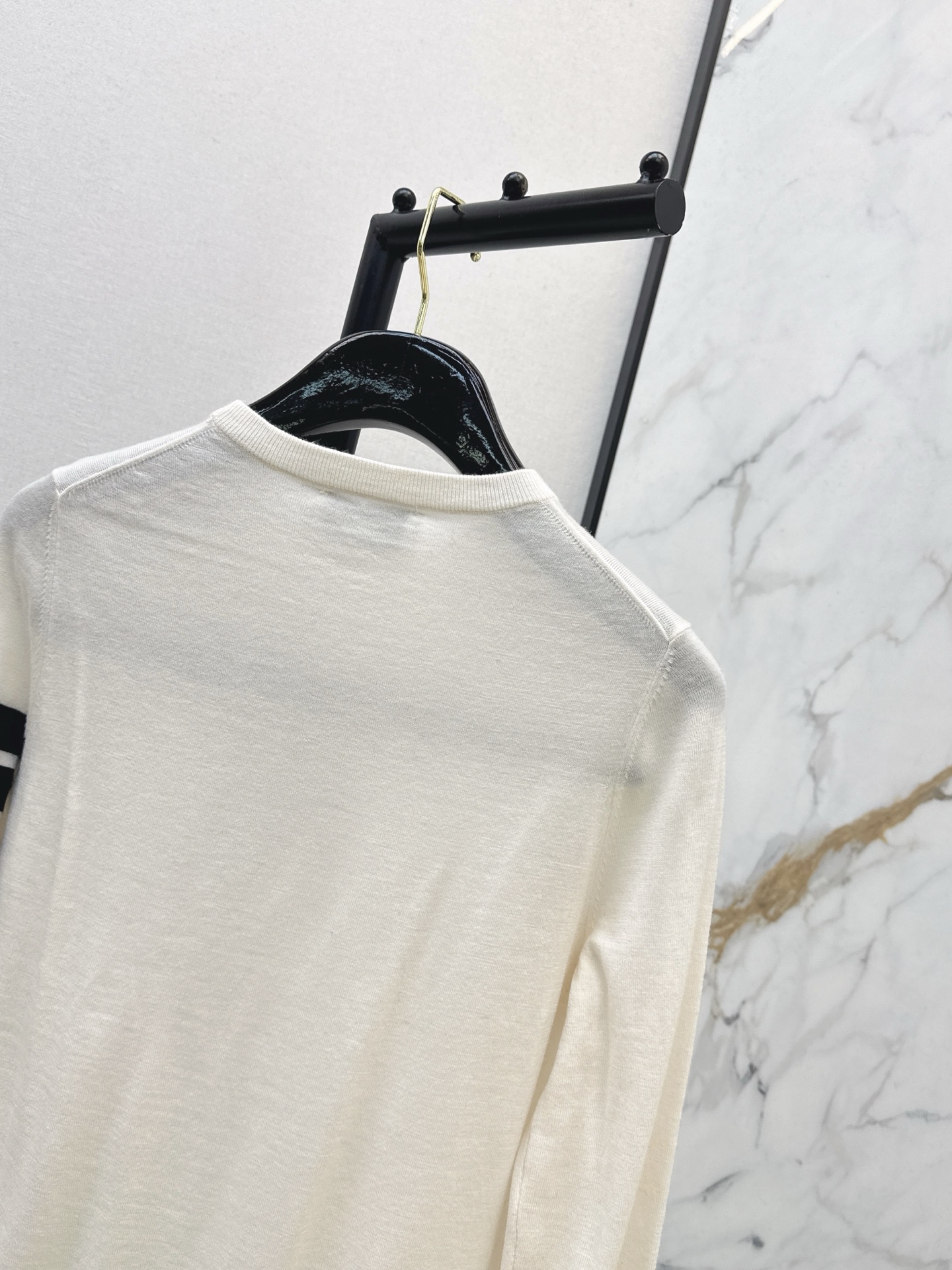 Details: Early spring classic color-blocked college-style sweater with three-color striped sleeves, available in 3 colors. High-end customization, fine workmanship