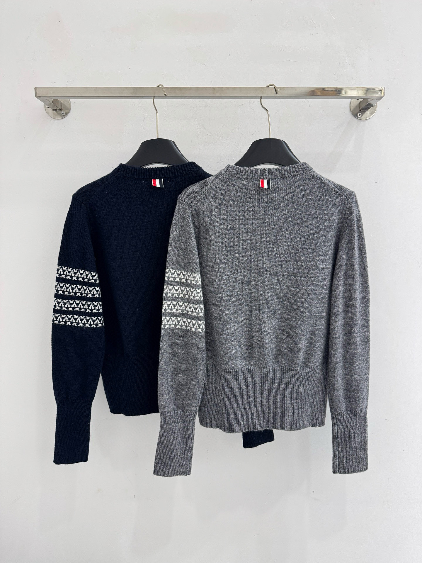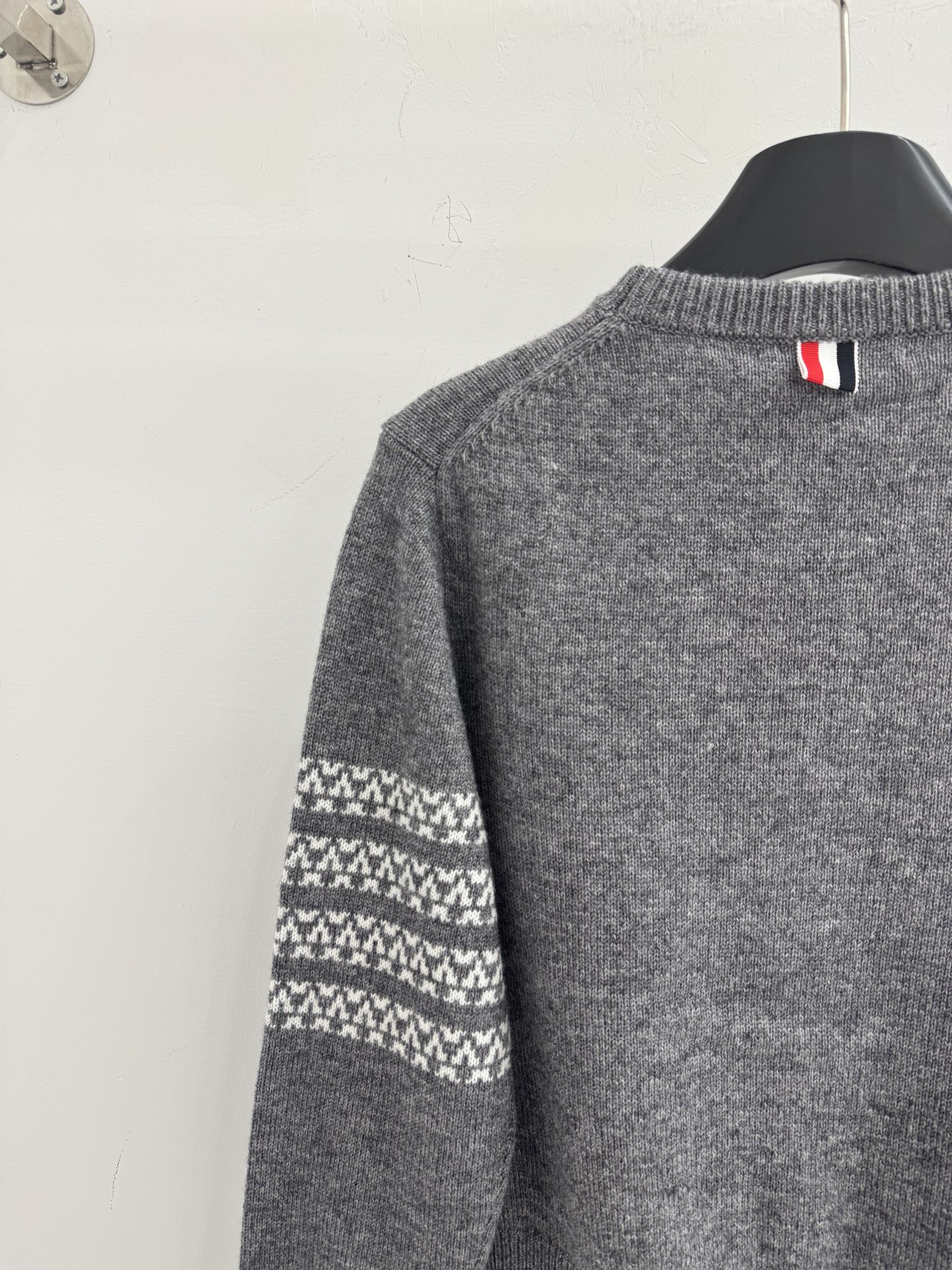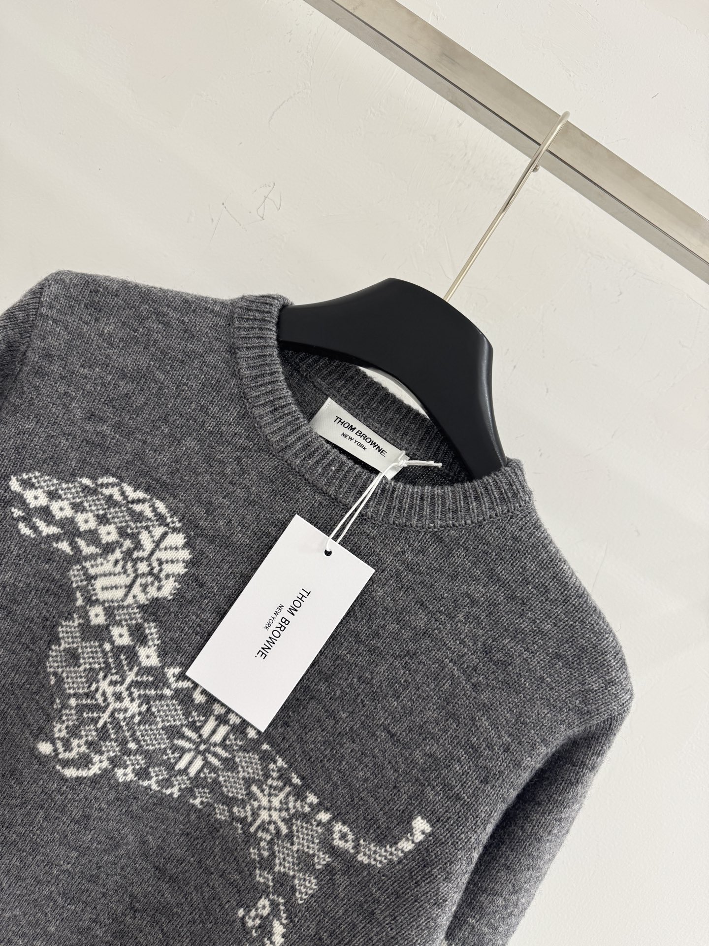 Details: Autumn and winter puppy jacquard round - neck knitted sweater with white stripe details on the left sleeve. High - end customization, fine workmanship