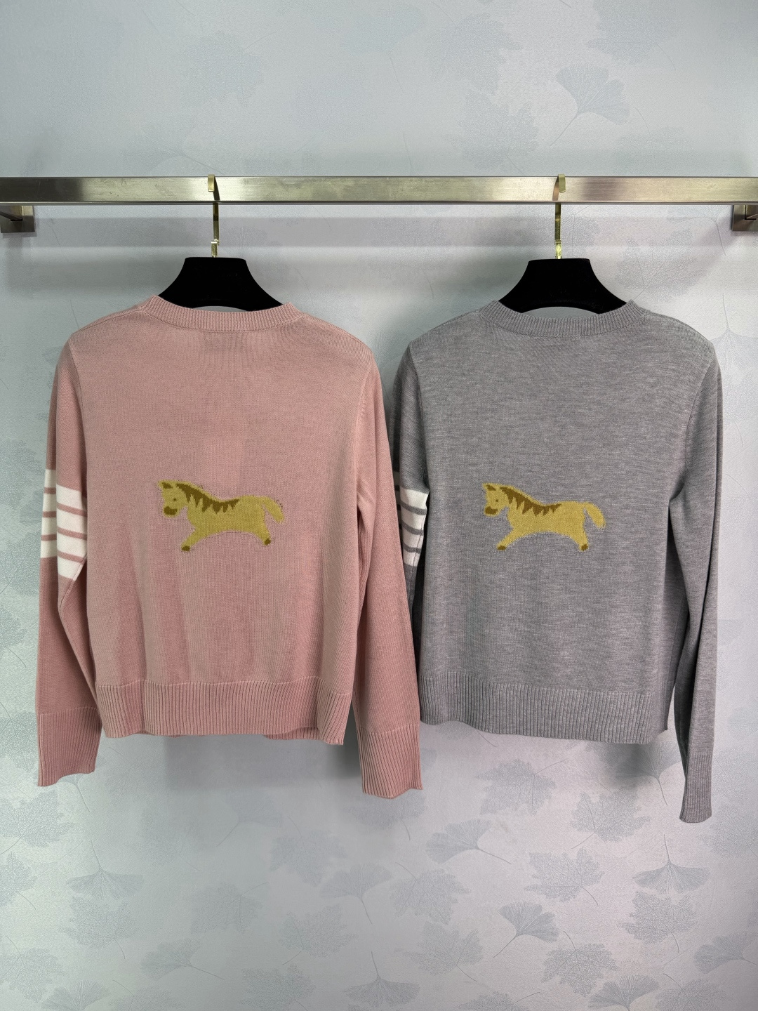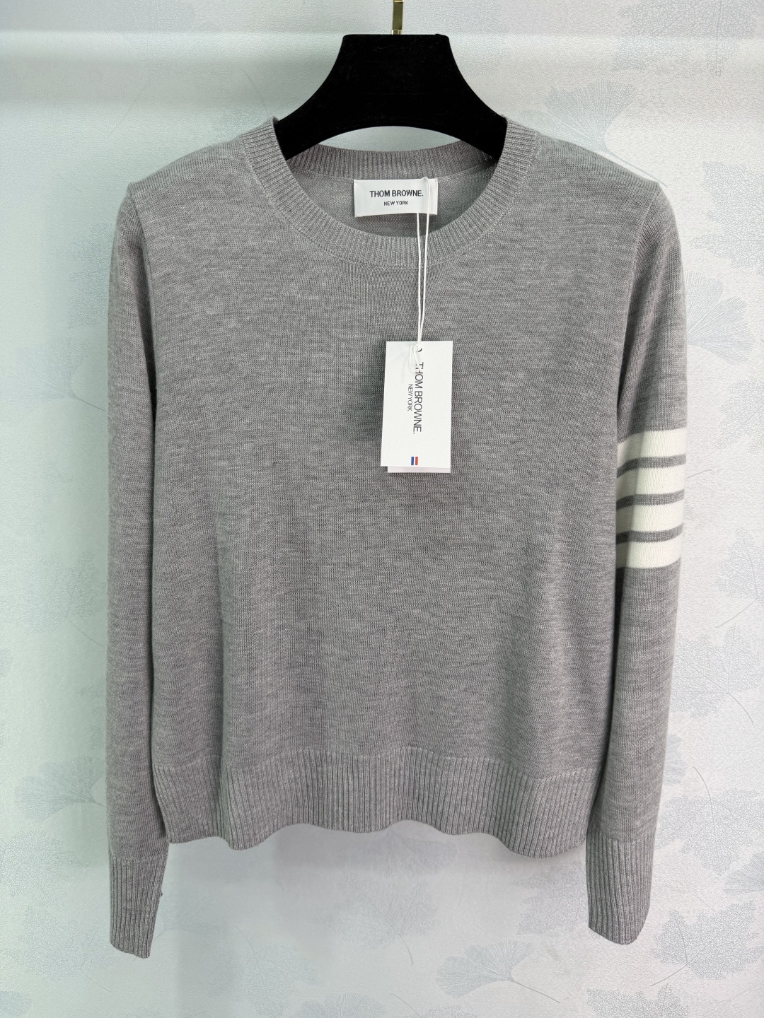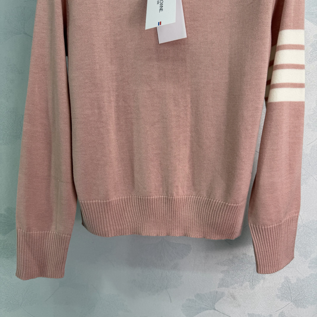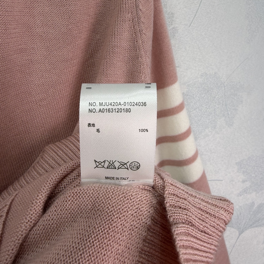 Details: Early spring knitted long-sleeved top with four stripes, made of wool, collegiate style, versatile for various looks.