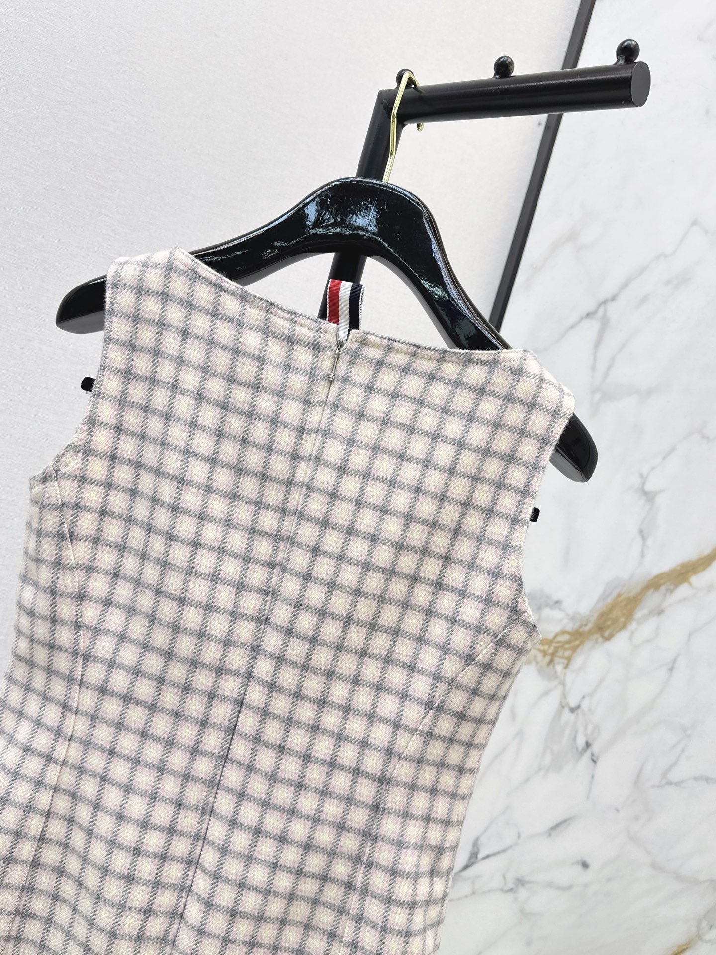 Details: Autumn and winter pink plaid tweed vest dress, elegant and flattering