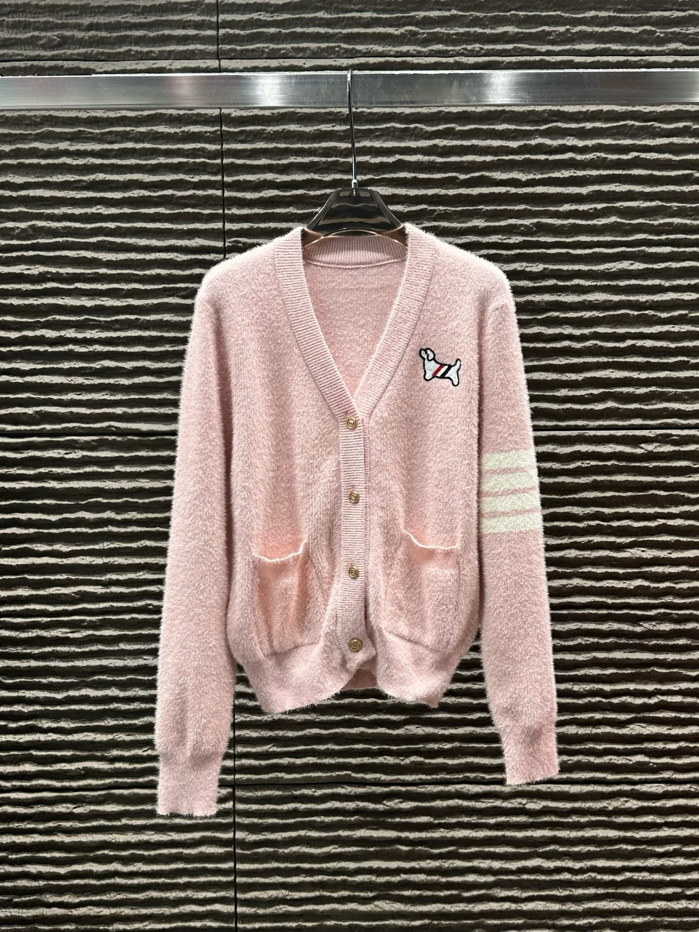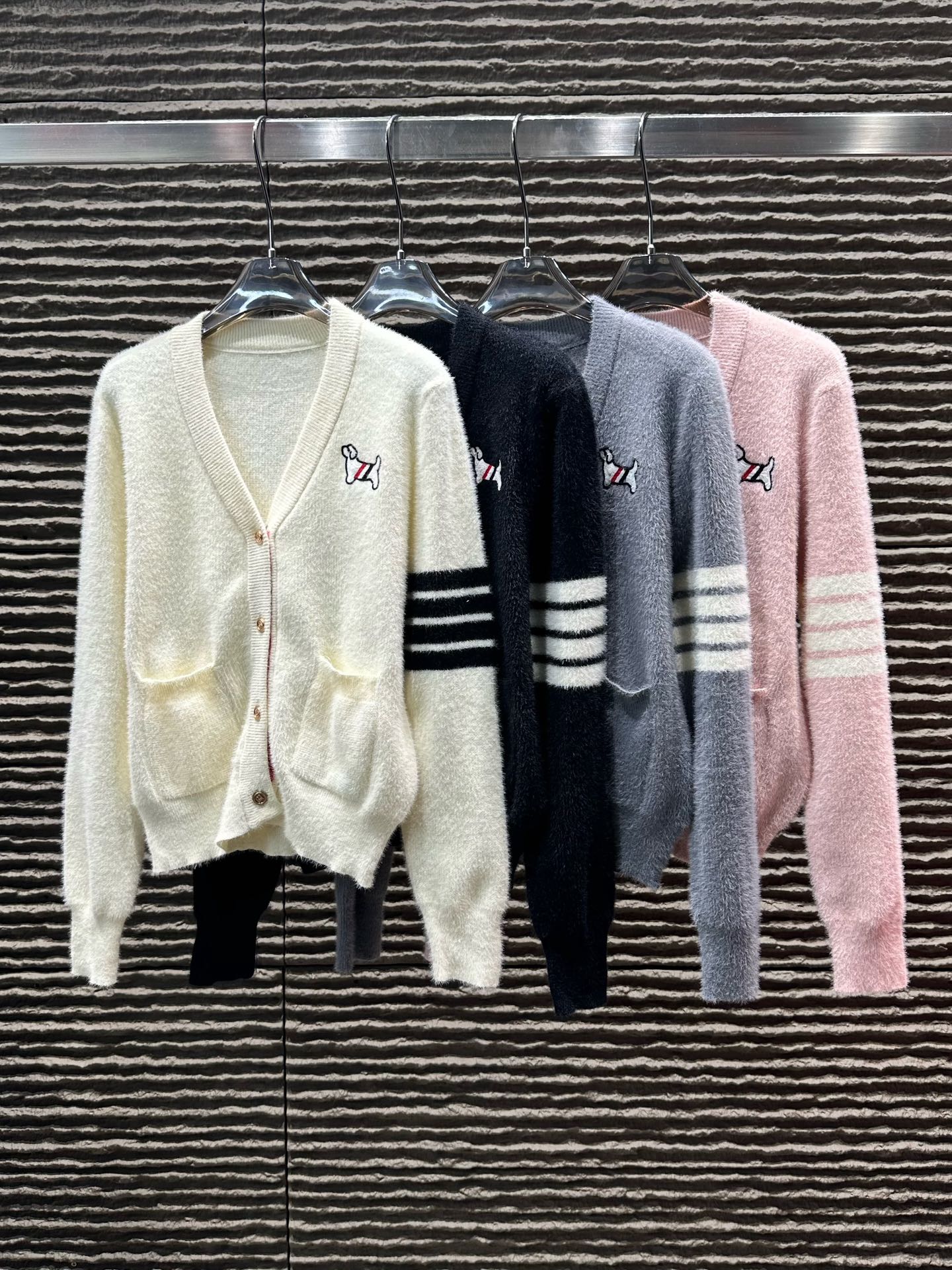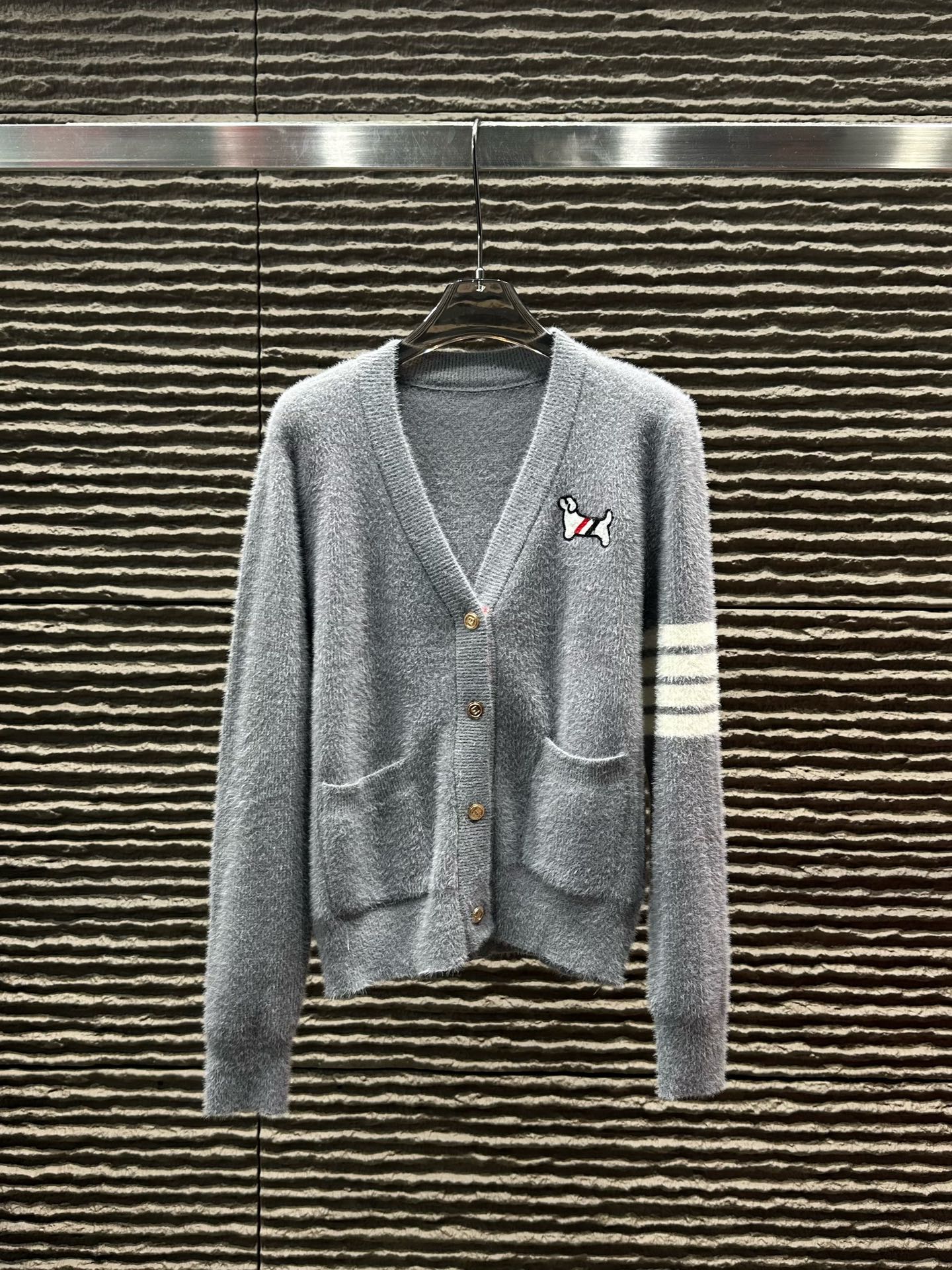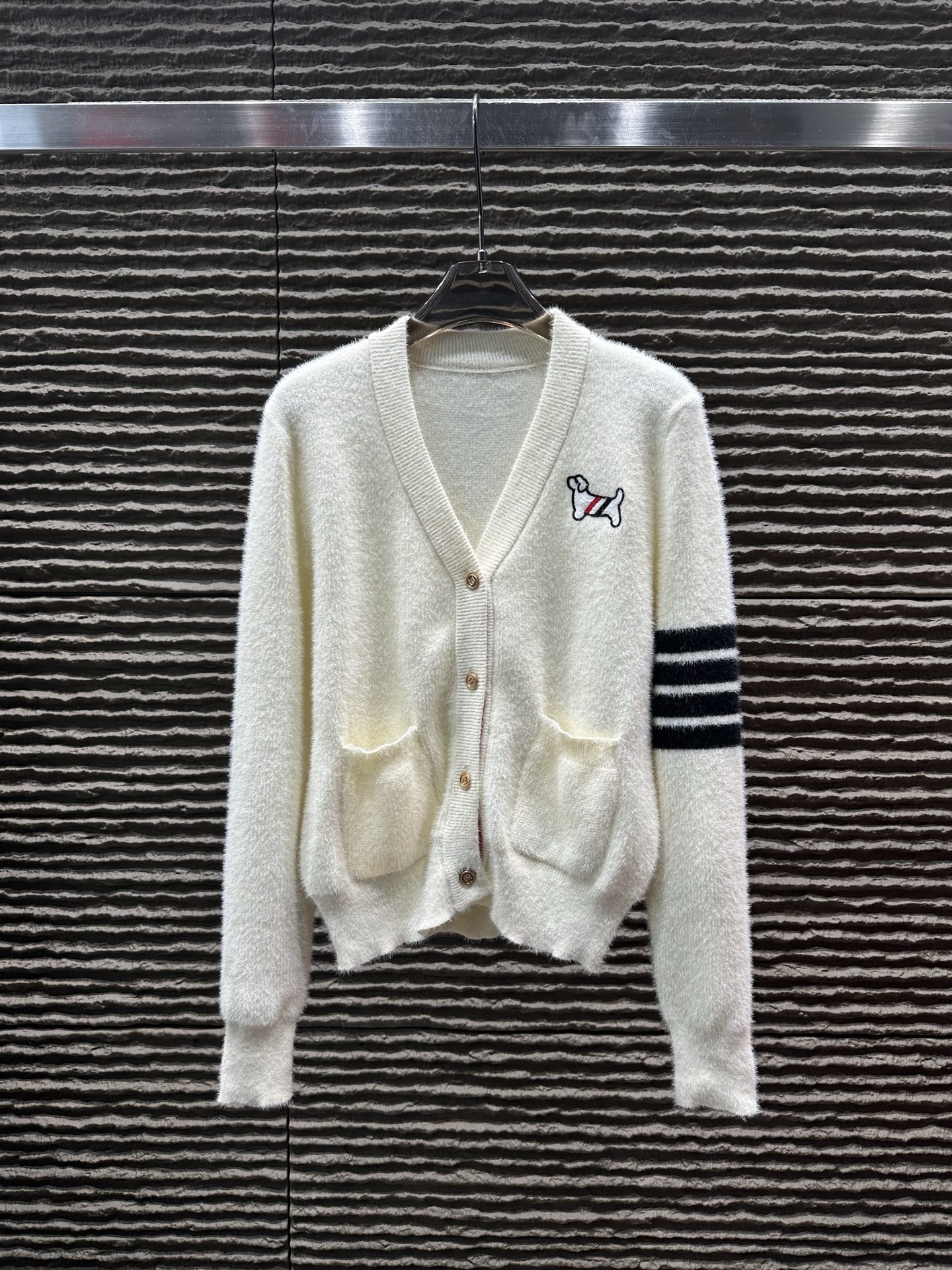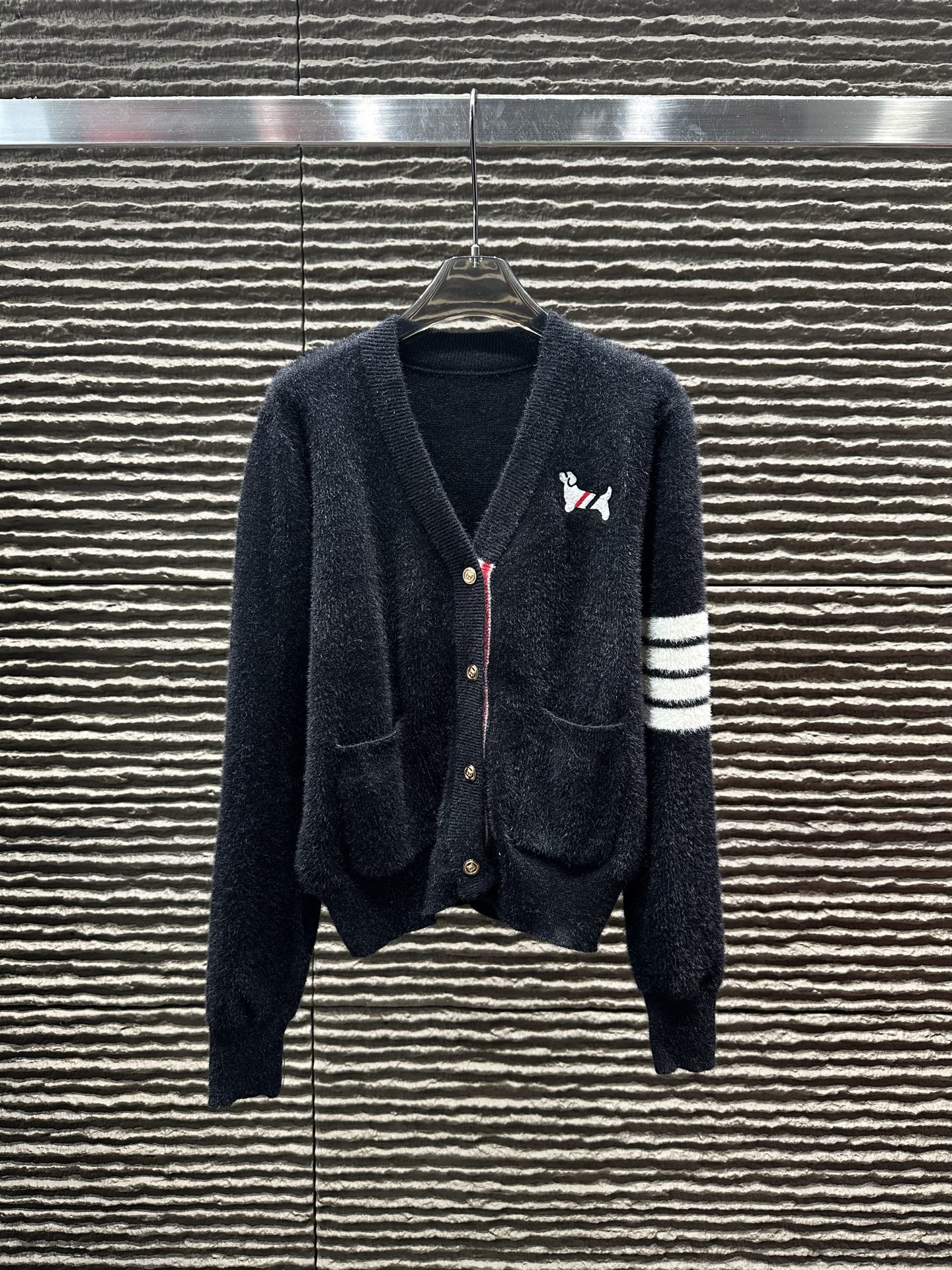 Details: New arrival, cashmere college-style cardigan, high-end customization, fine details.