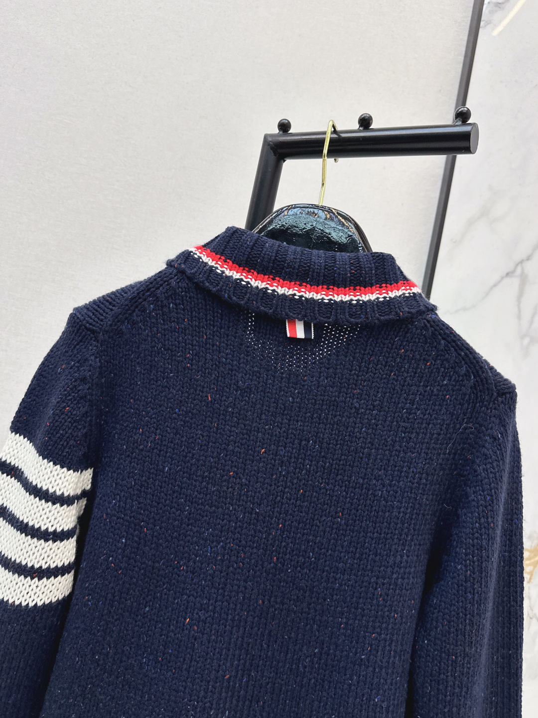 Details: Spring knitted cardigan with color-blocked ribbons, cashmere-wool blend, ageless and figure-flattering