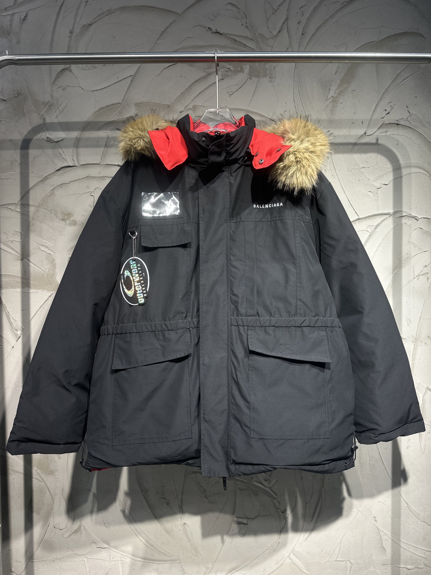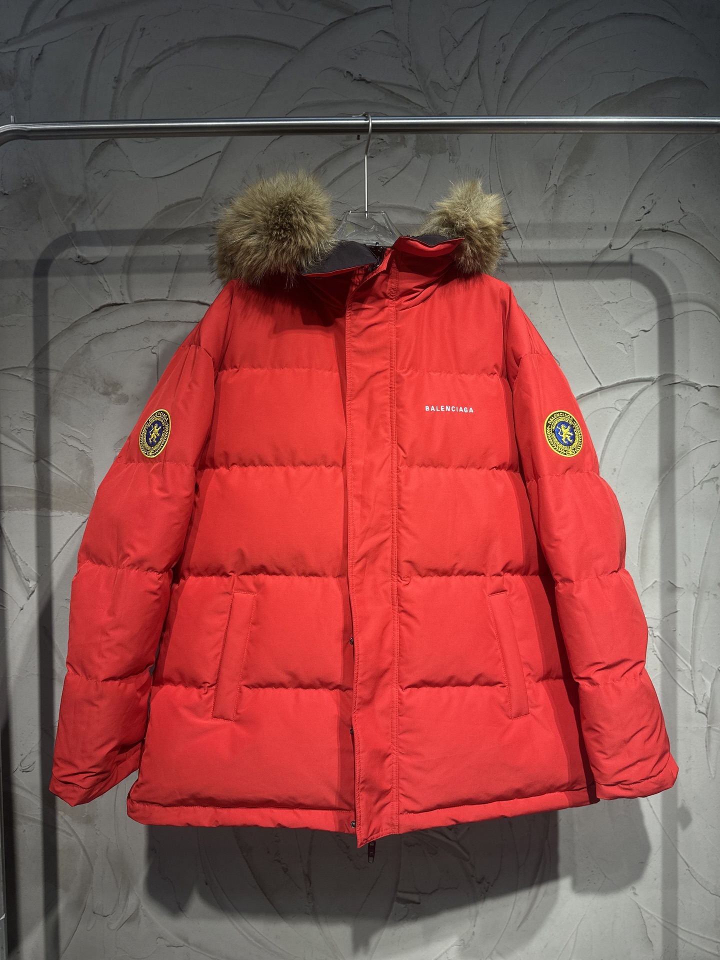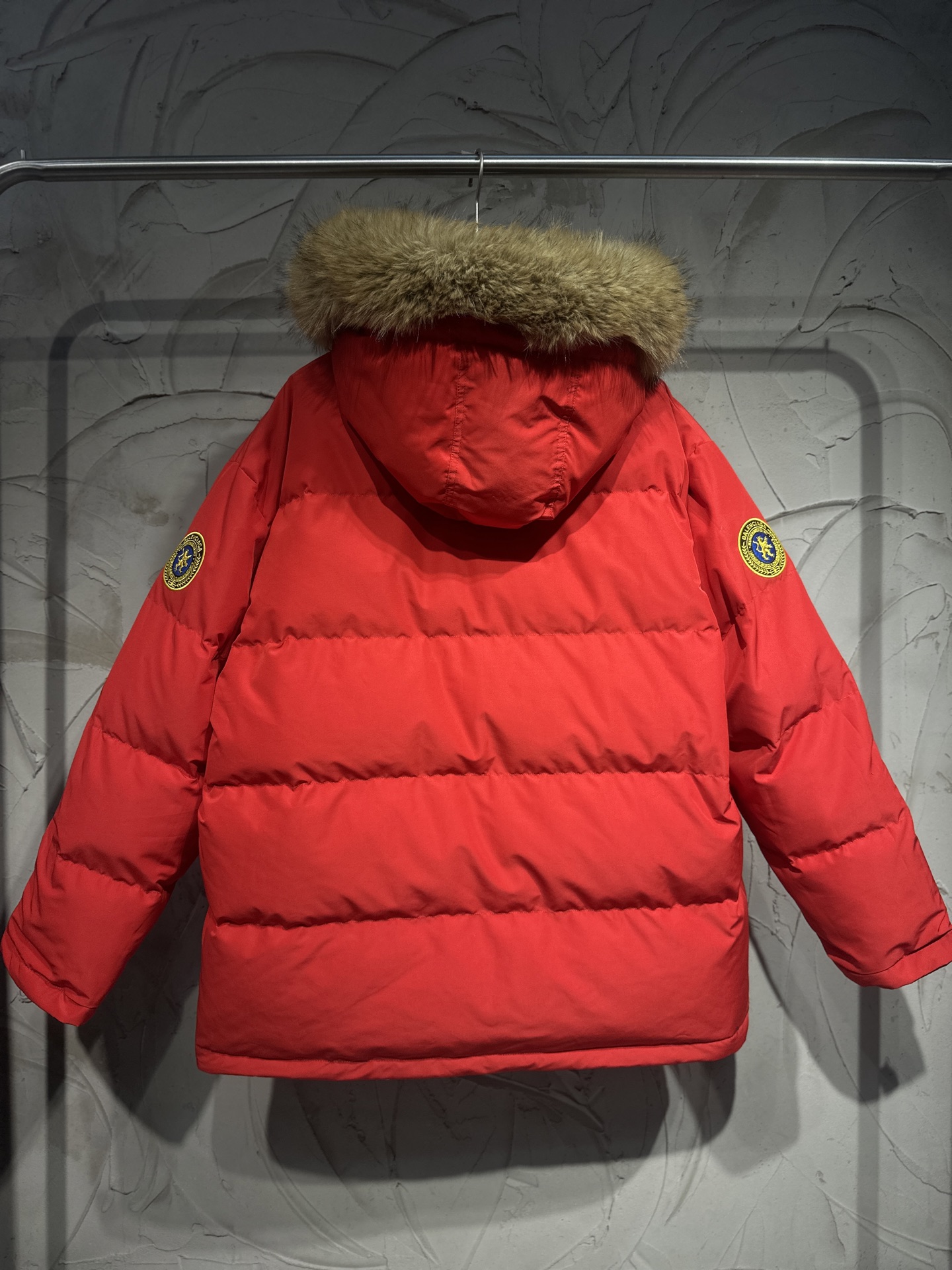 Details: FW Badge Big Fur Collar Reversible Down Jacket, Short Style, Trendy, High-end Custom