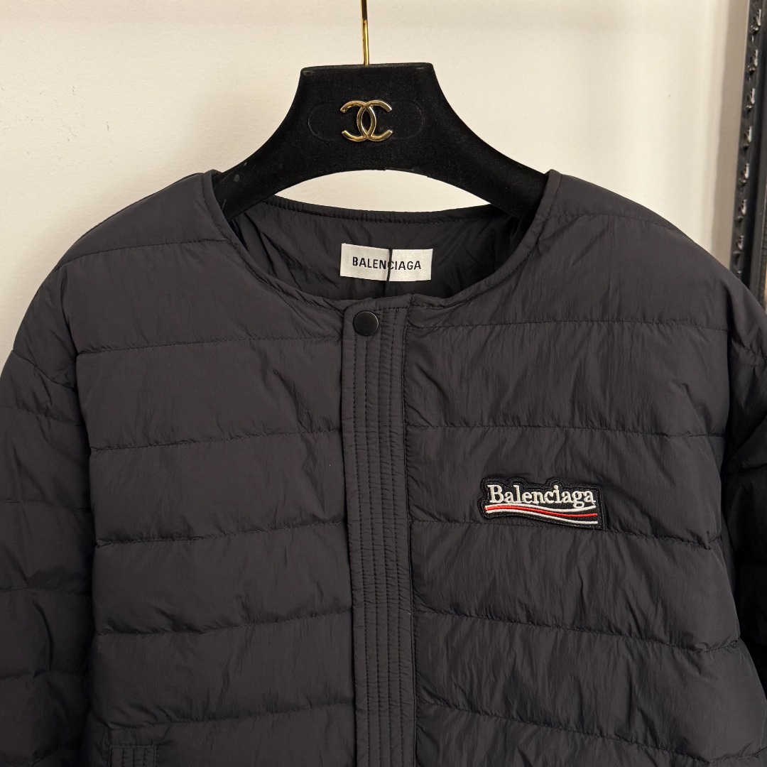 Details: New logo - embroidered drawstring waist long - sleeved cotton jacket in black and light purple, available in SML sizes.