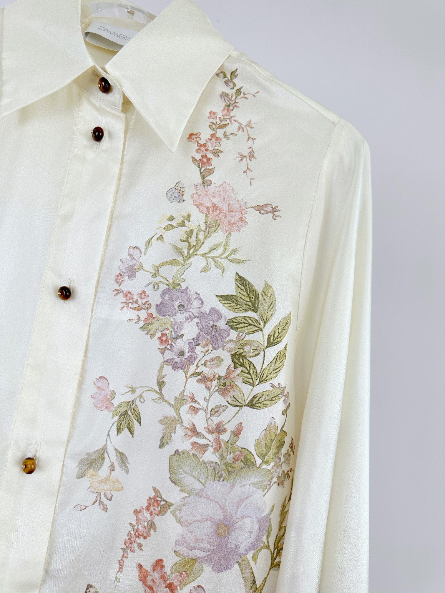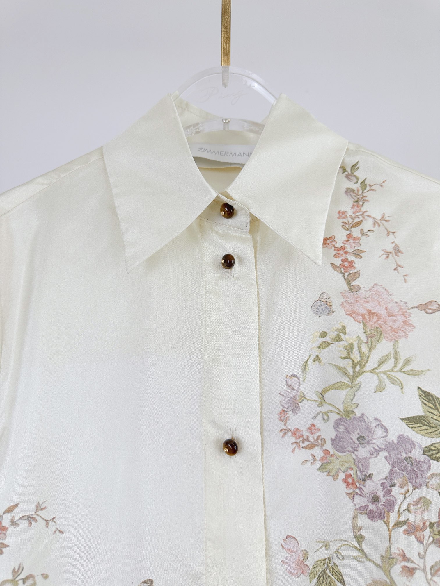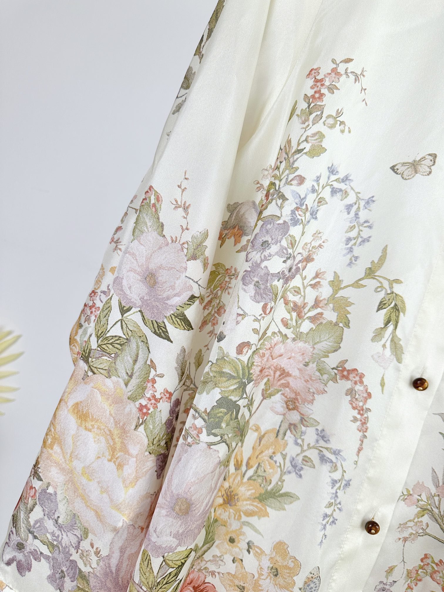 Details: Spring and Summer Silk Long-sleeve Shirt with Floral Pattern, Loose Fit, Classic Collar. High-end Customization, Fine Workmanship