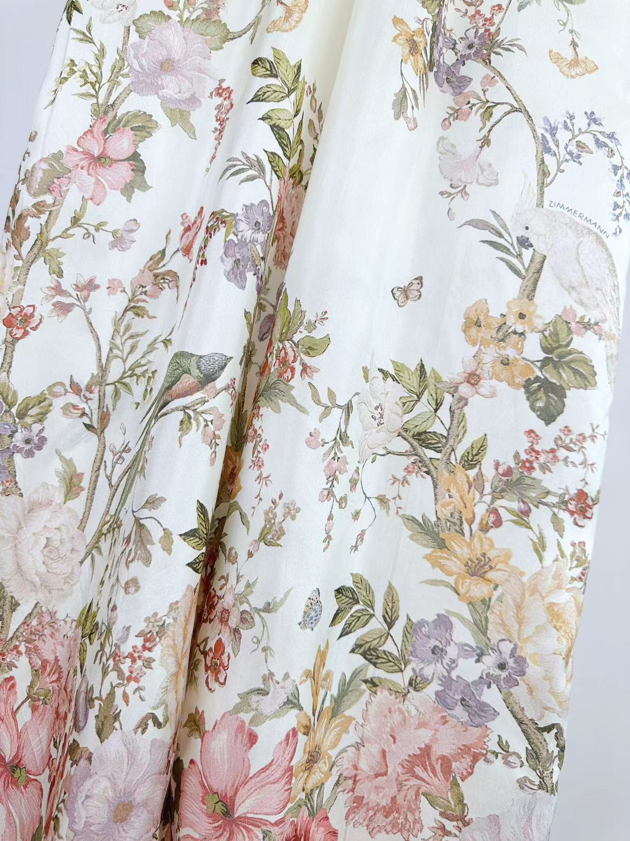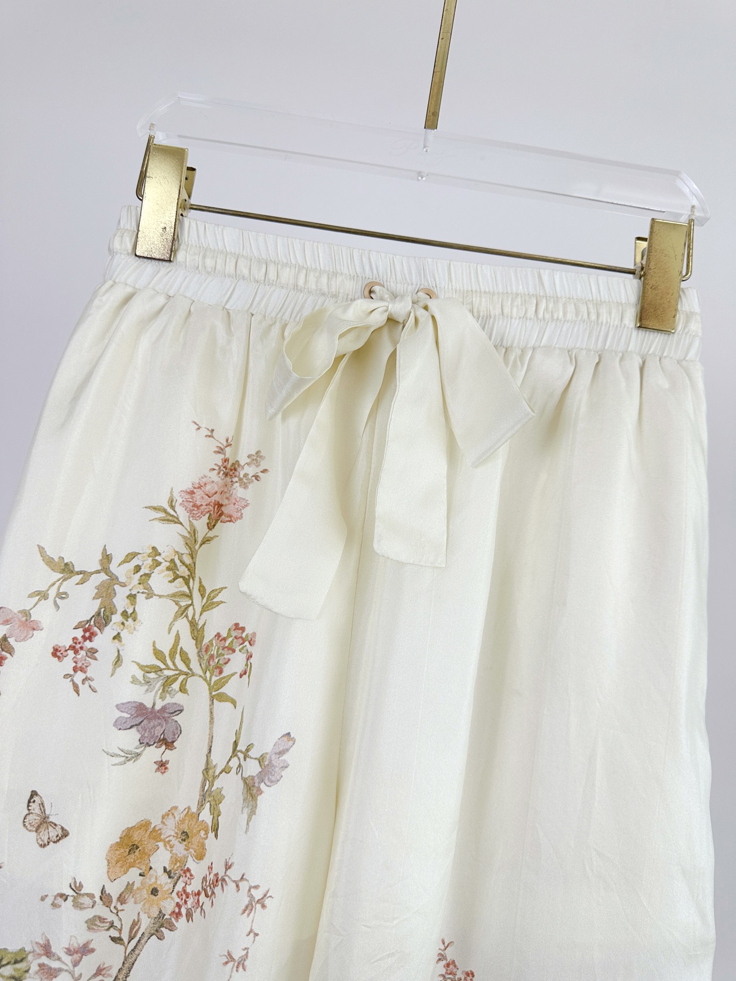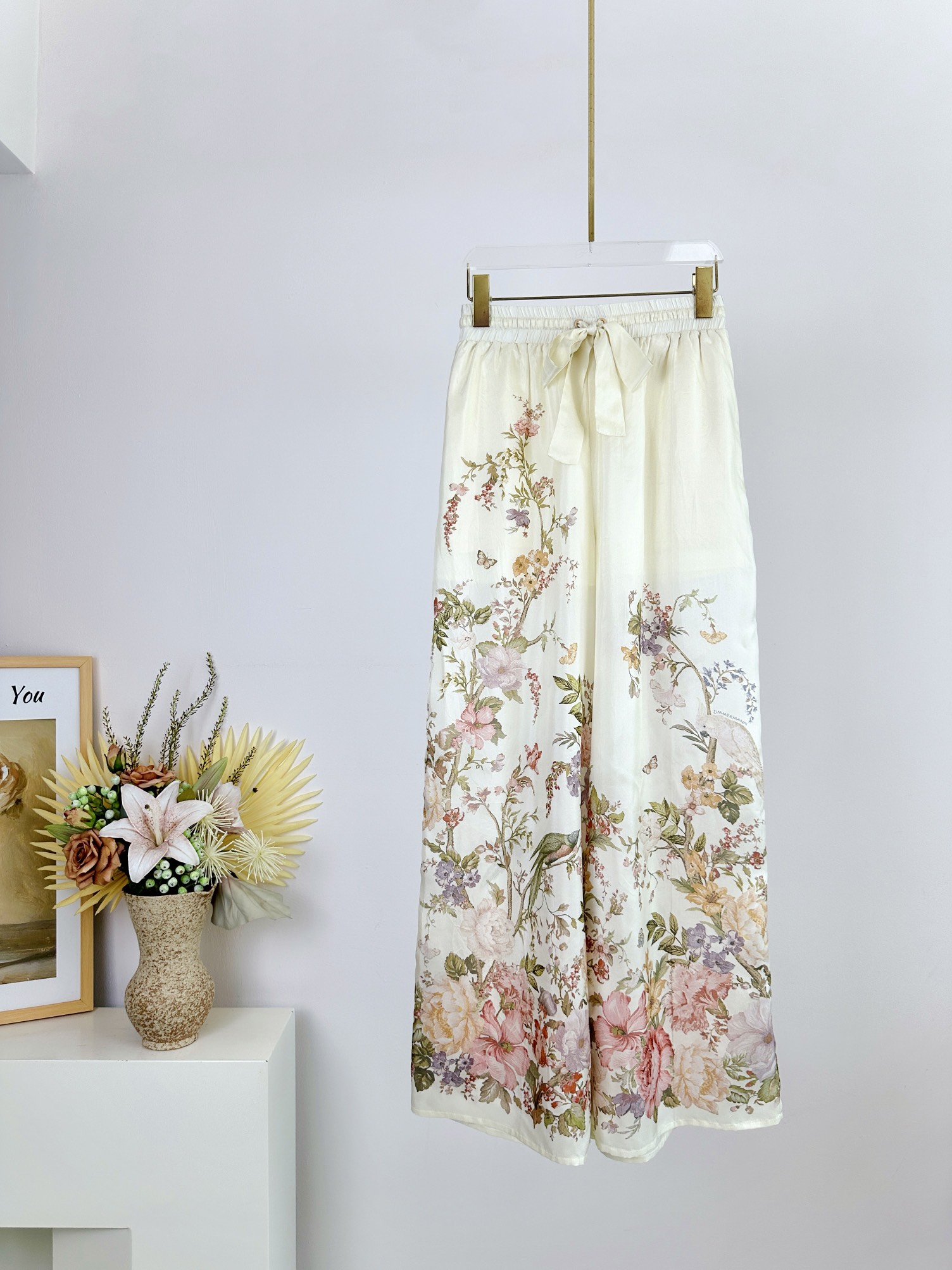 Details: Spring and Summer Silk Drawstring Waist Wide-leg Pants with Floral Pattern, Practical Pockets. High-end Customization, Fine Workmanship