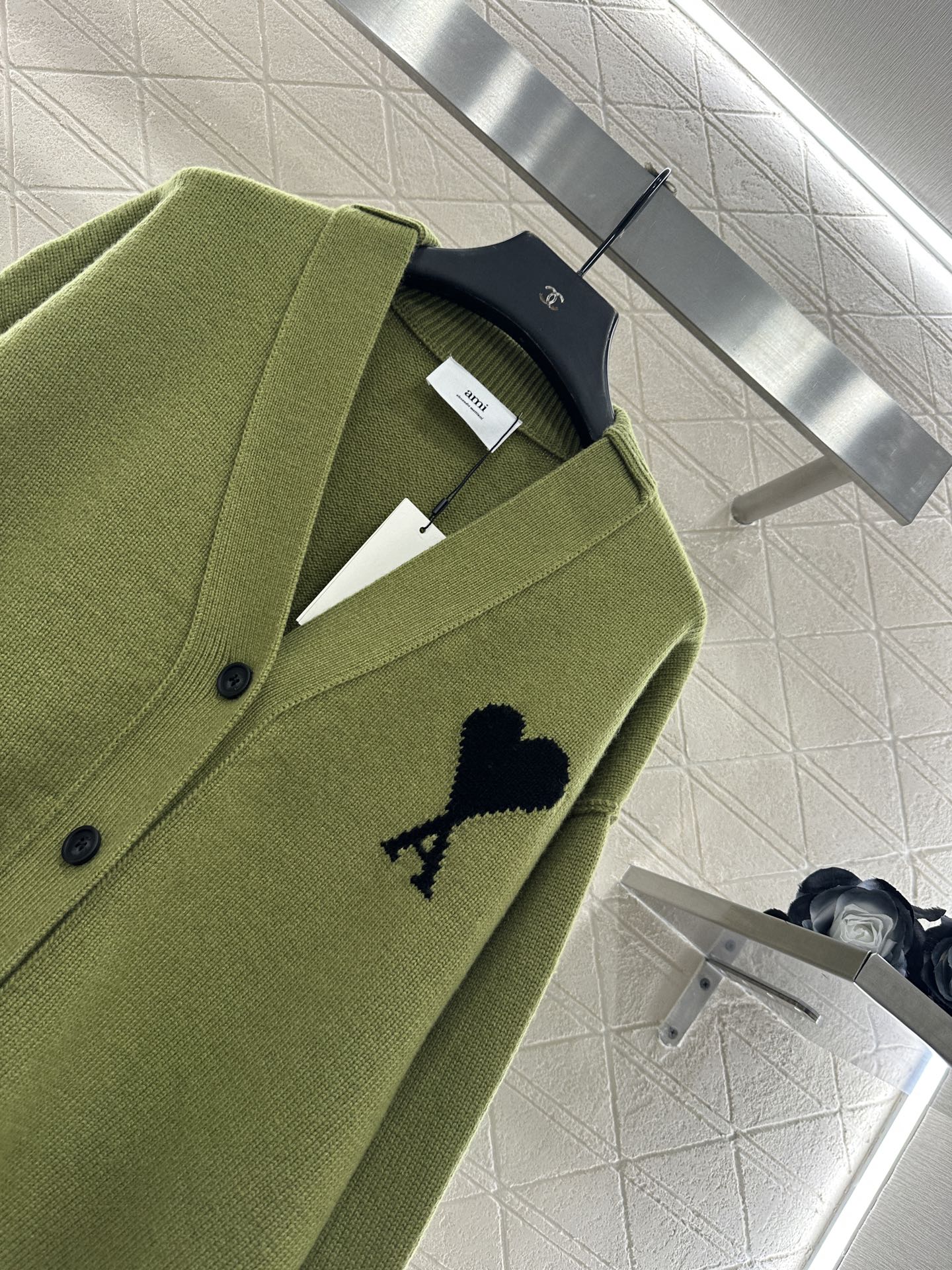 Details: Heart-decorated knitted cardigan for , featuring a V-neck and oversized fit. Cozy and stylish, with fine craftsmanship