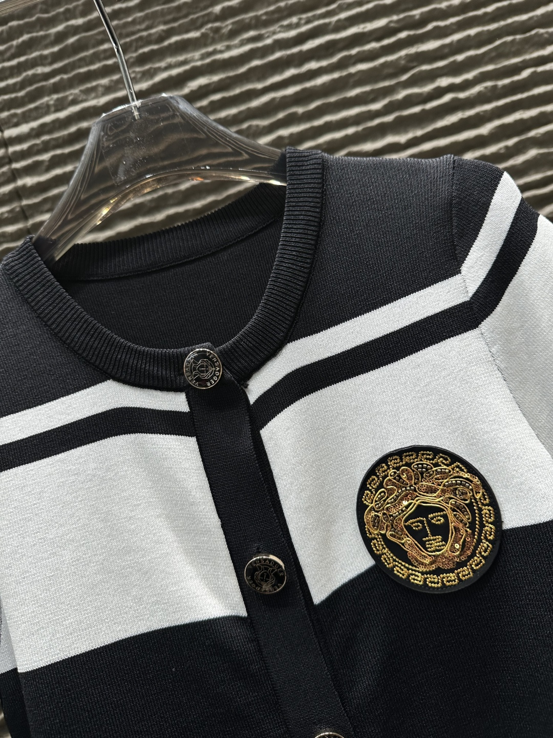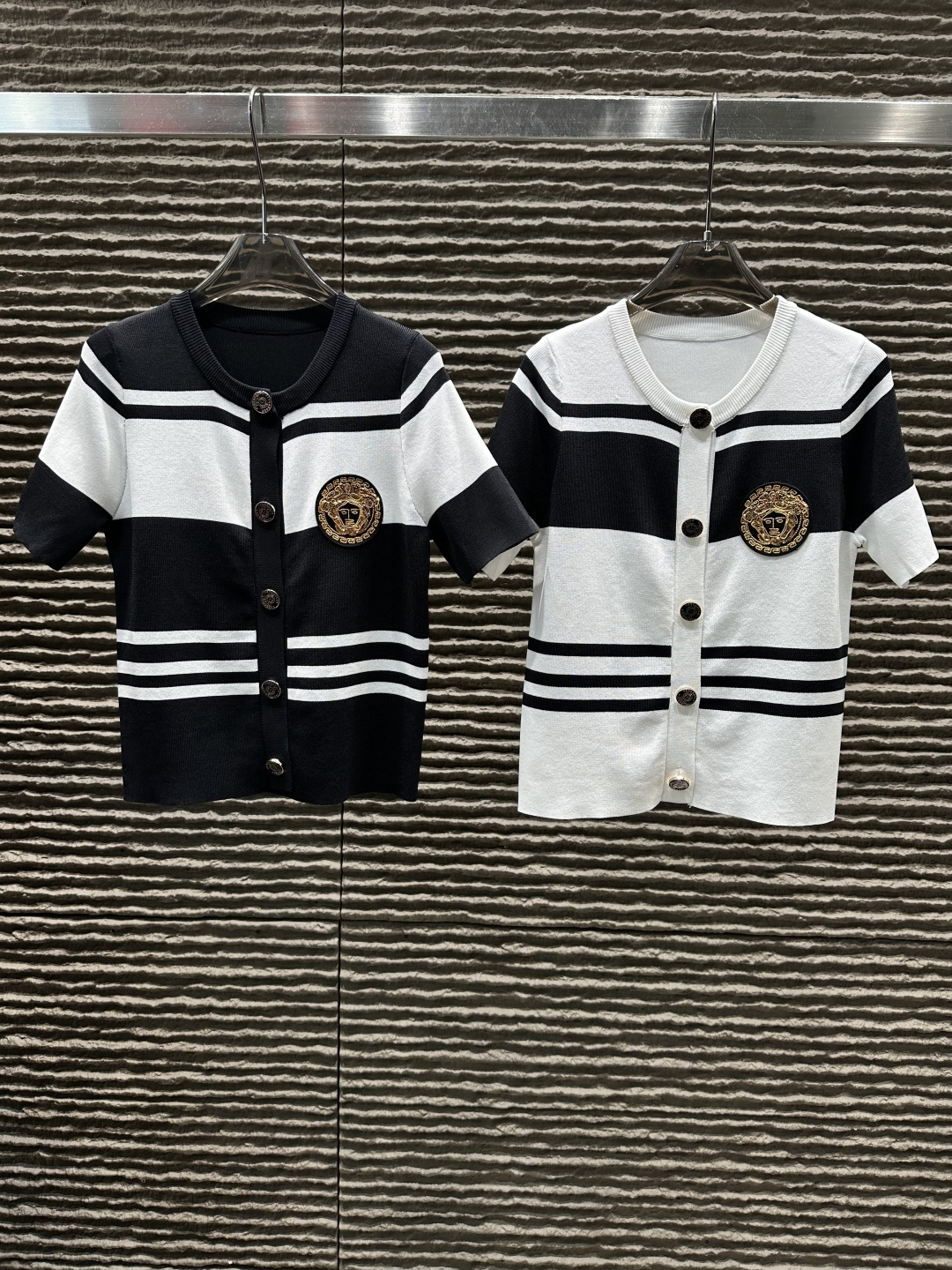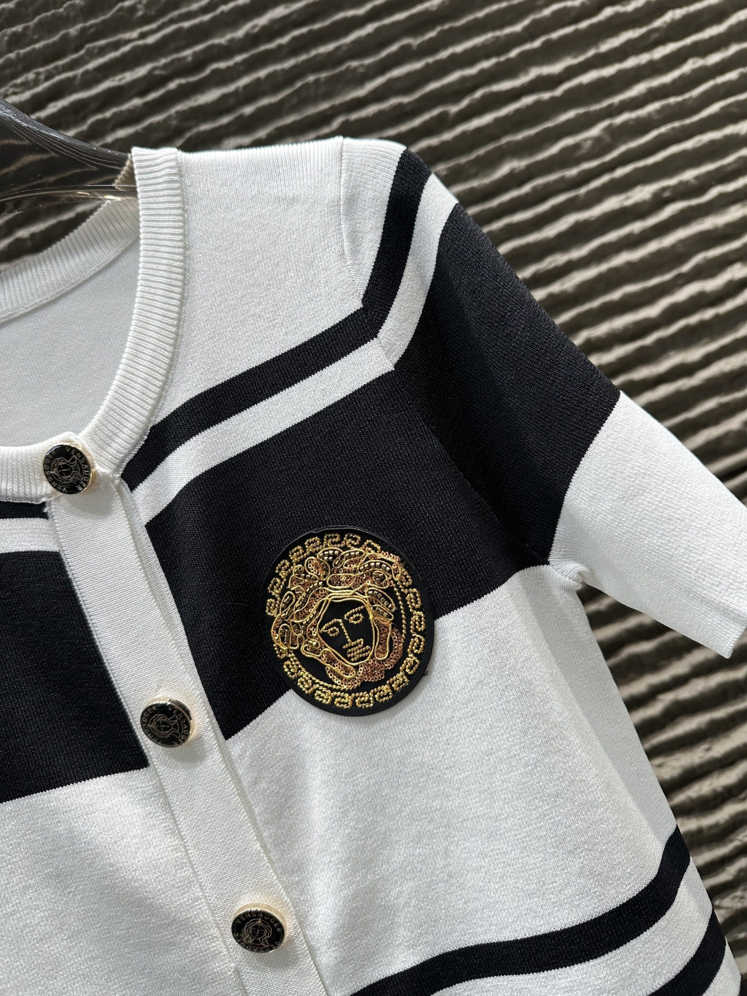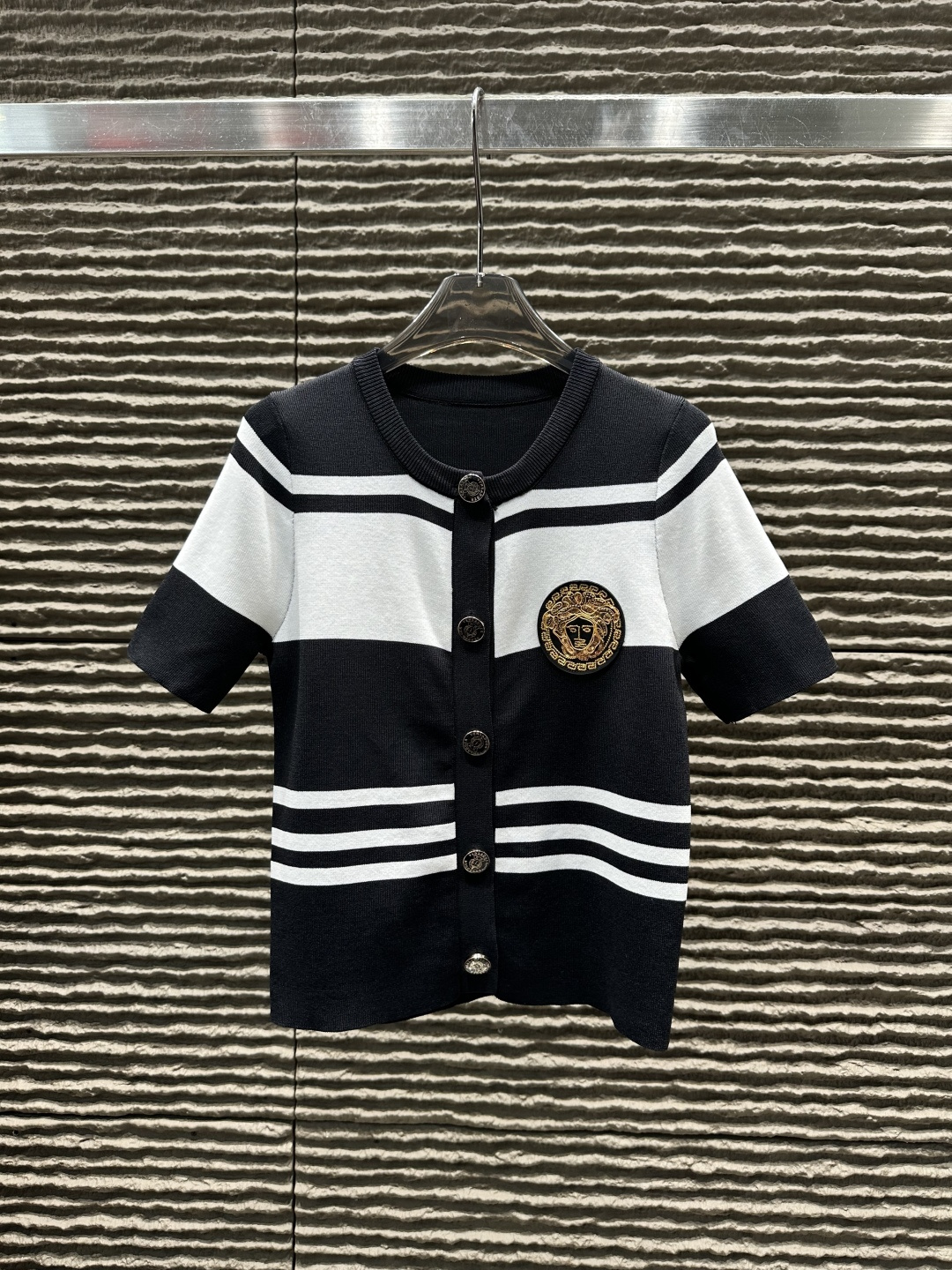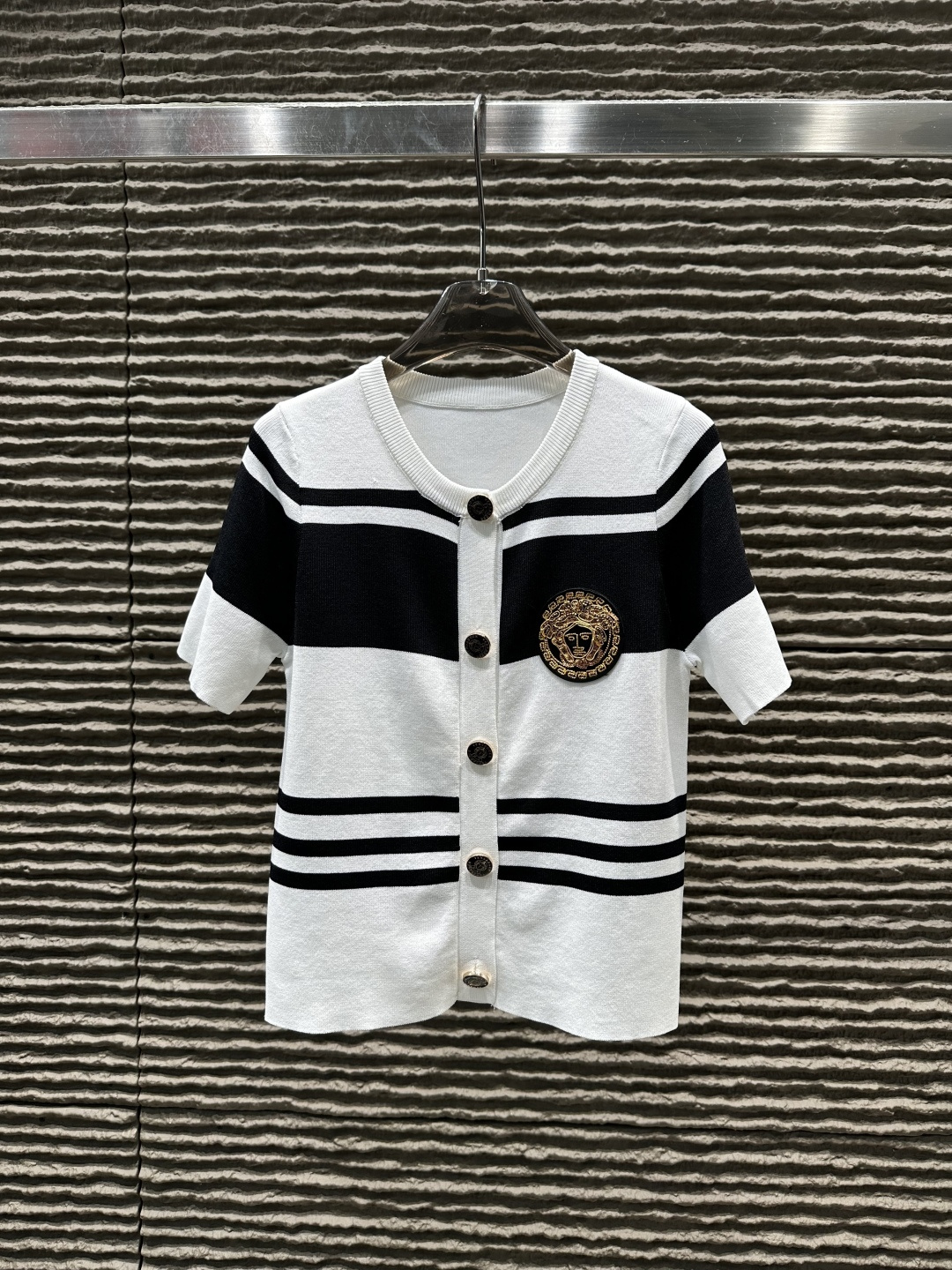 Details: Striped round neck knitted short-sleeved cardigan, High-end customization, Fine workmanship