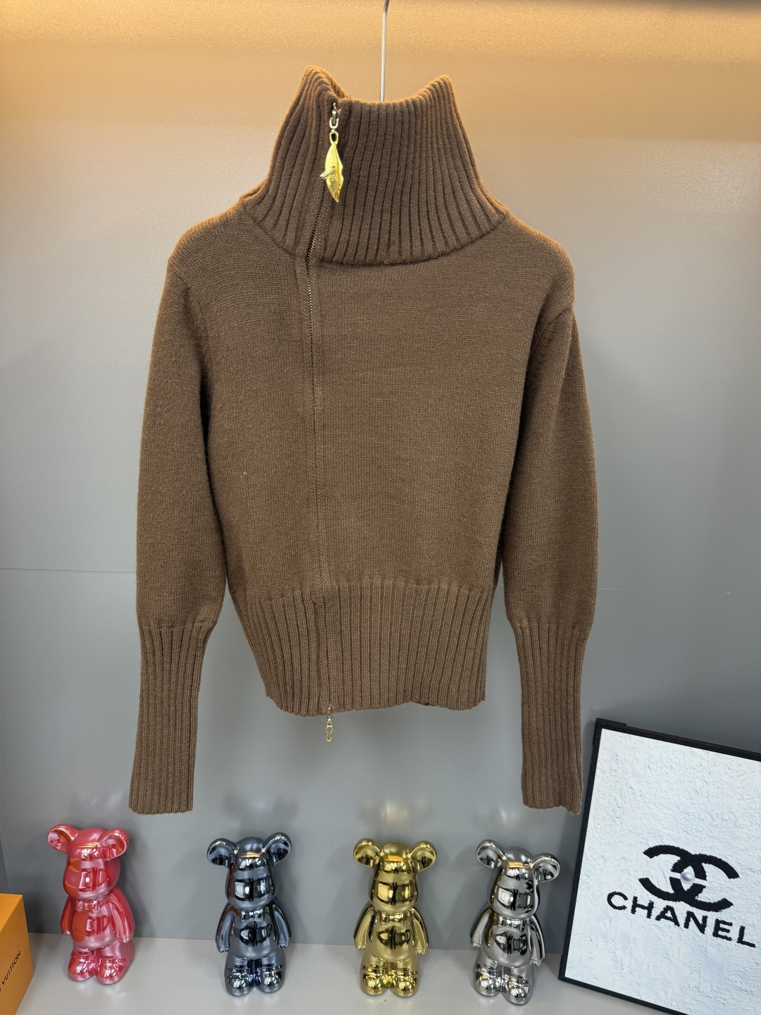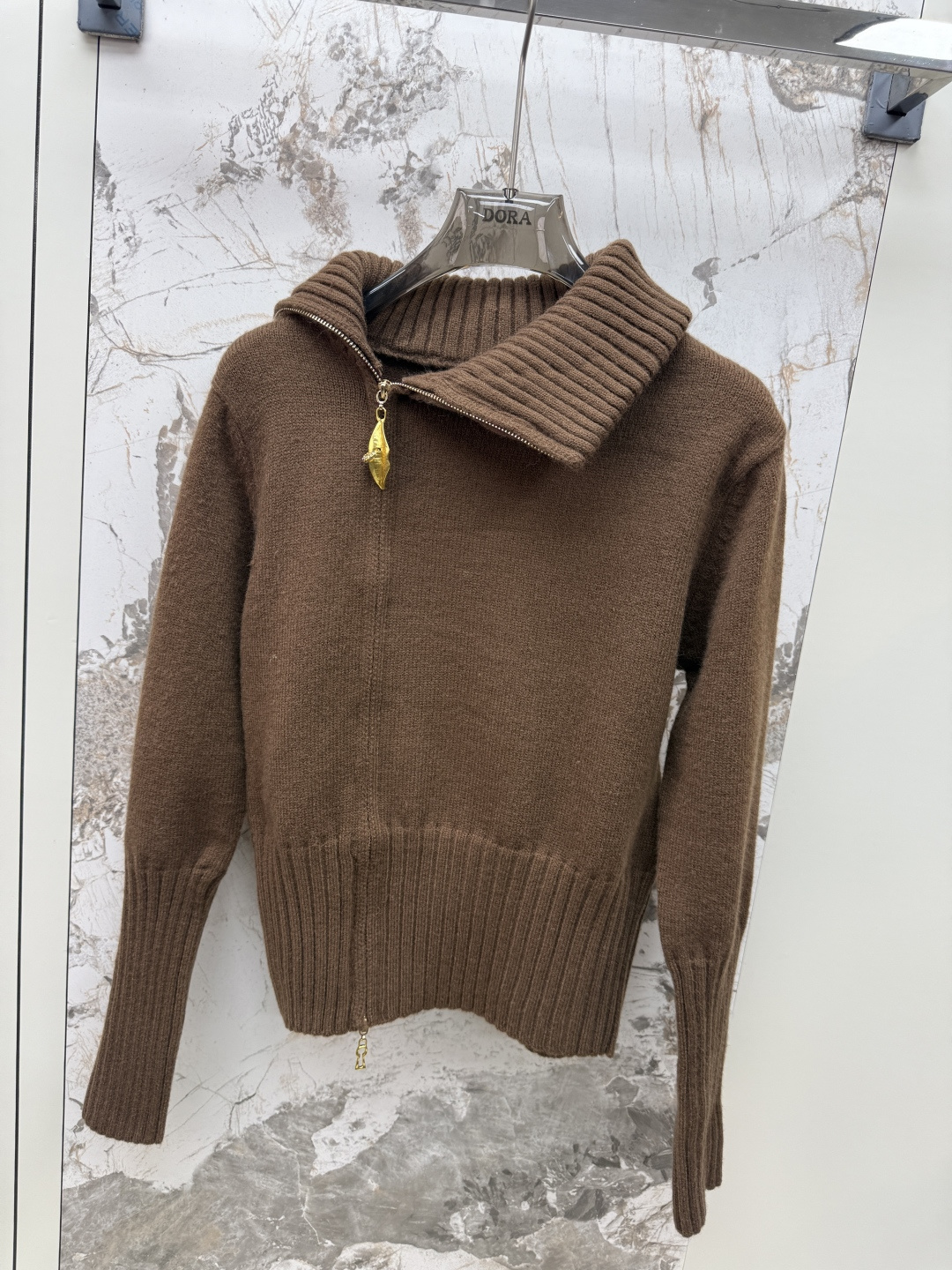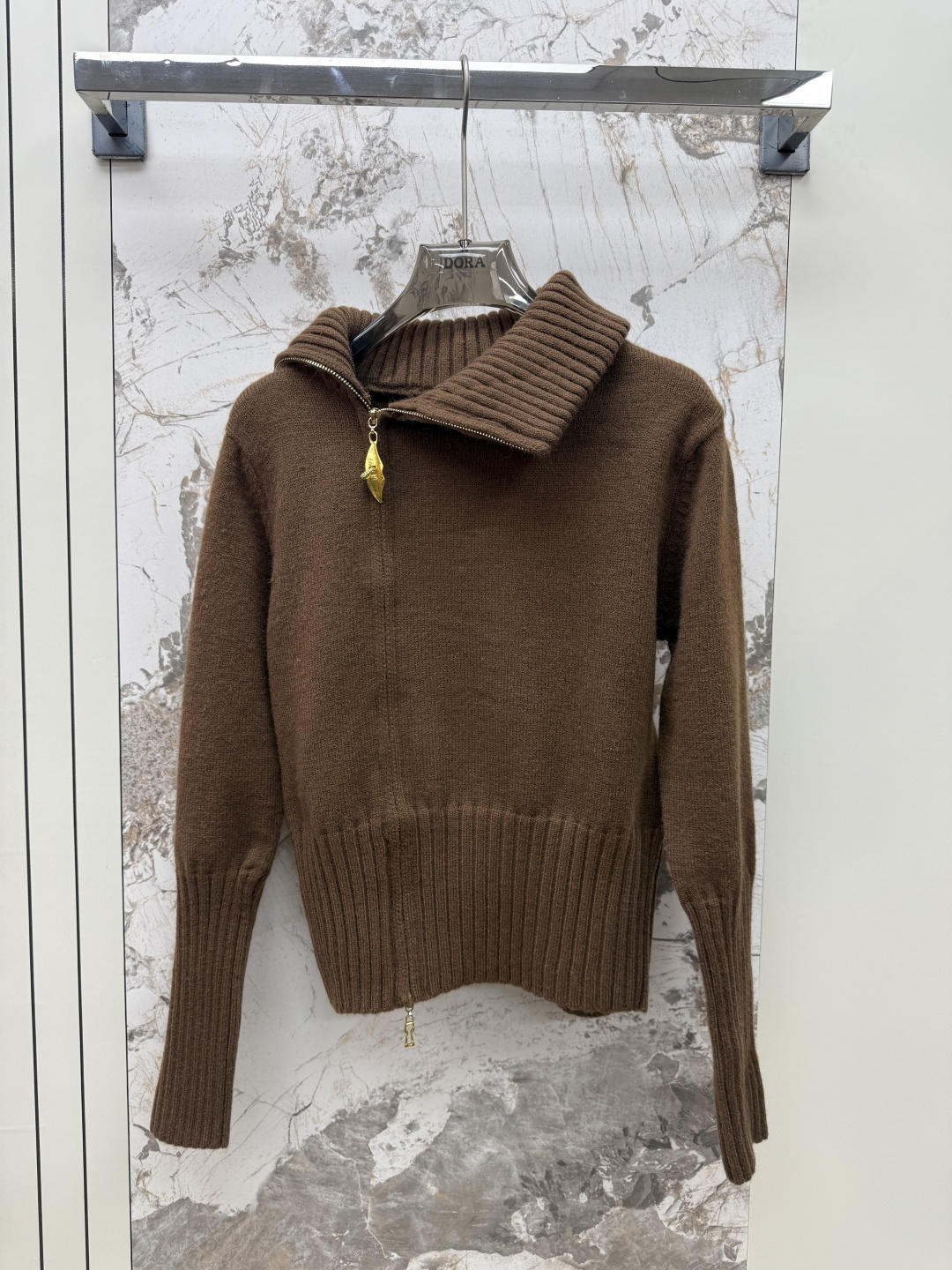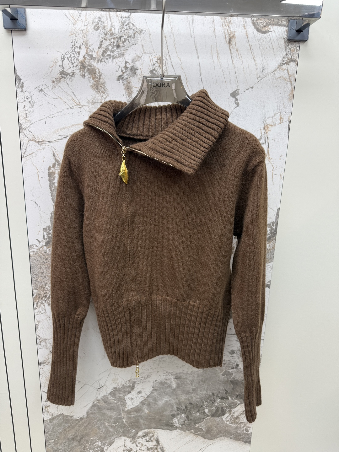 Details: Zip-up cardigan with leaf pattern and side zipper, available in black, brown, white, one size fits all, high-end customization, exquisite craftsmanship