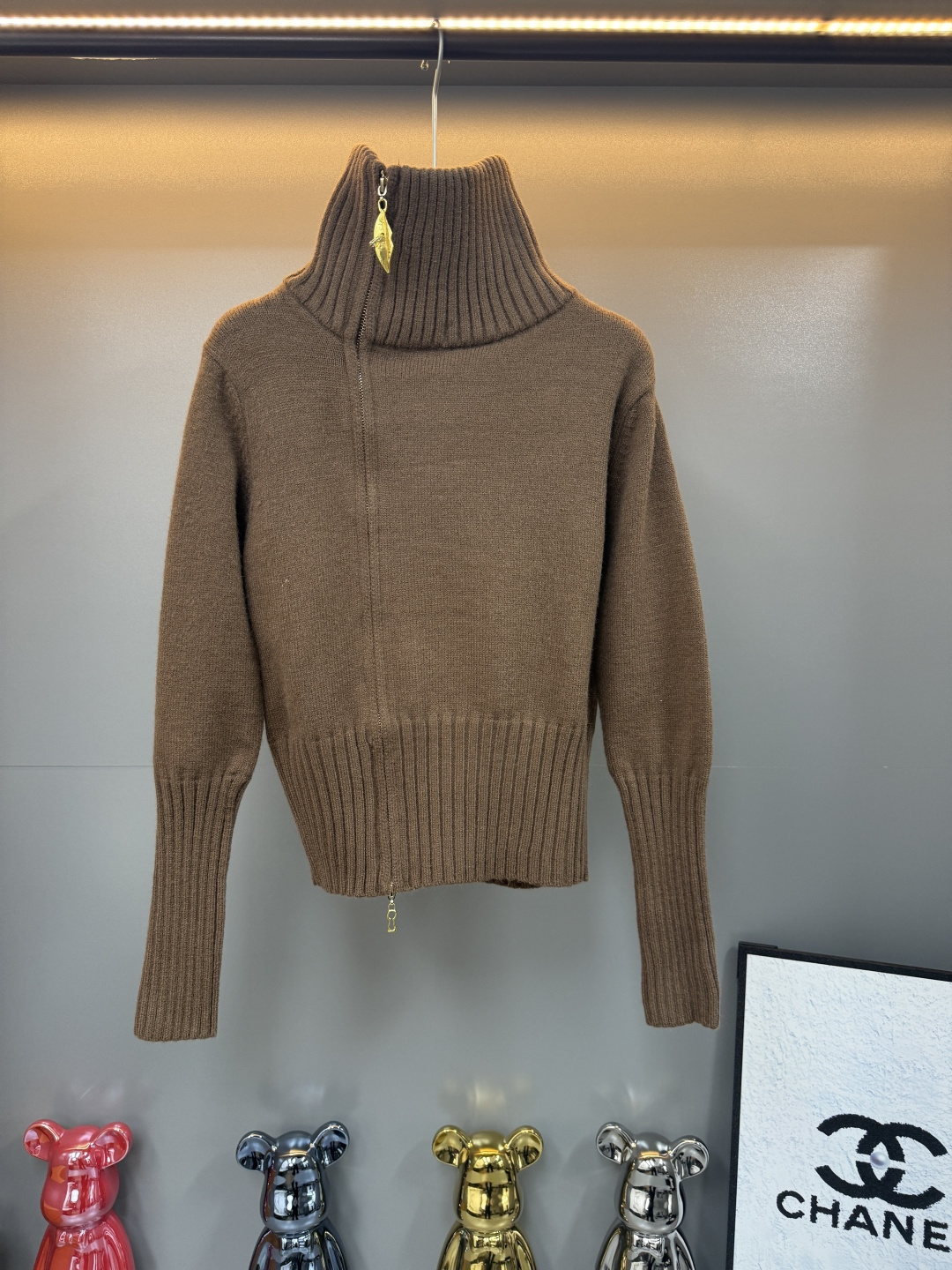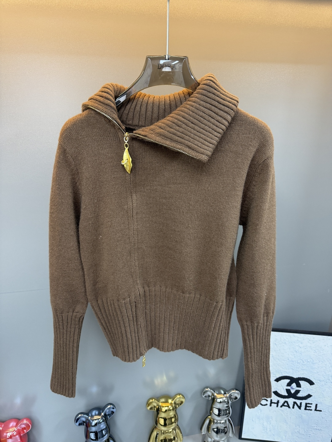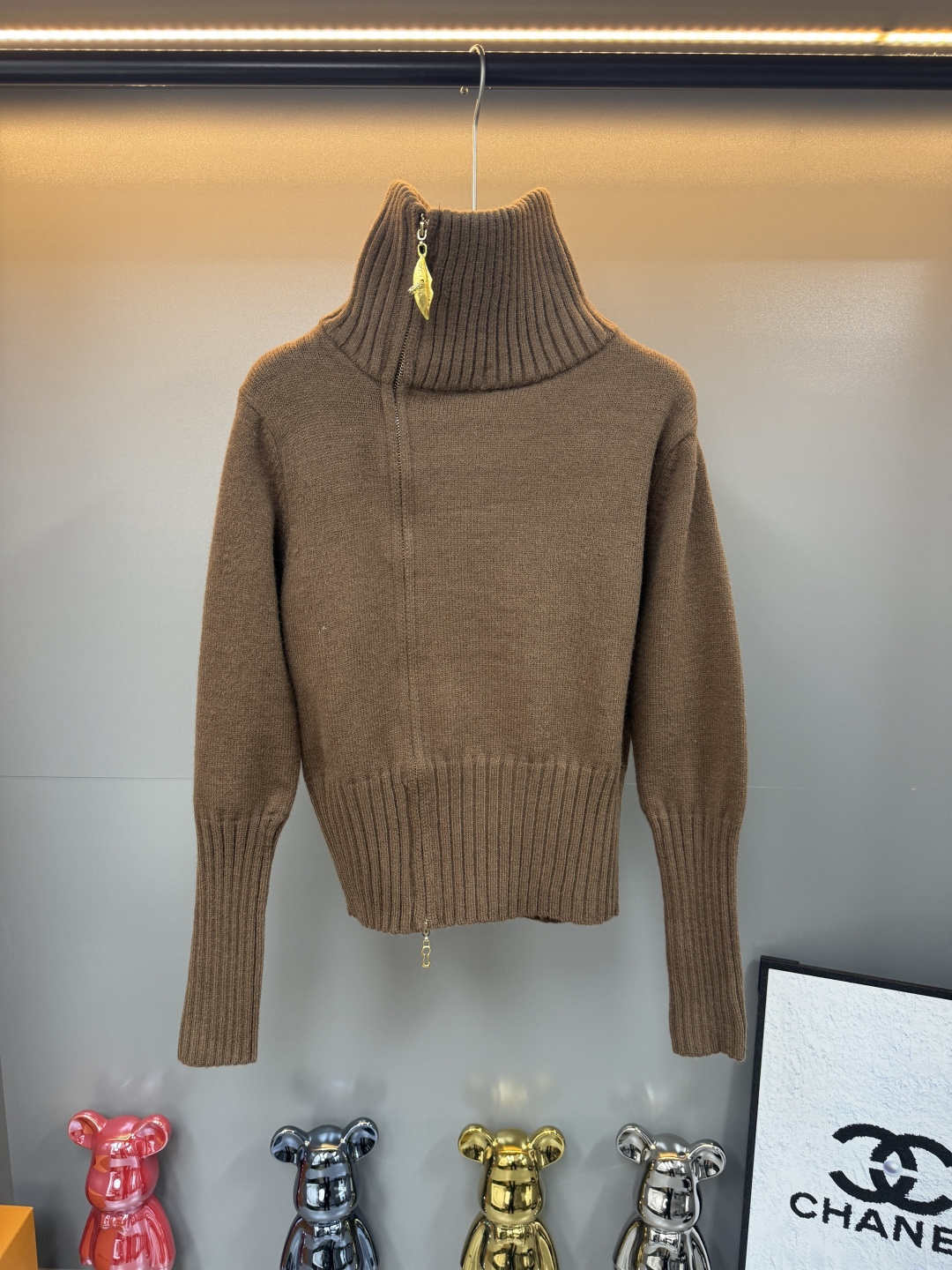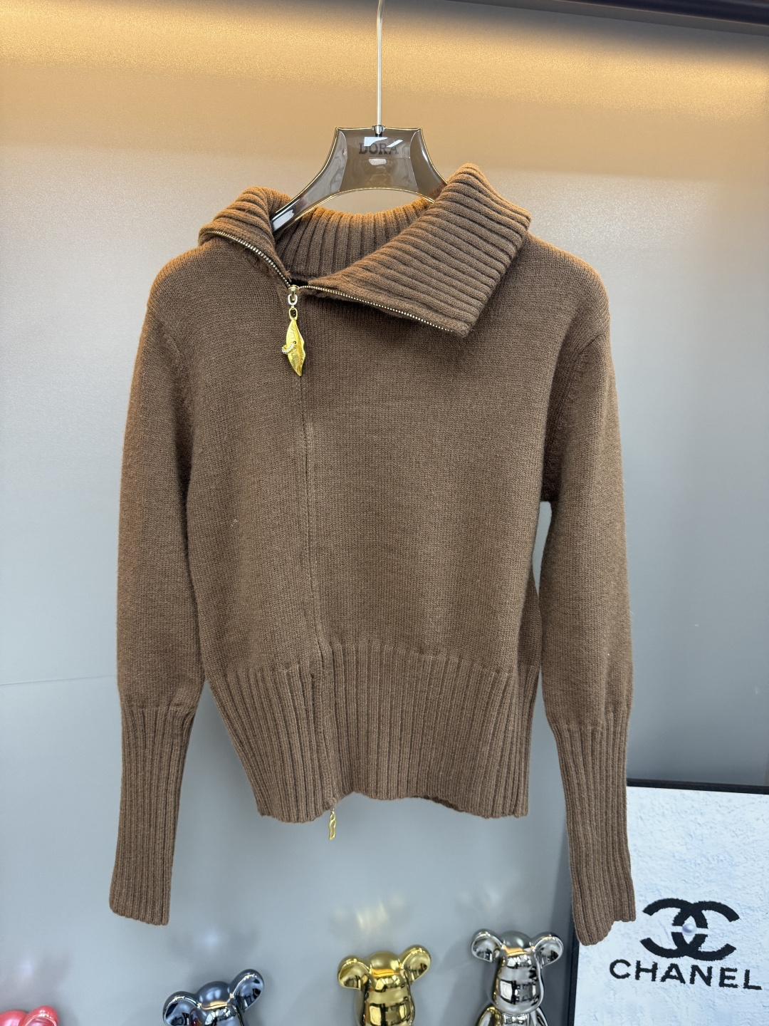 Details: Zip-up cardigan with leaf pattern and side zipper, available in black, brown, white, one size fits all, high-end customization, exquisite craftsmanship