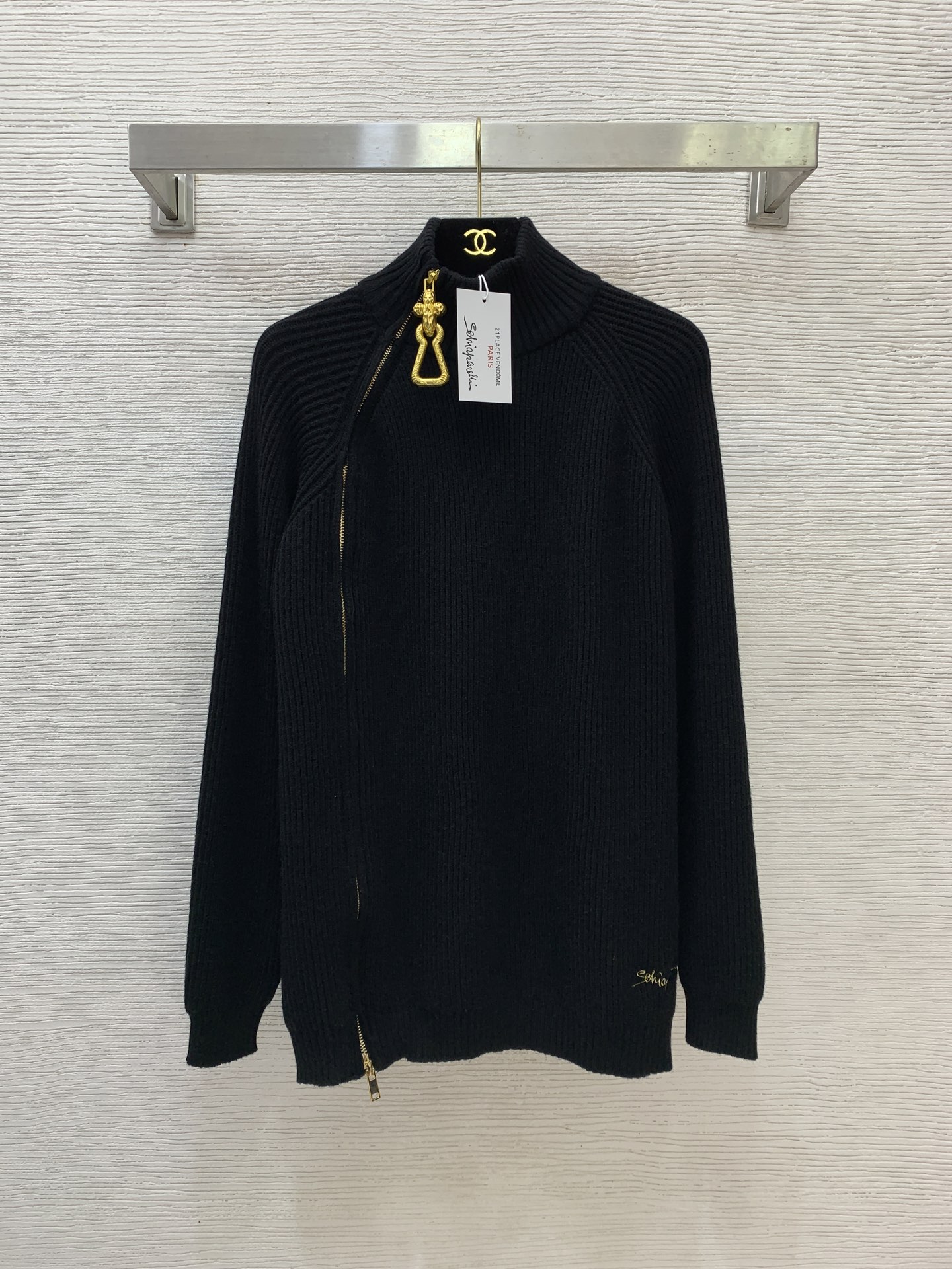 Details: New loose long-sleeved knitted sweater with gold logo embroidery, available in black and brown, one-size. High-end customization, fine workmanship