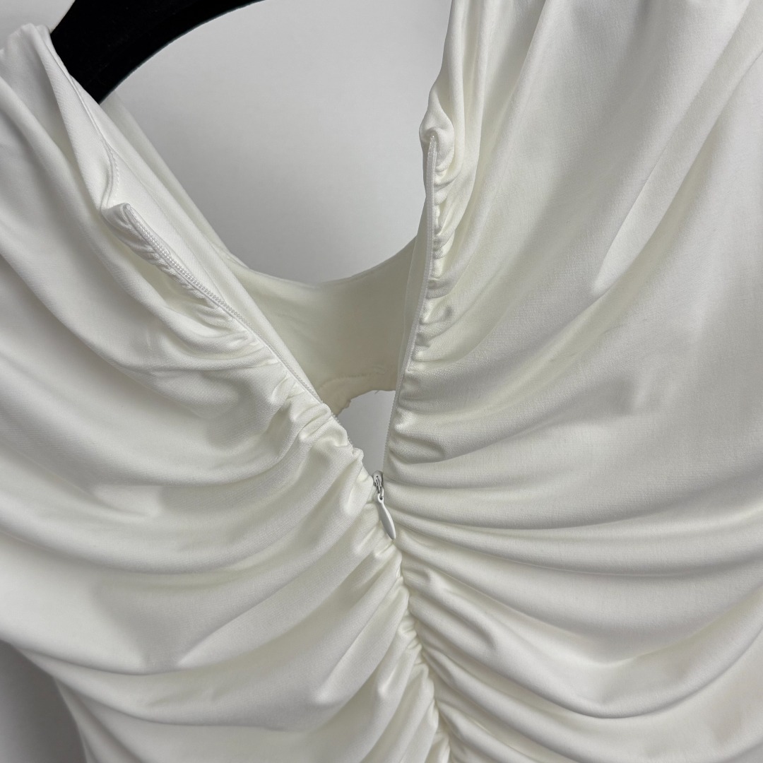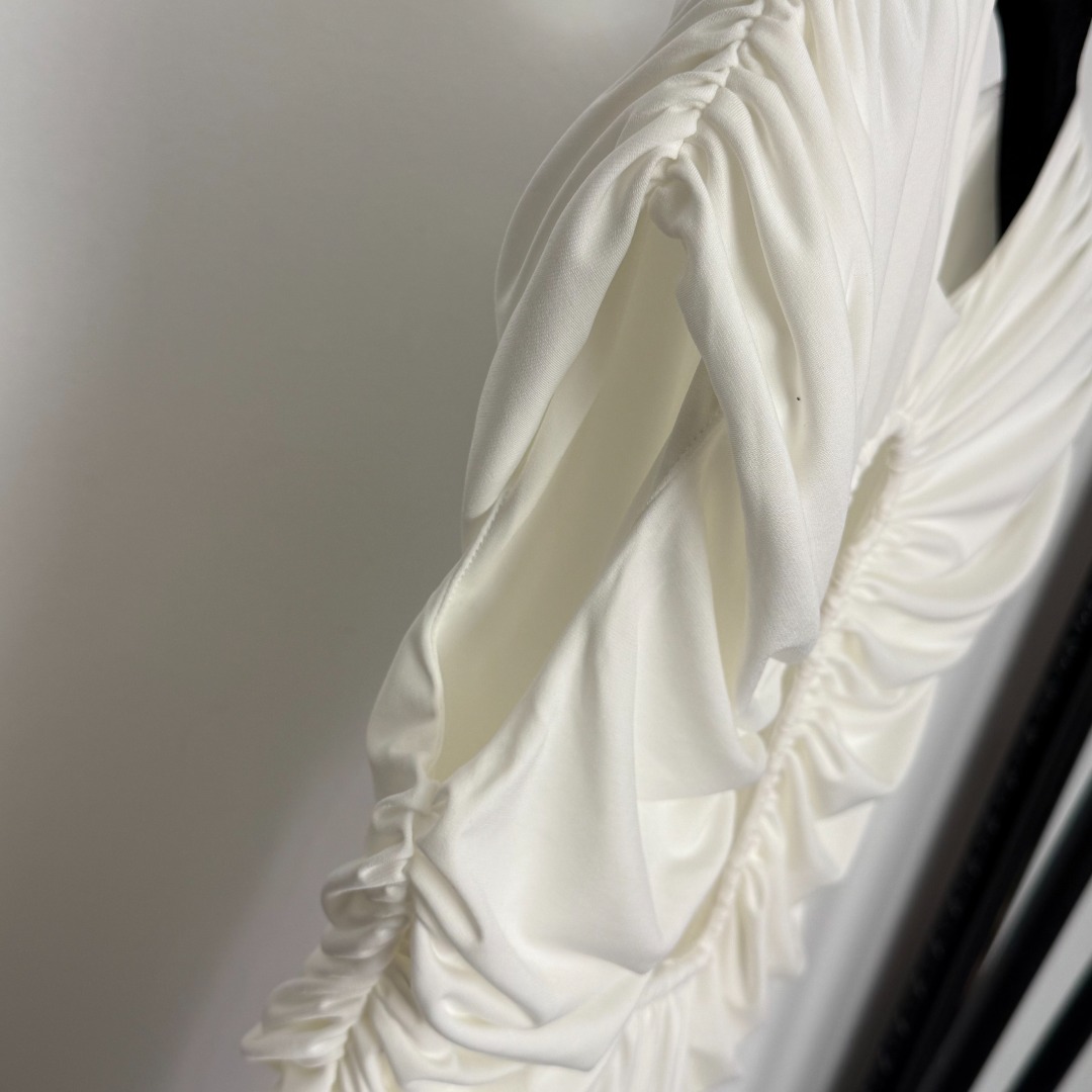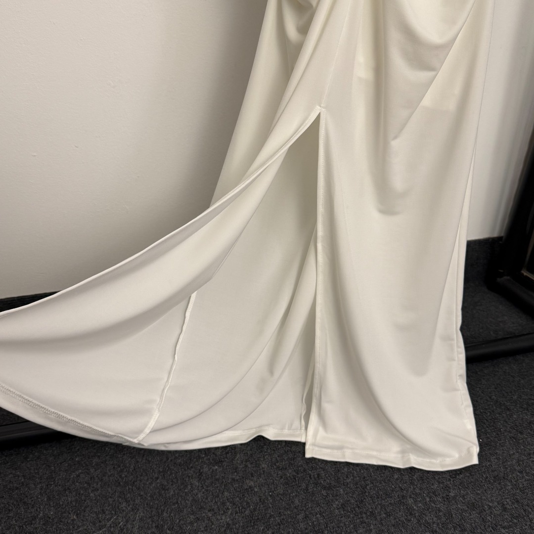 Details: New keyhole ruffled evening dress in white and red, available in S, XL, and M sizes.