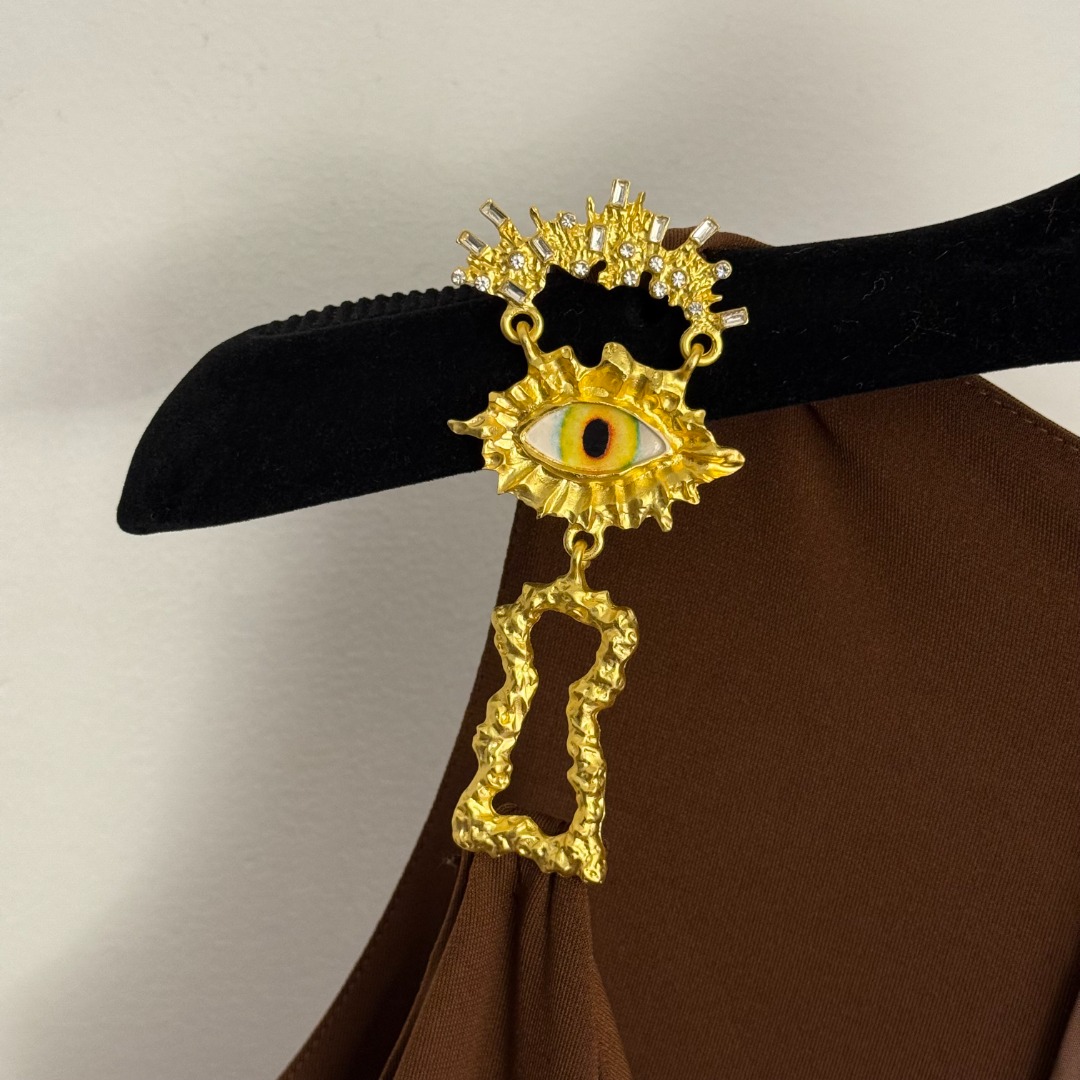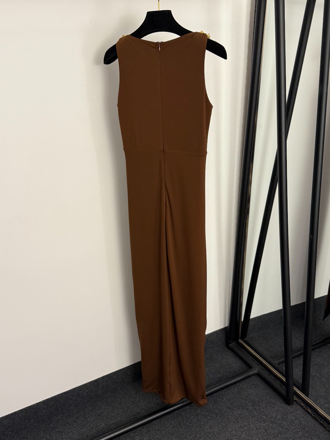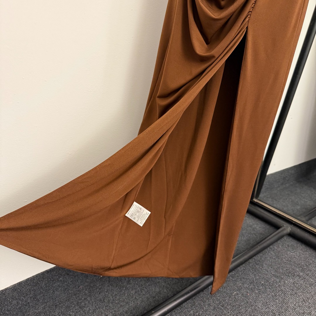Details: New Ruffled Waist Cinching Split-back Dress with Big-eye Metal Buttons in Brown, Red, and Black, SML Sizes