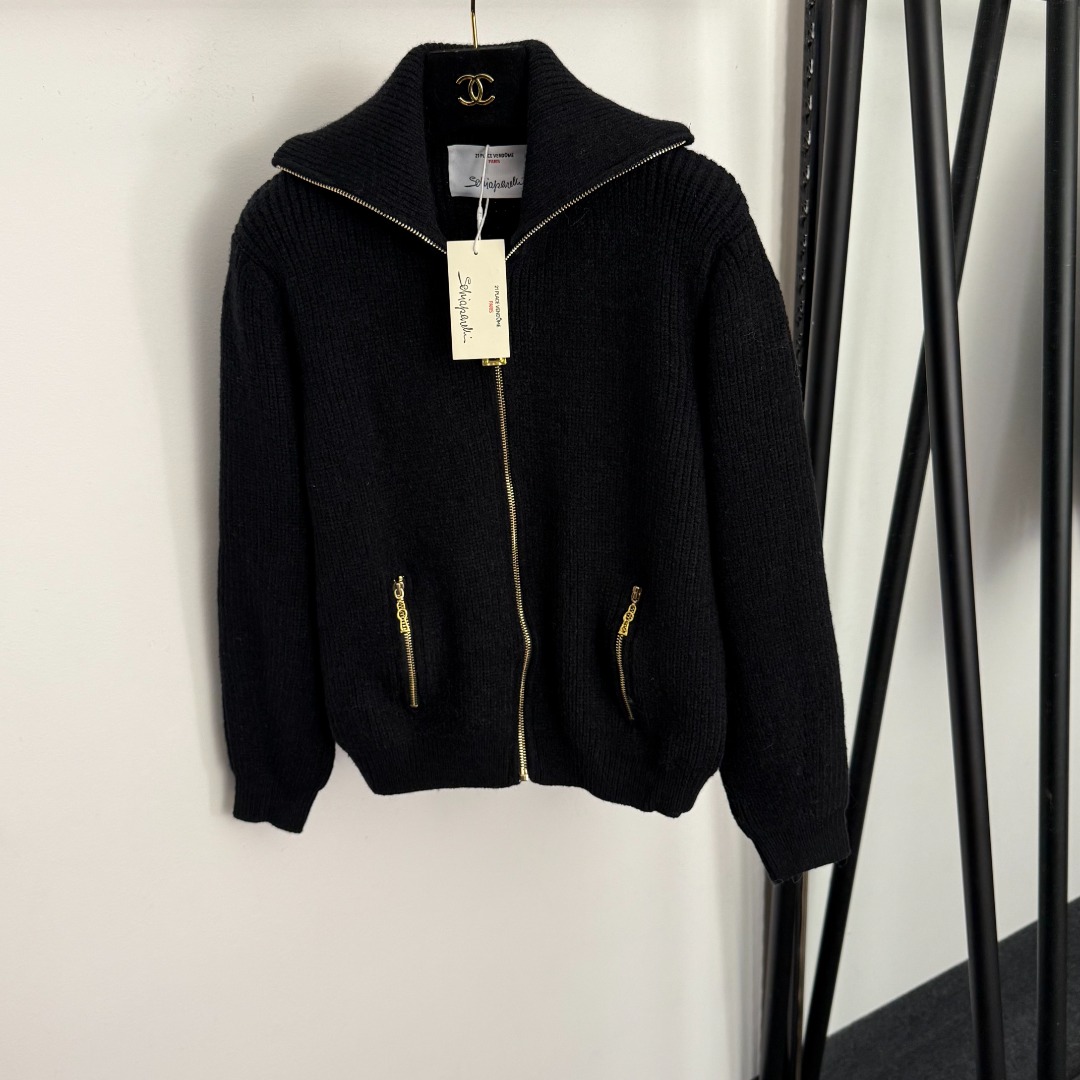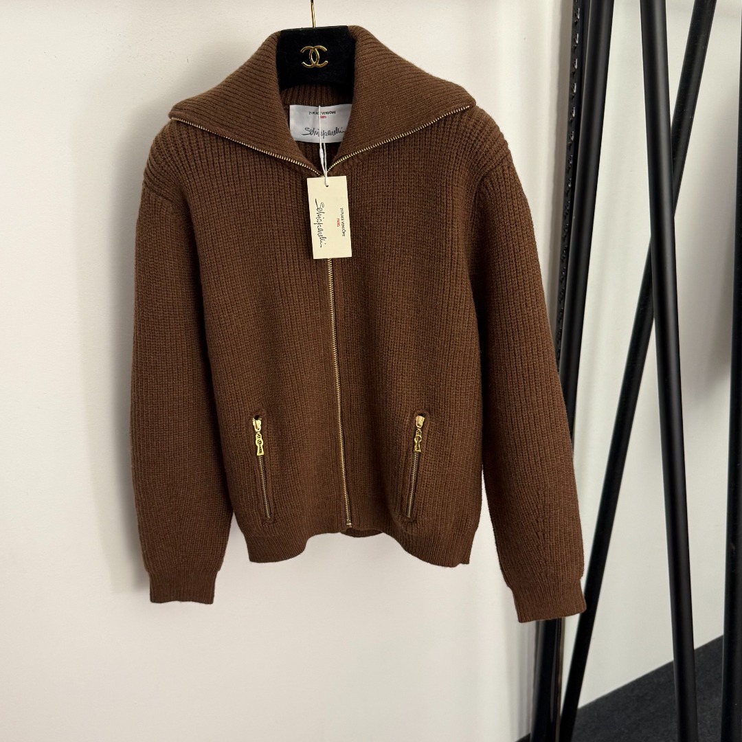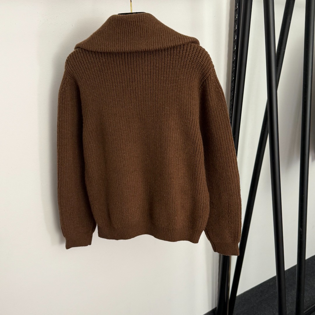 Details: New long-sleeved knitted cardigan with a metal keyhole zipper, available in black or brown, one size fits all.