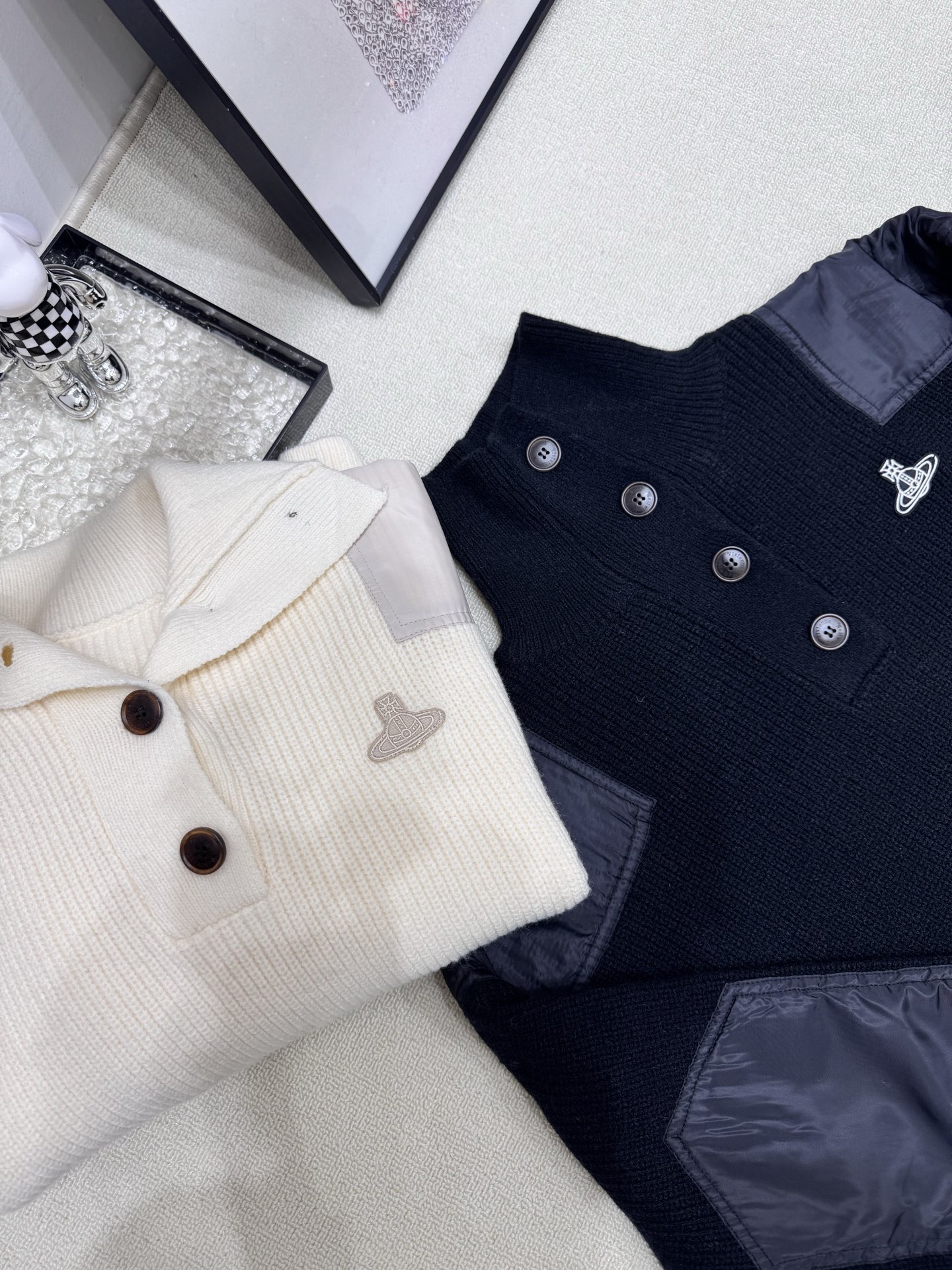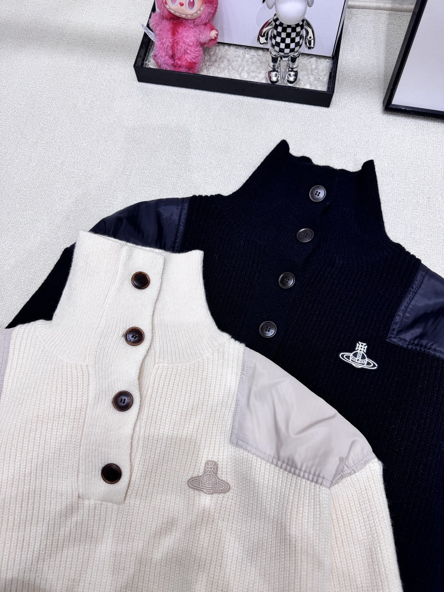 Details: New Saturn patchwork knitted pullover. High-end custom, fine workmanship