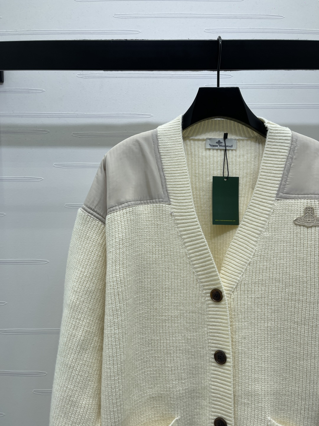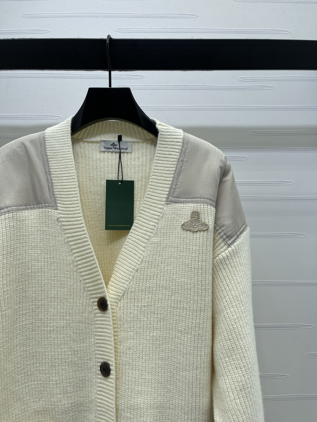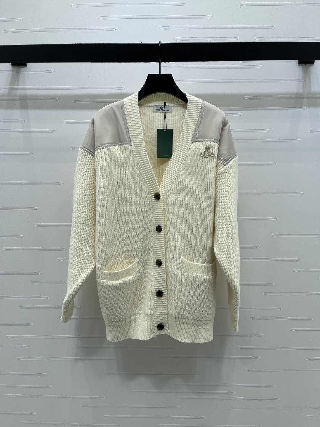 Details: Autumn-Winter Saturn Logo V-neck Cardigan, Custom Wool, Mix of Fabrics, Stylish. fine craftsmanship