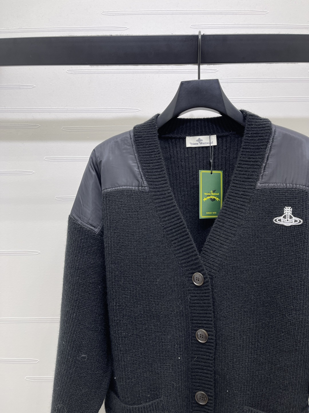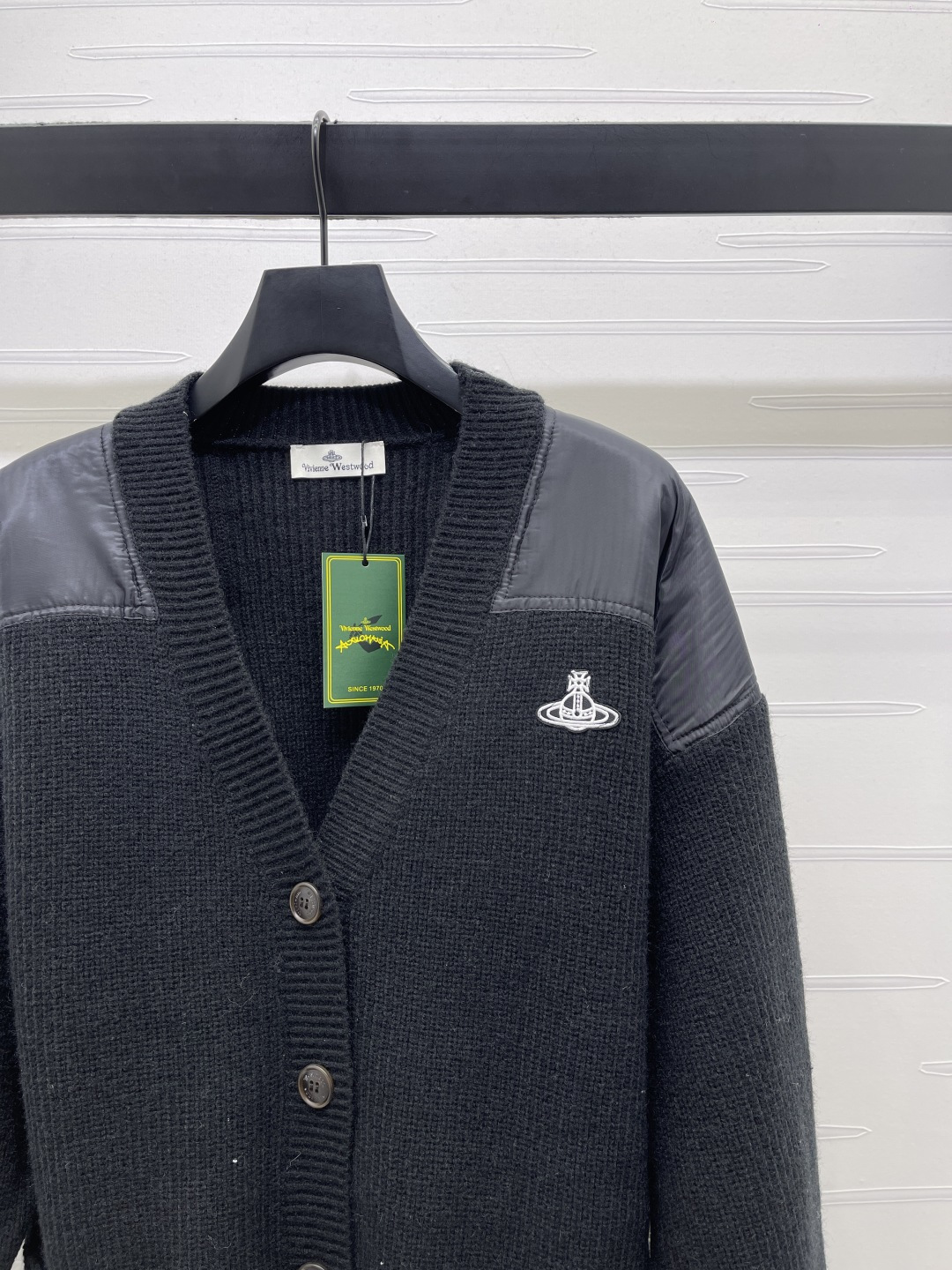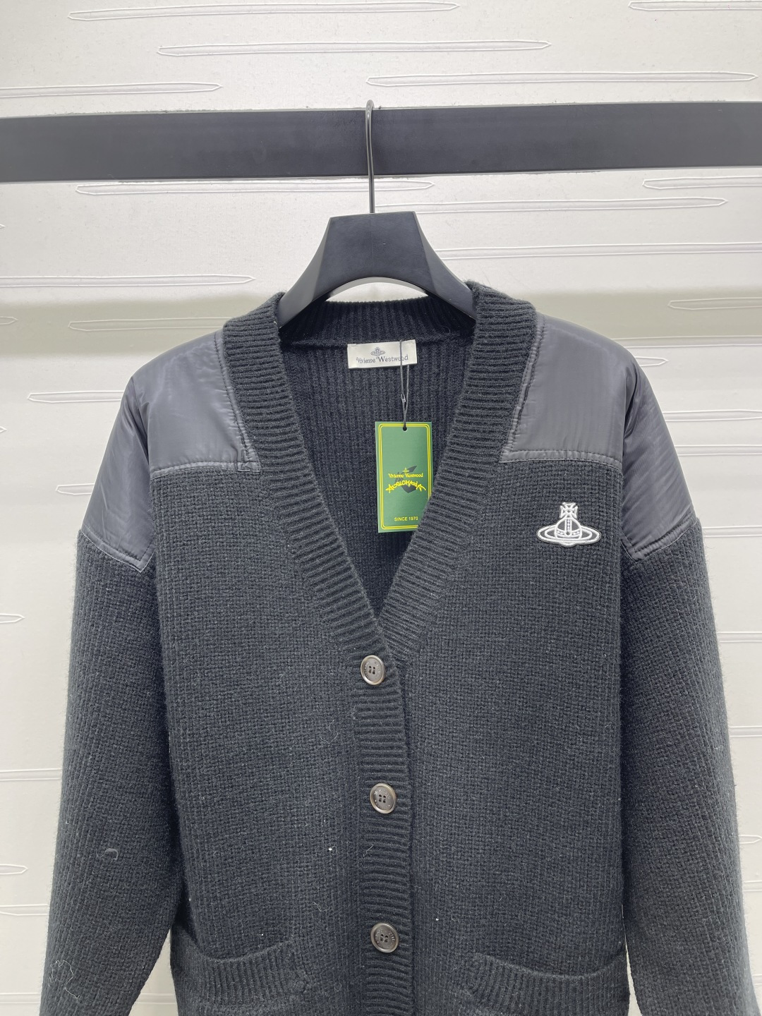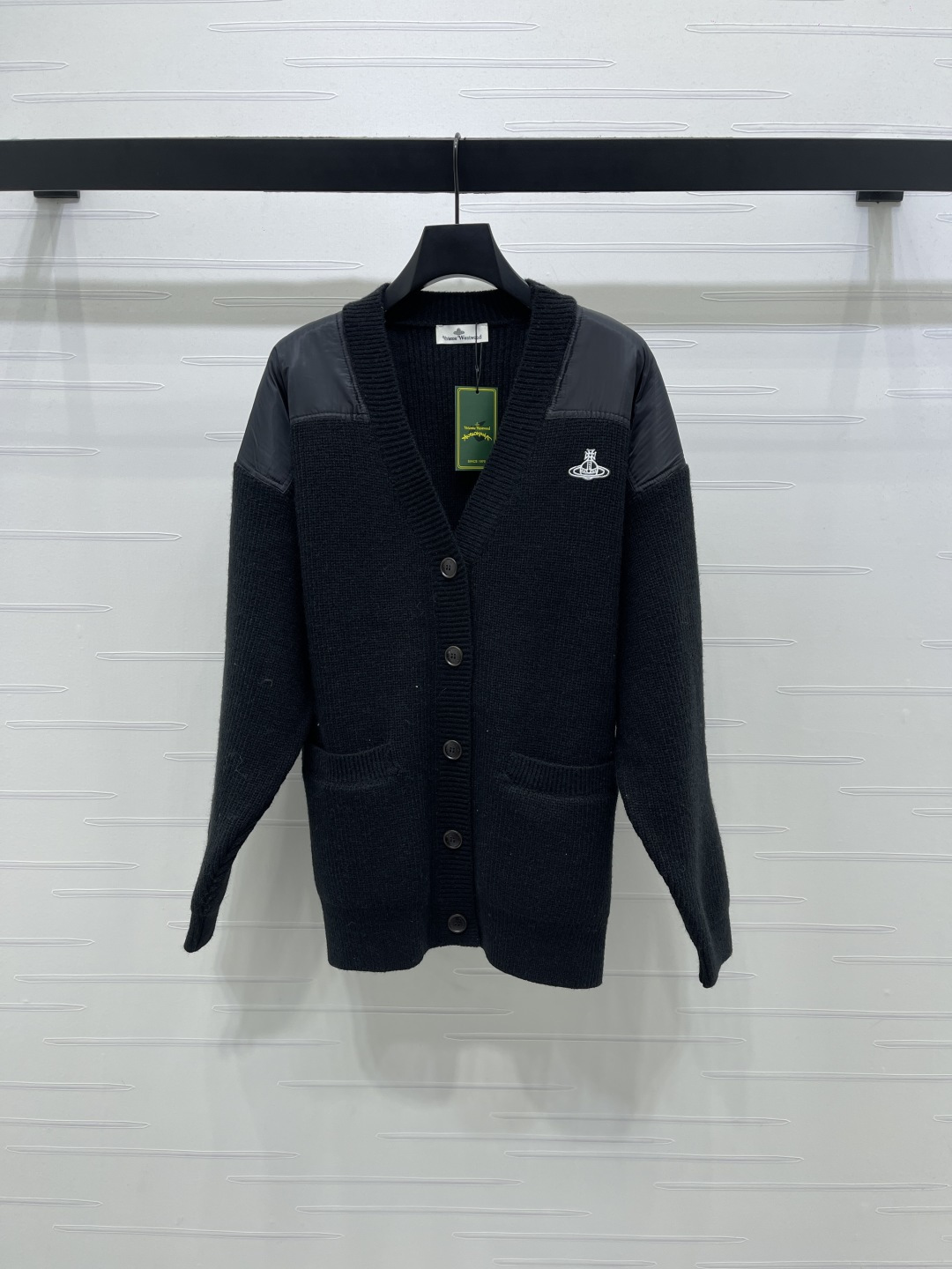 Details: Autumn-Winter Saturn Logo V-neck Cardigan, Custom Wool, Mix of Fabrics, Stylish. fine craftsmanship