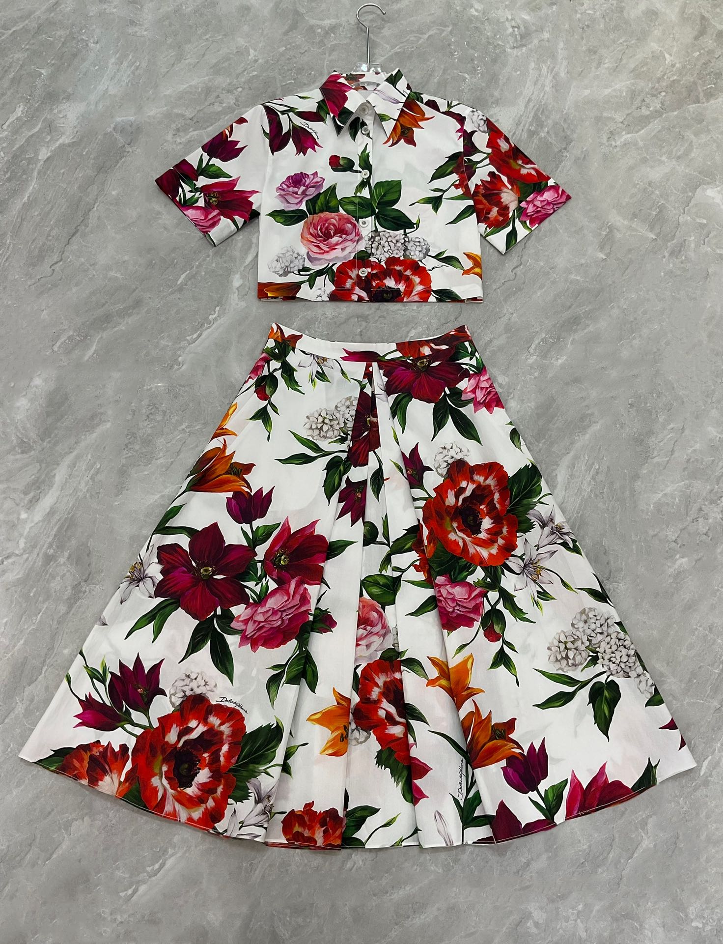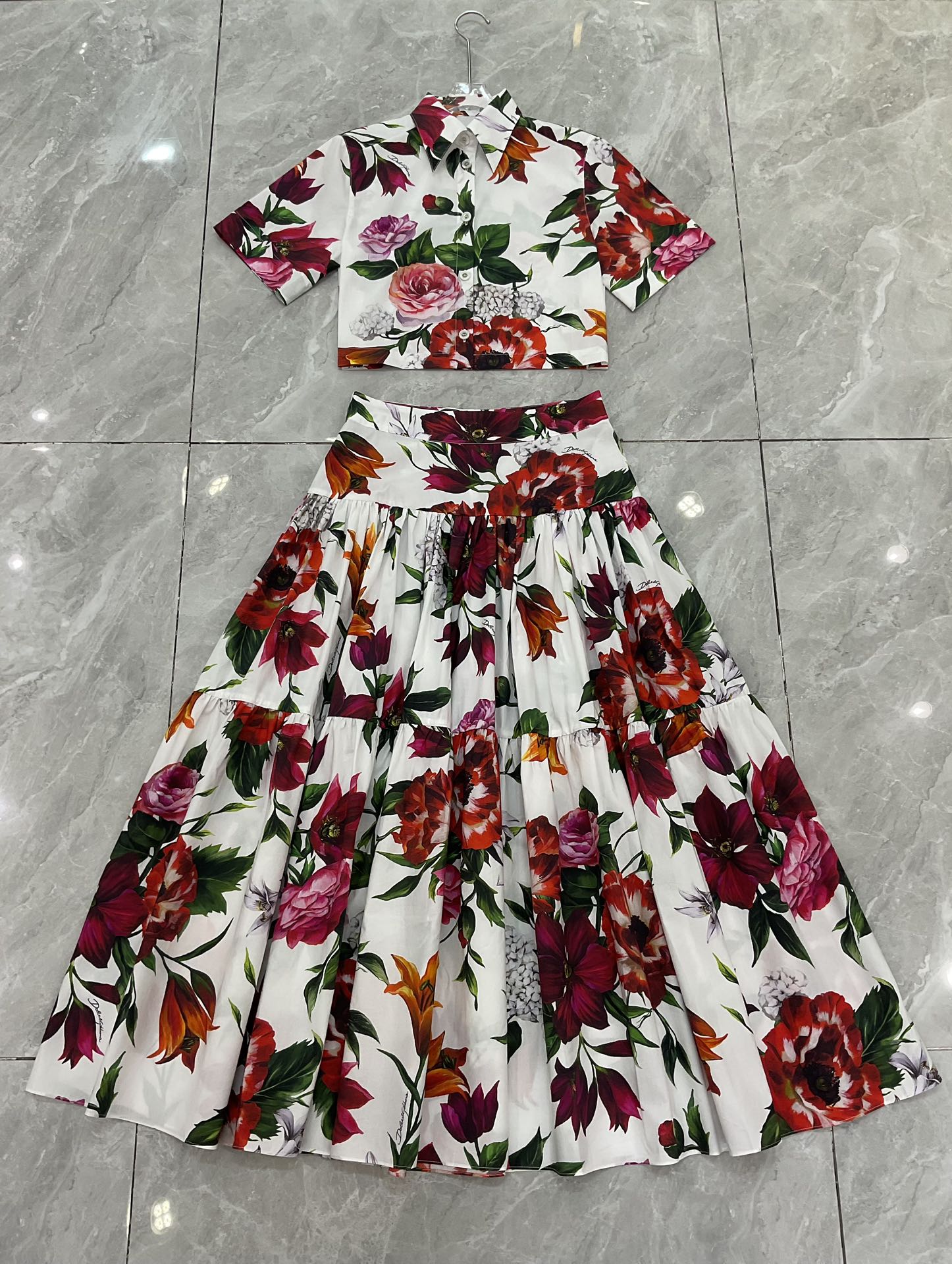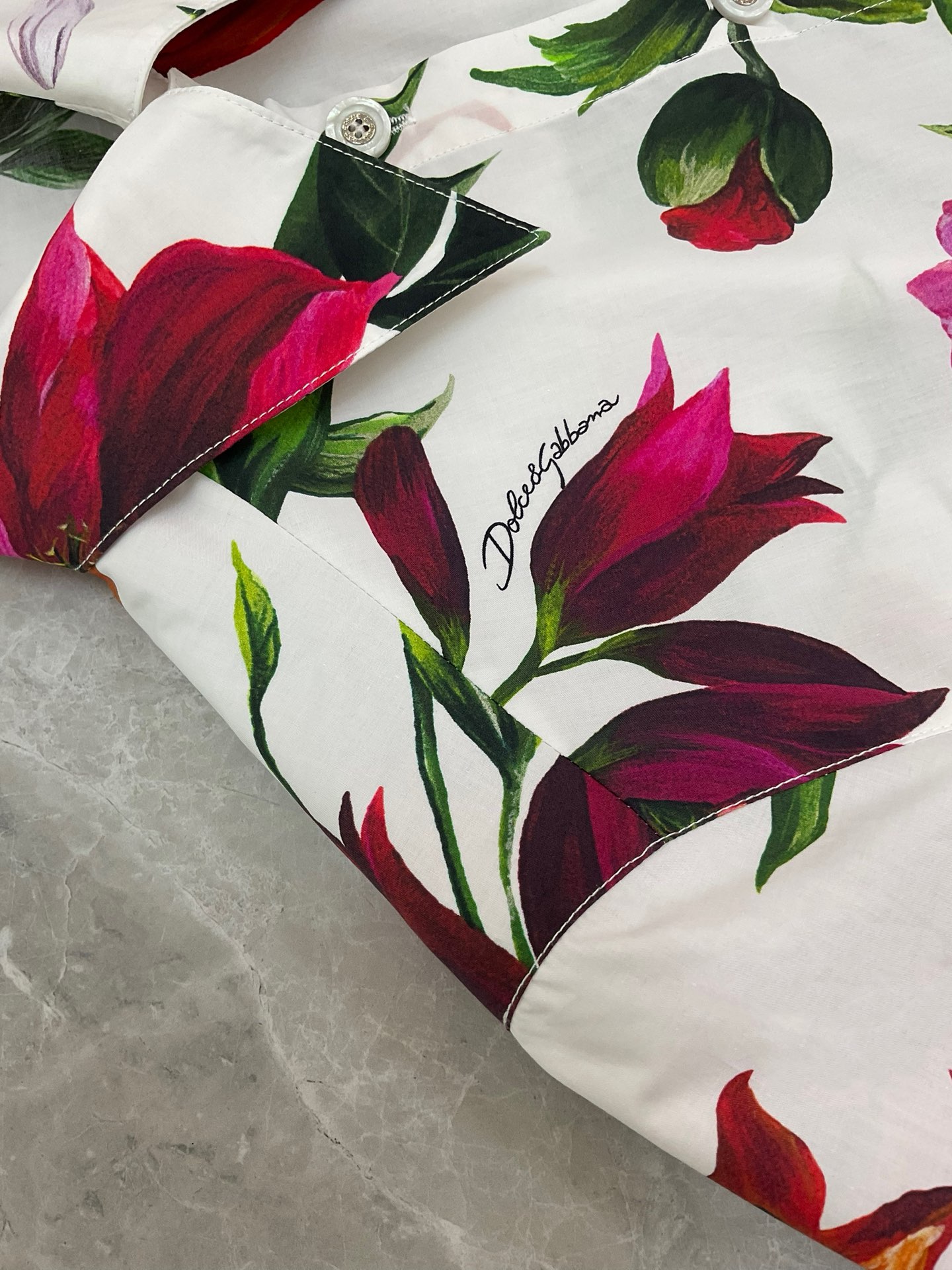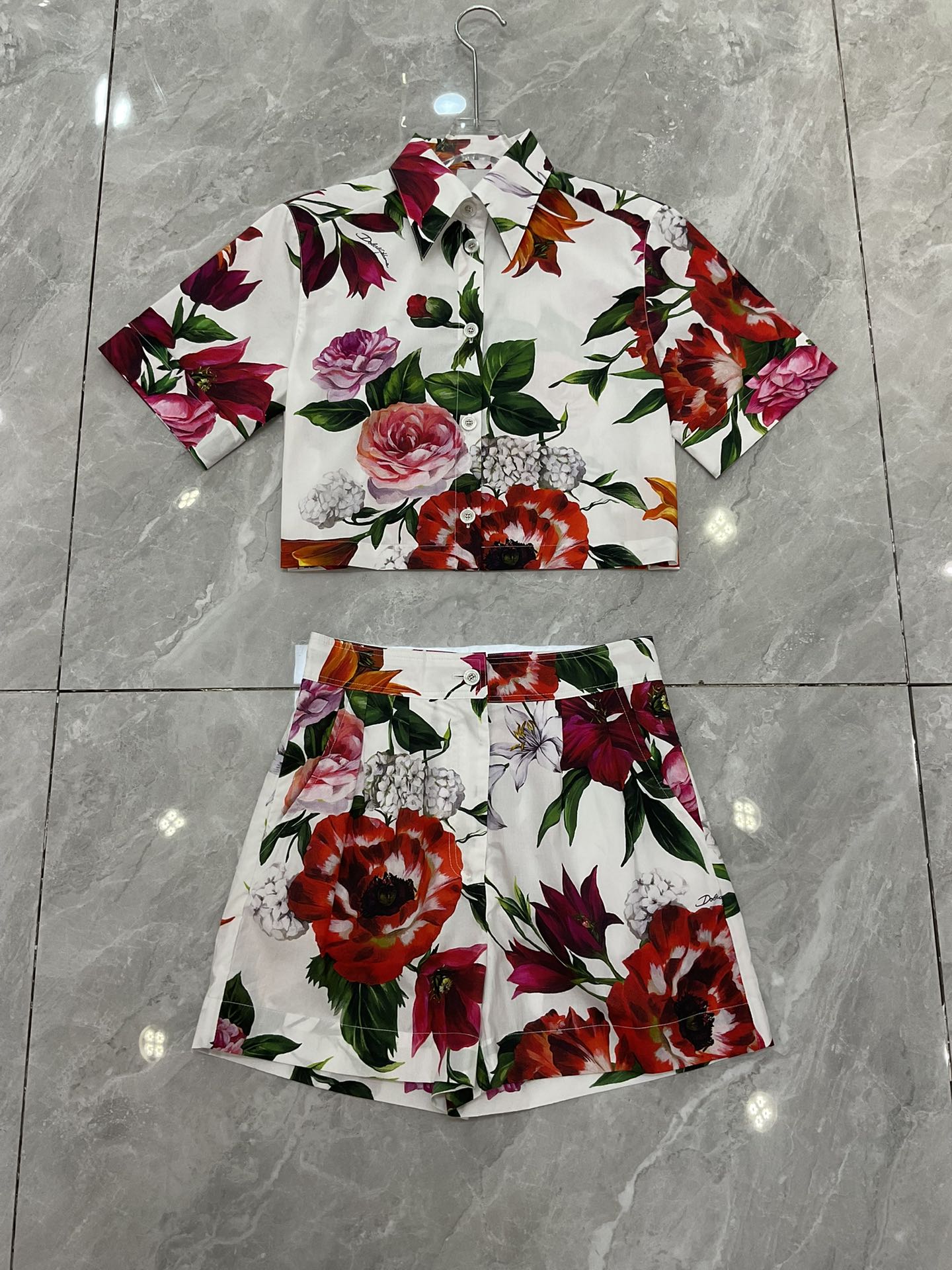 Details: Fashionable short-sleeved cotton printed blouse with white background and large red flowers, sizes S to XXL. Premium custom-made with fine workmanship, ensuring original quality.