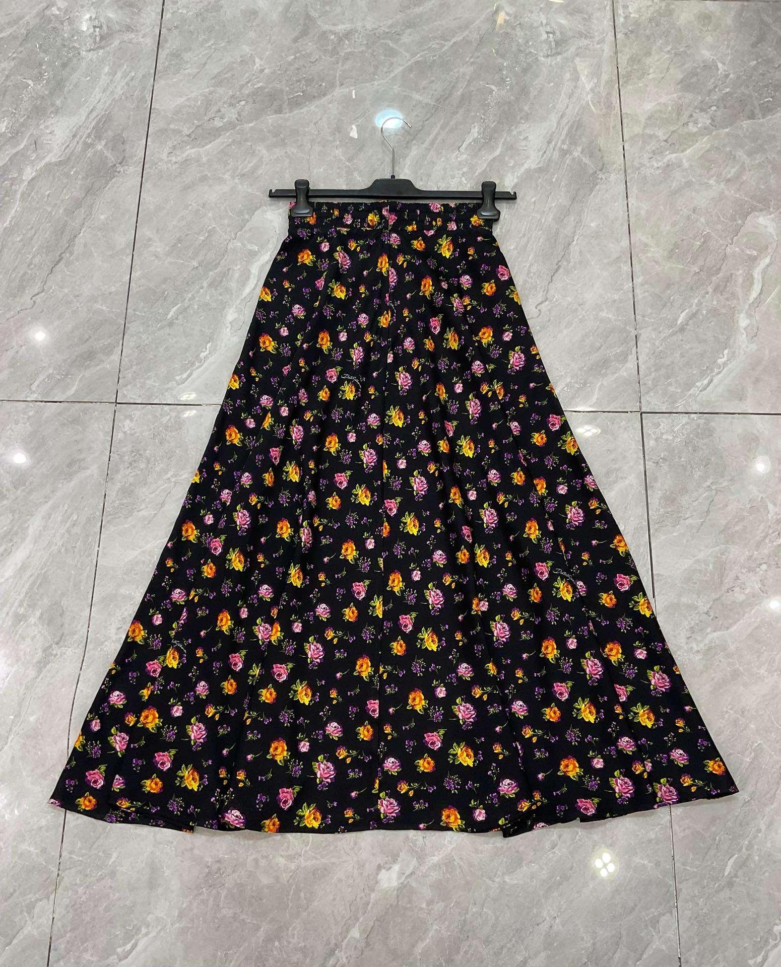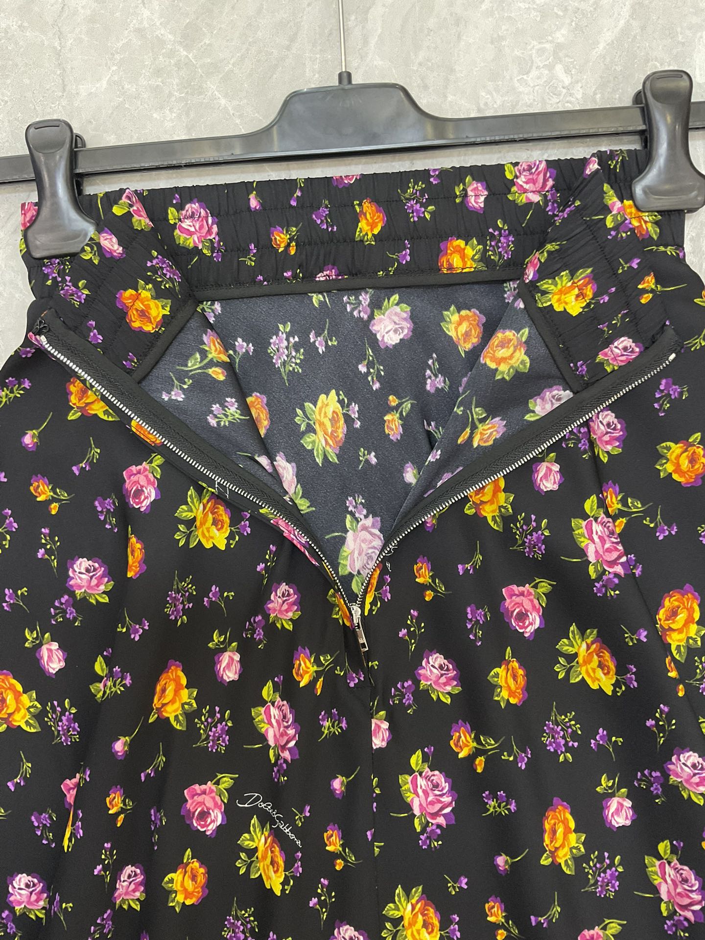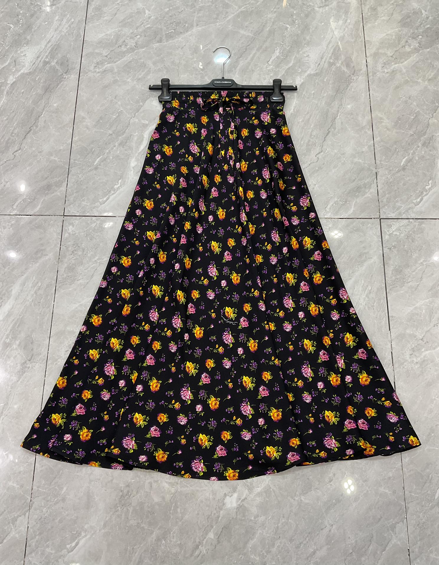 Details: New black base with rose-colored floral pattern silk skirt with sunray hem, sizes S-XXL. High-end customization, exquisite craftsmanship