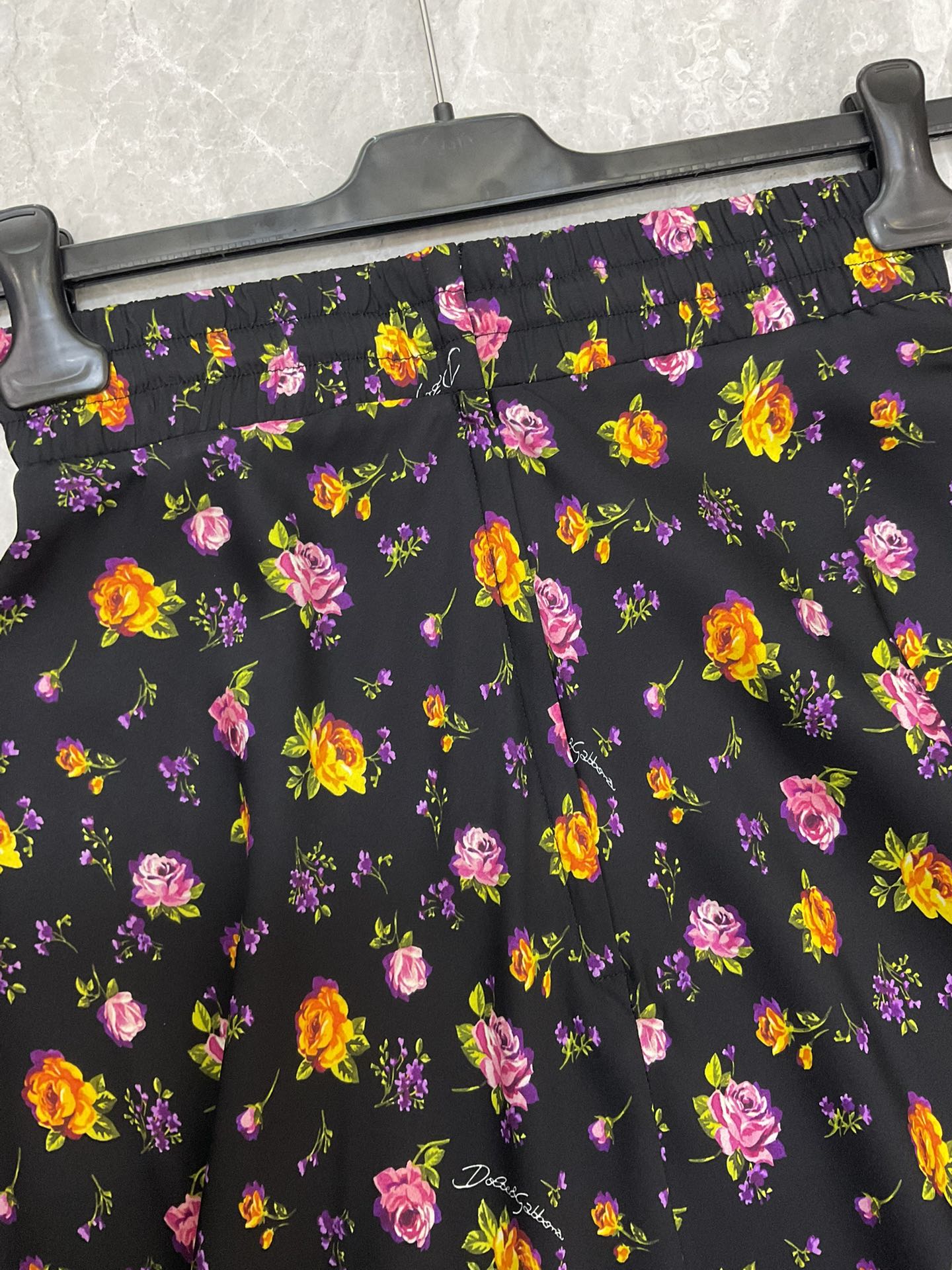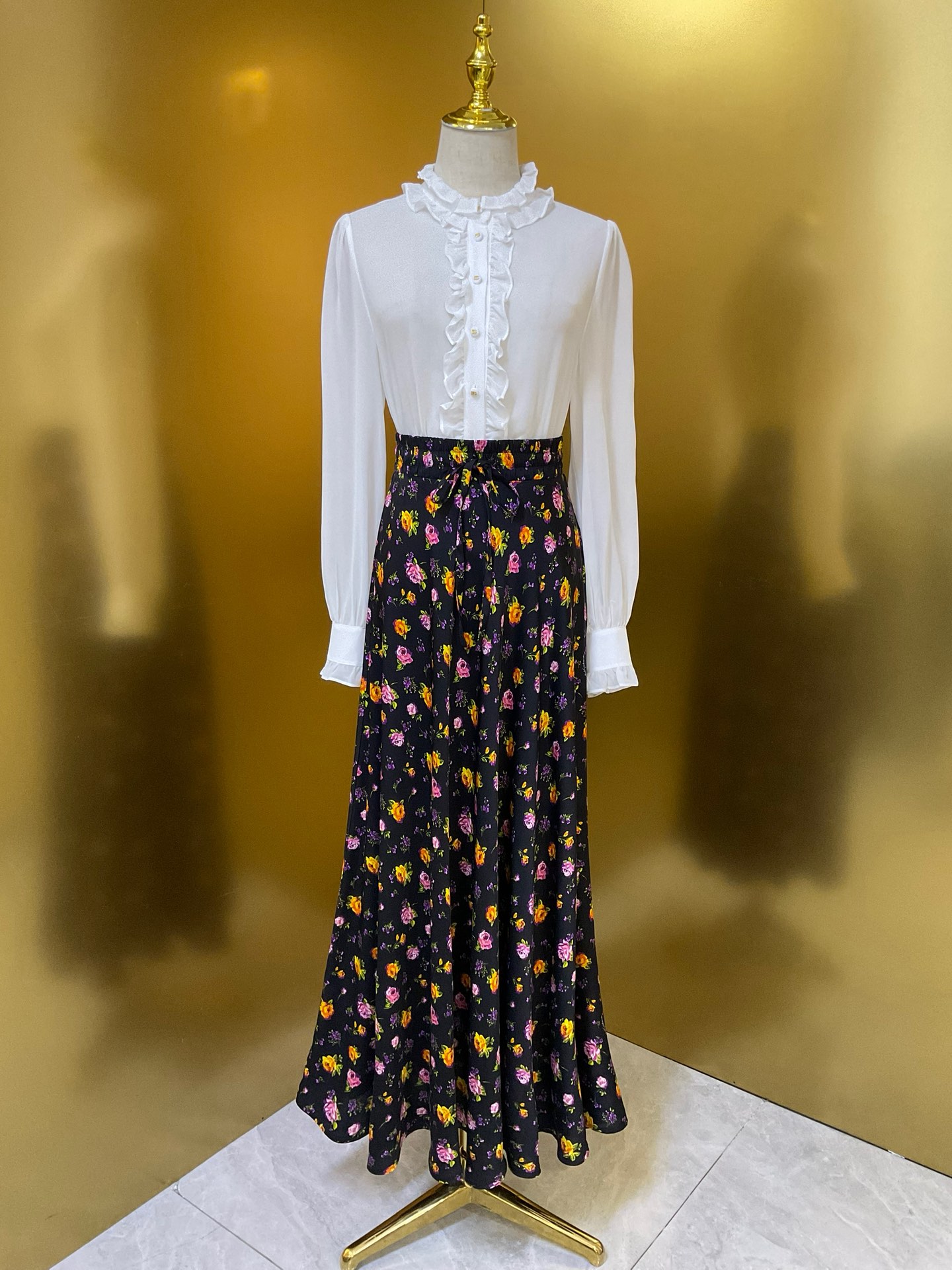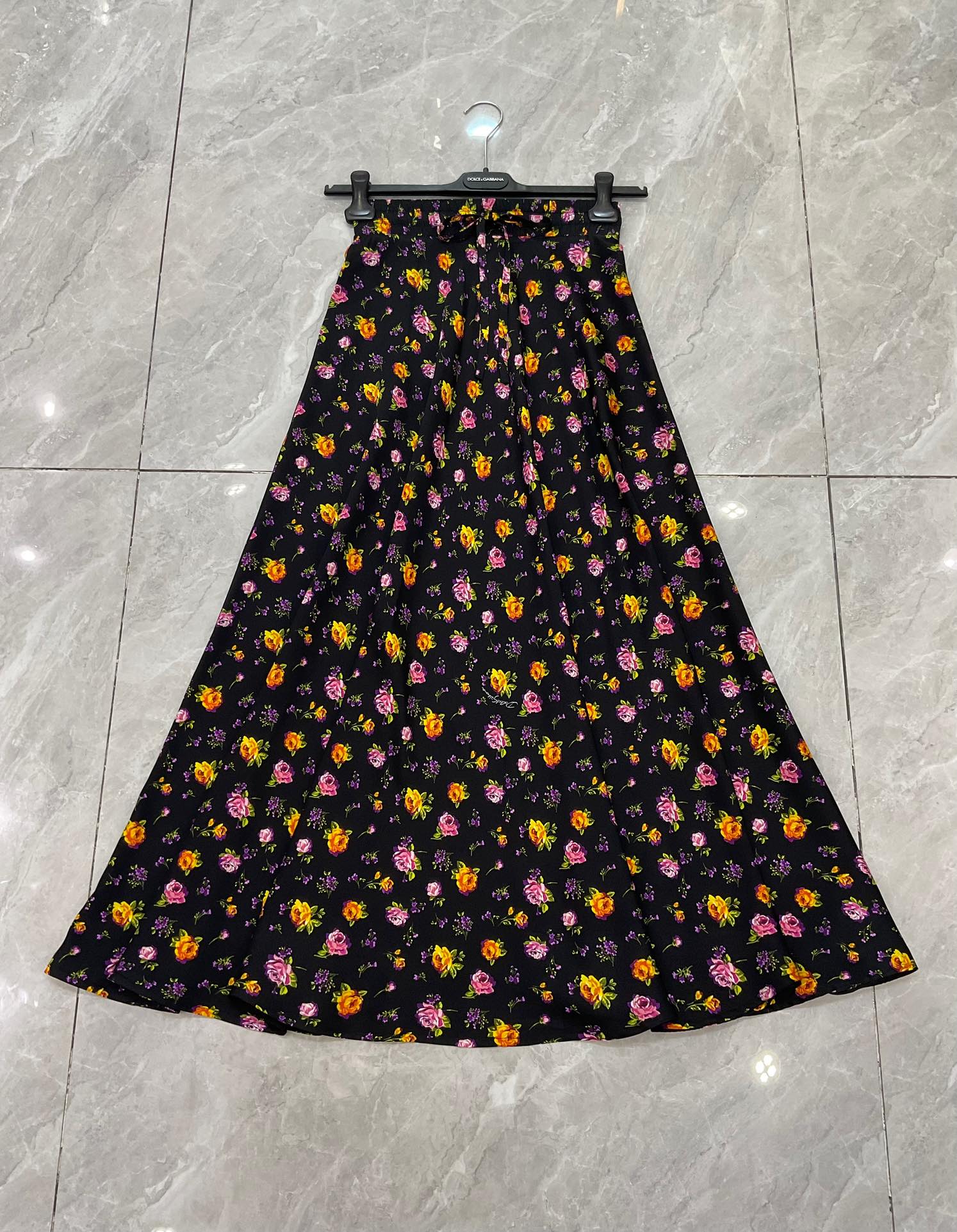 Details: New black base with rose-colored floral pattern silk skirt with sunray hem, sizes S-XXL. High-end customization, exquisite craftsmanship